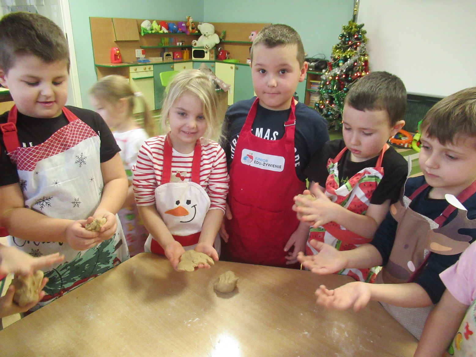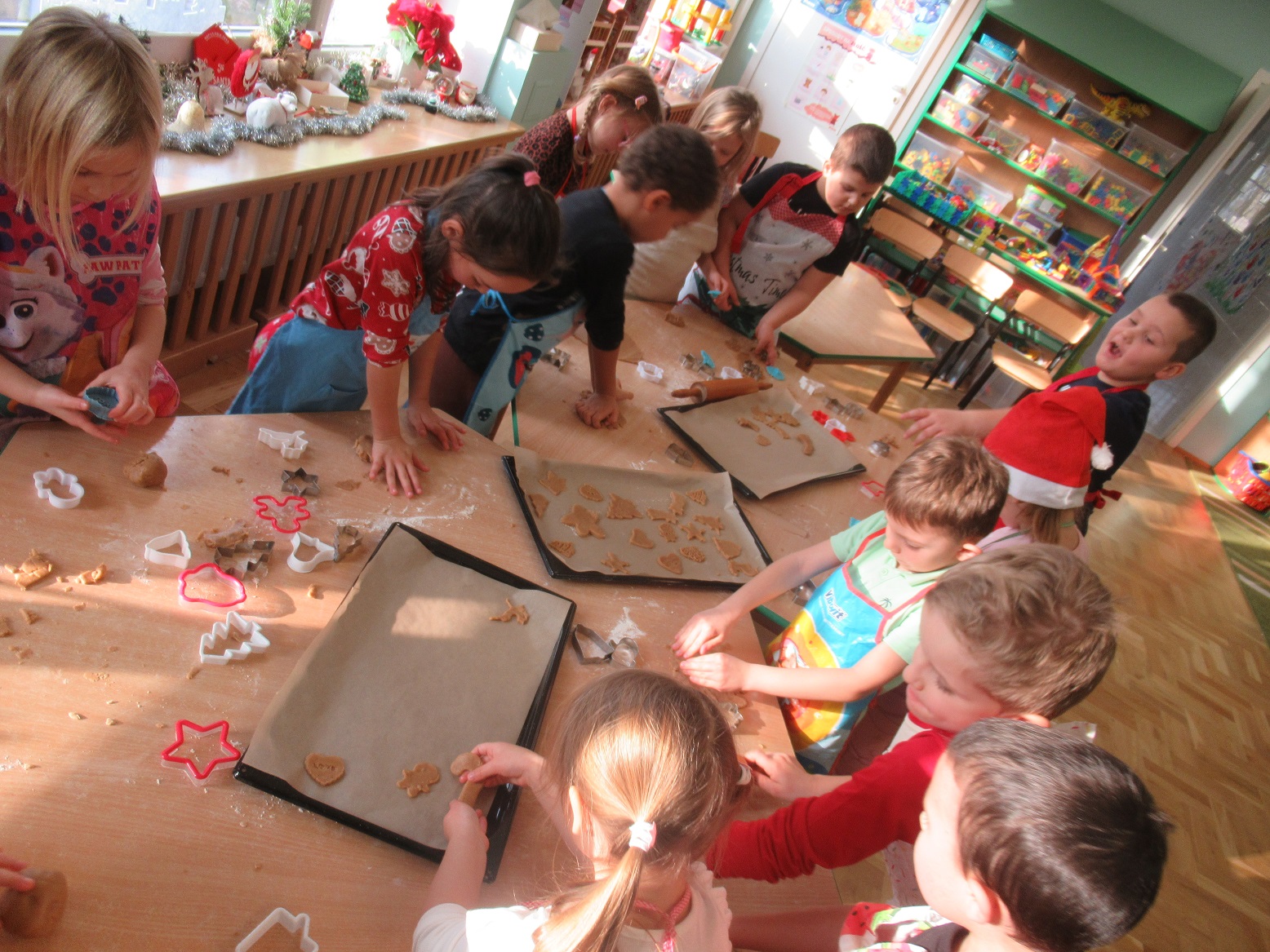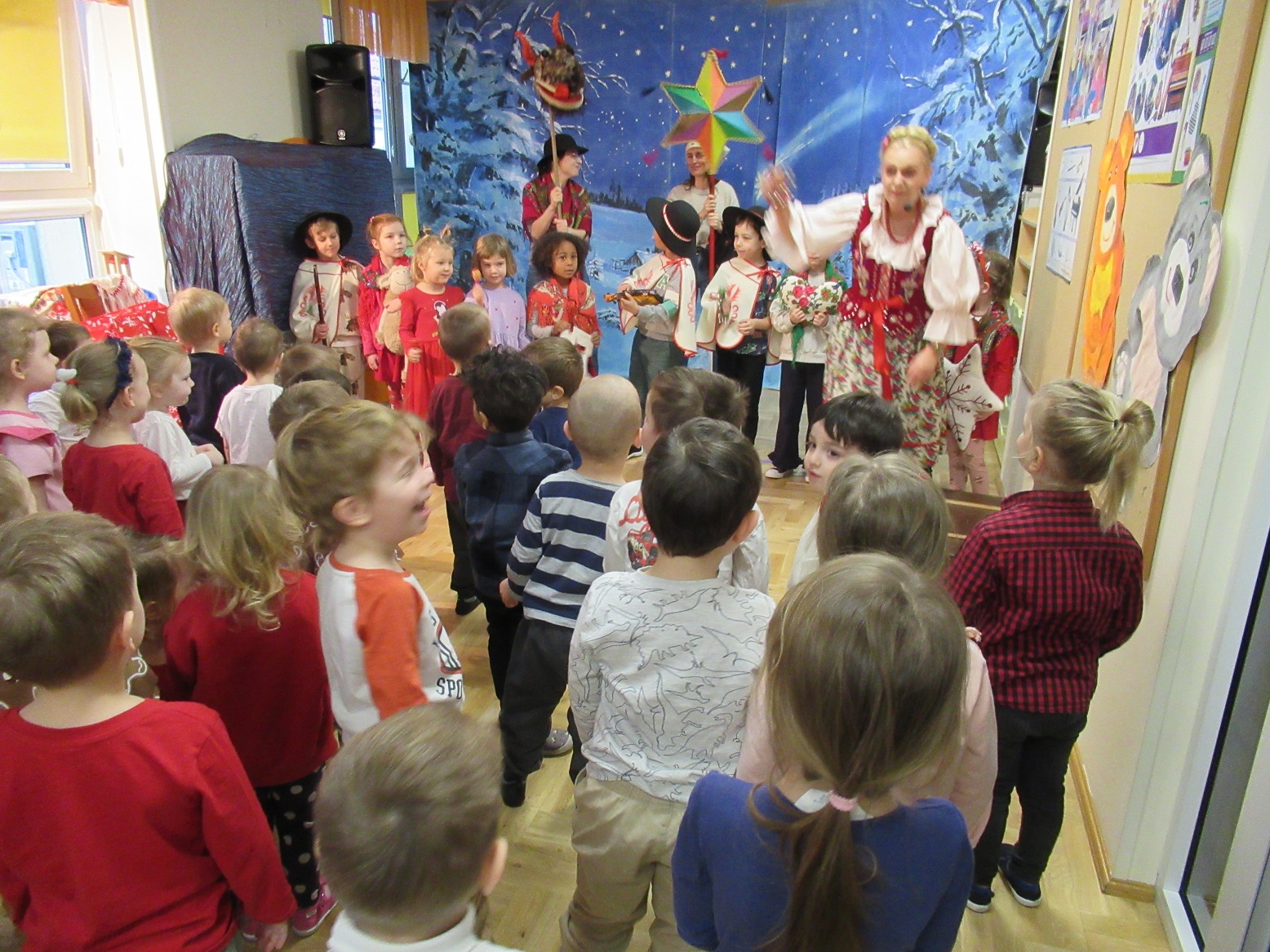 Odbyły się warsztaty świąteczne z rodzicami. Dzieci przygotowały dla nich krótki występ – pięknie grały na instrumentach i śpiewały kolędę. Następnie wspólnie bawiliśmy się przy muzyce. Dzieci wraz z rodzicami wykonały stroiki świąteczne oraz papierowe bombki. Była również duża świąteczna kolorowanka oraz niespodzianka dla rodziców – pierniczki samodzielnie przygotowane przez dzieci. Panowała bardzo rodzinna i radosna atmosfera.
