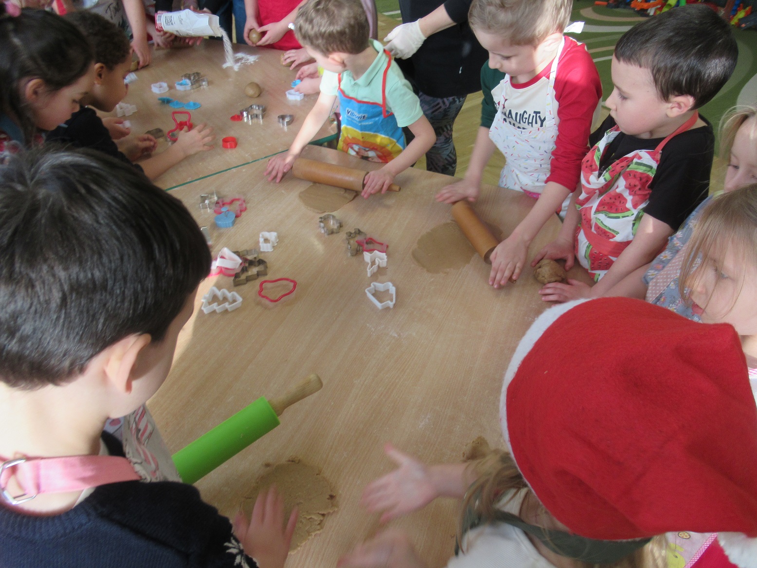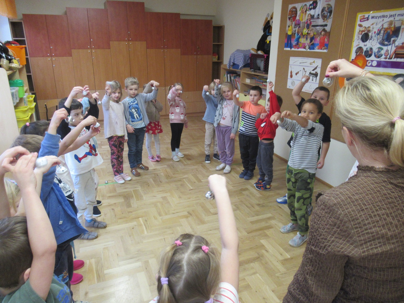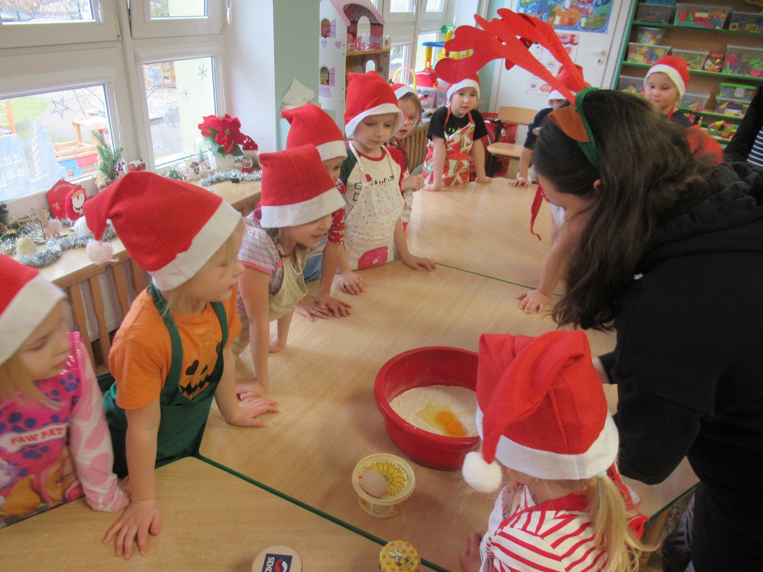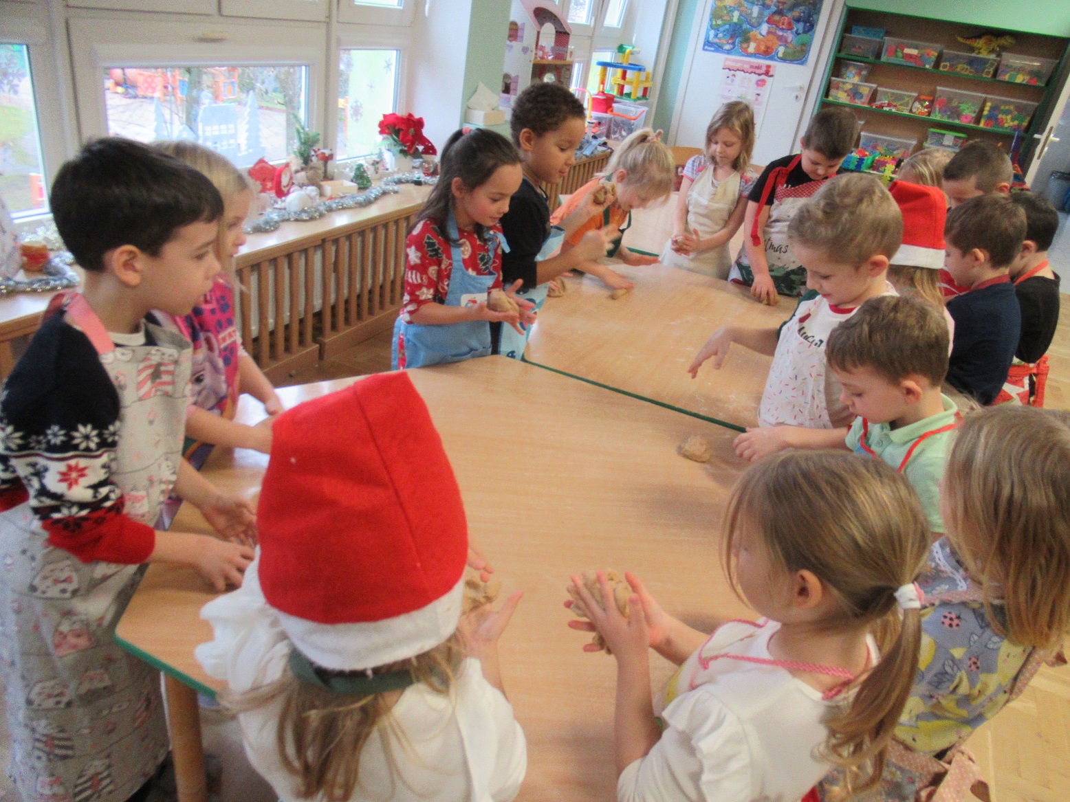 Odbyły się warsztaty świąteczne z rodzicami. Dzieci przygotowały dla nich krótki występ – pięknie grały na instrumentach i śpiewały kolędę. Następnie wspólnie bawiliśmy się przy muzyce. Dzieci wraz z rodzicami wykonały stroiki świąteczne oraz papierowe bombki. Była również duża świąteczna kolorowanka oraz niespodzianka dla rodziców – pierniczki samodzielnie przygotowane przez dzieci. Panowała bardzo rodzinna i radosna atmosfera.