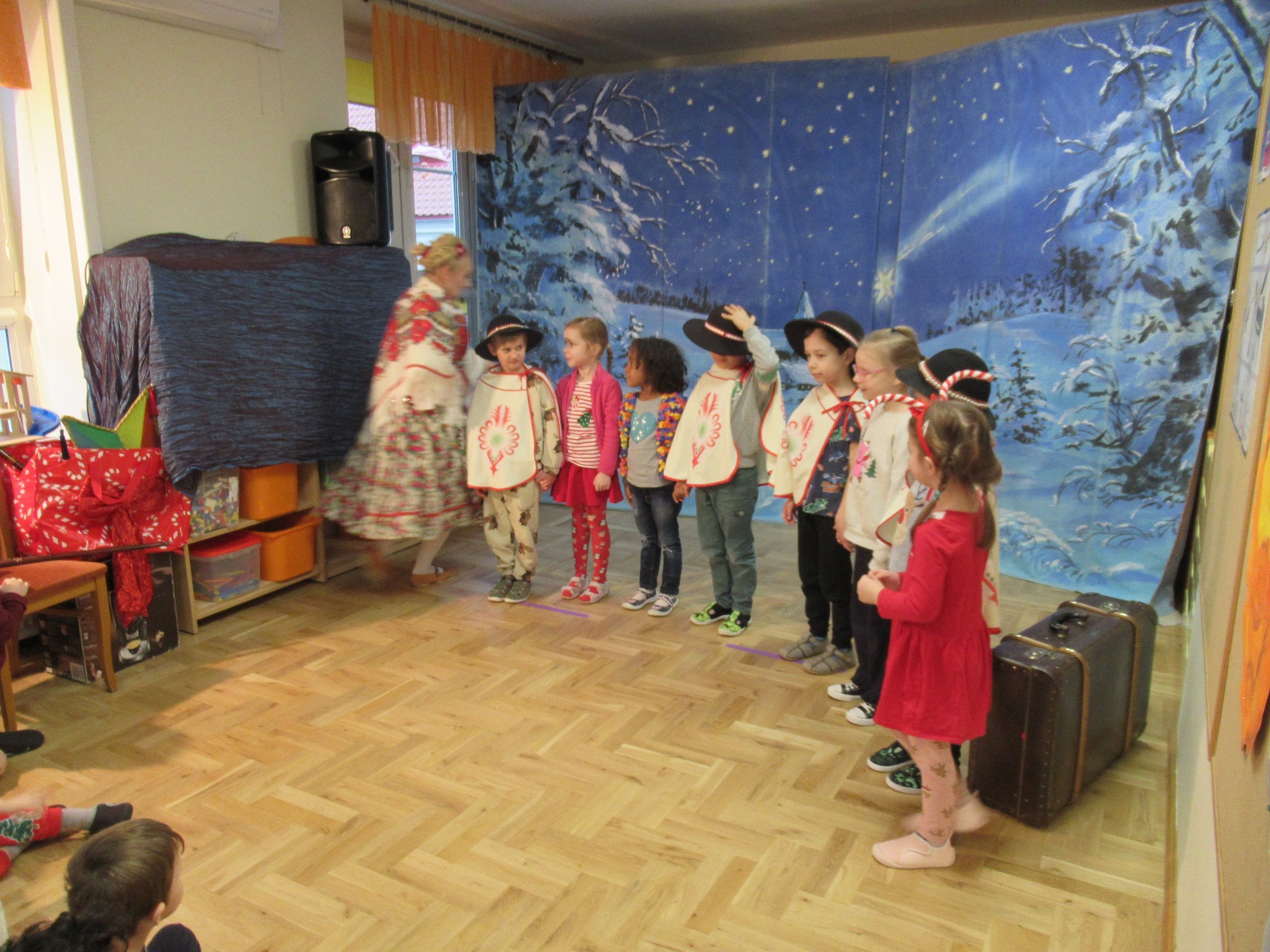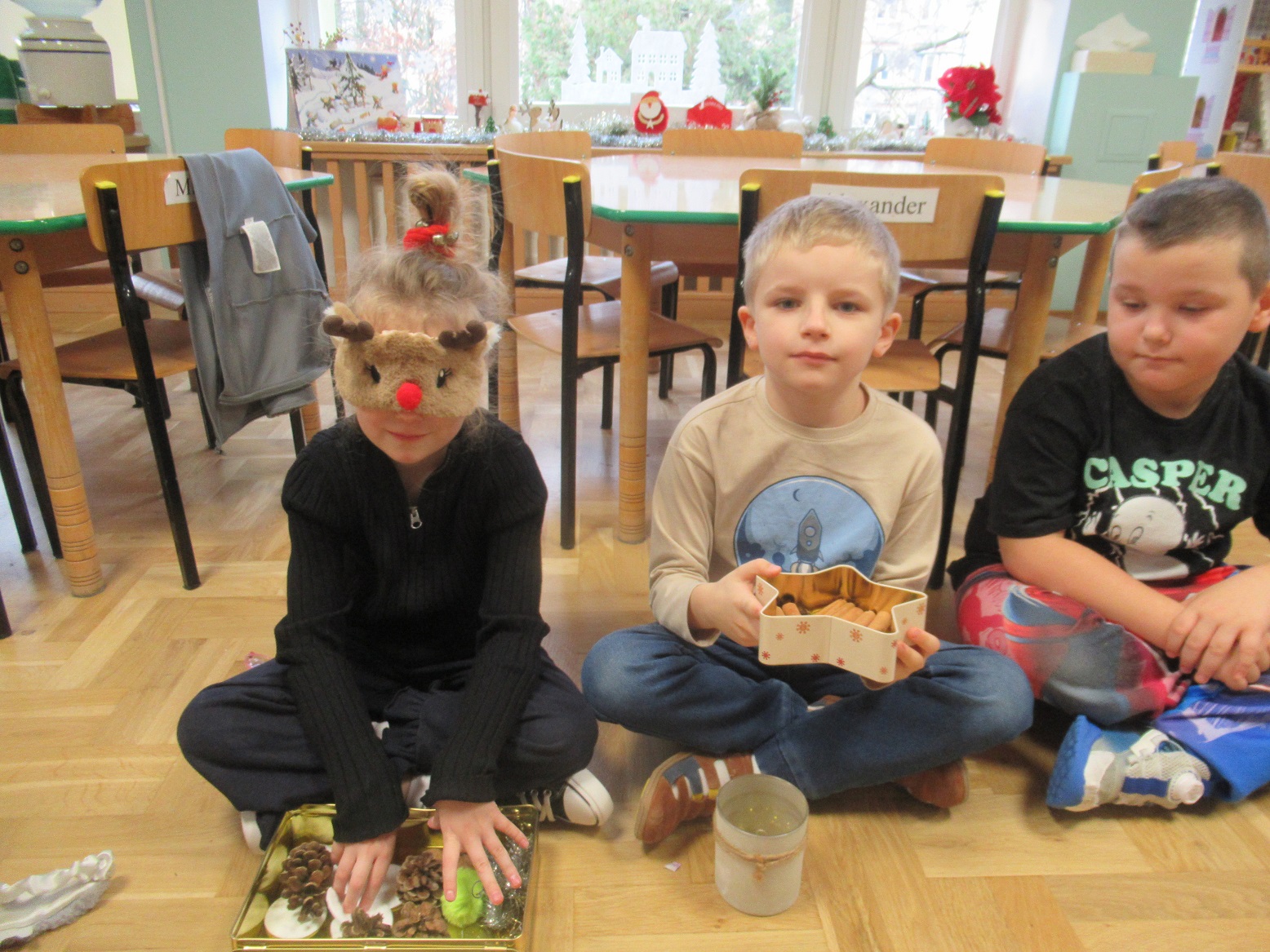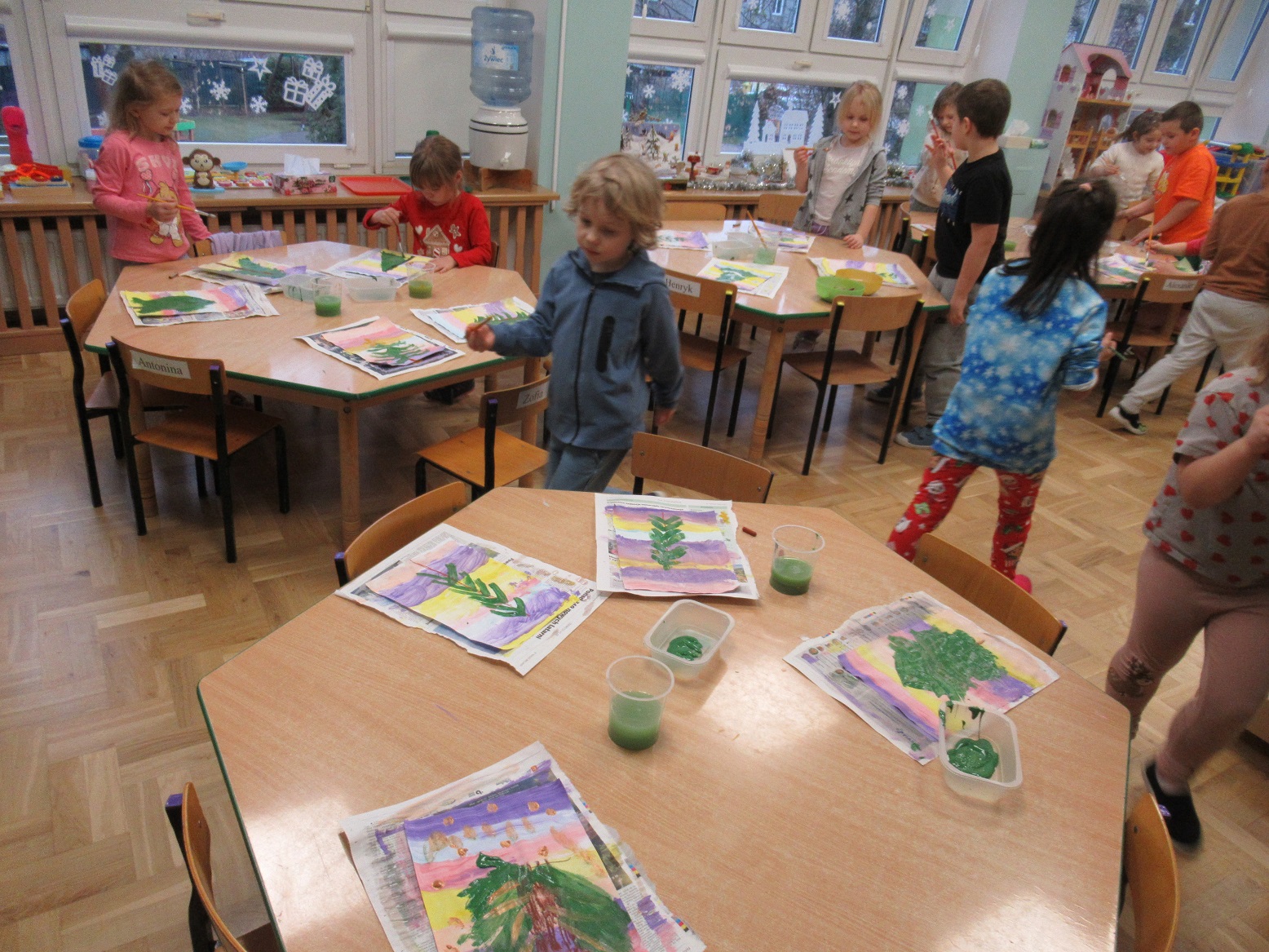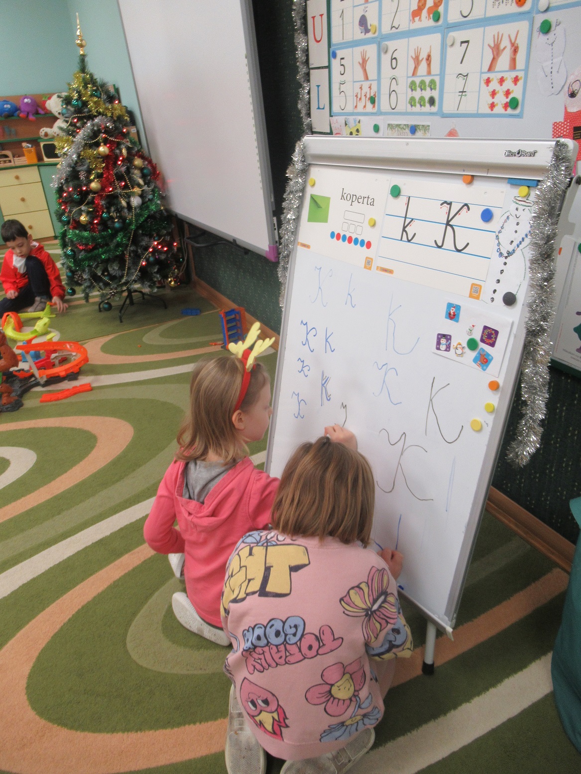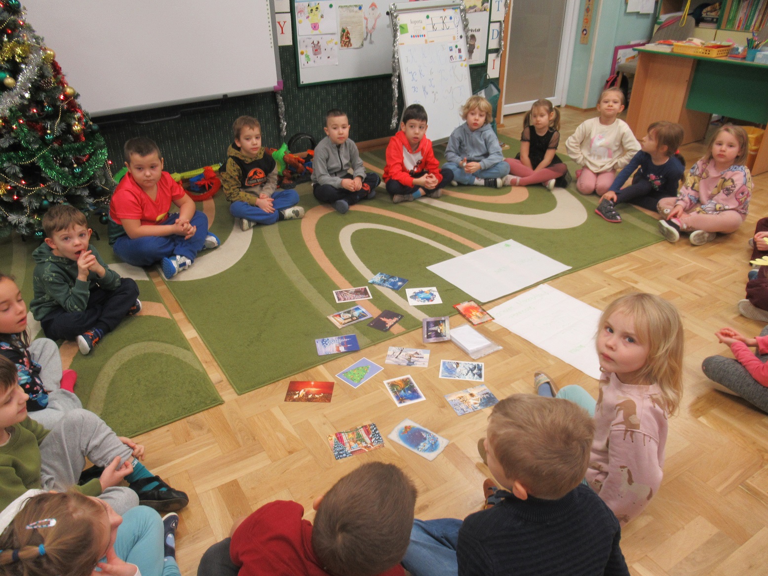Rozmawialiśmy o zimie i świętach. Wykonaliśmy kilka prac plastycznych, uczyliśmy się piosenek i wierszyków. Dzieci pisały listy do Świętego Mikołaja, a następnie wspólnie wybraliśmy się na pocztę, aby je wysłać.