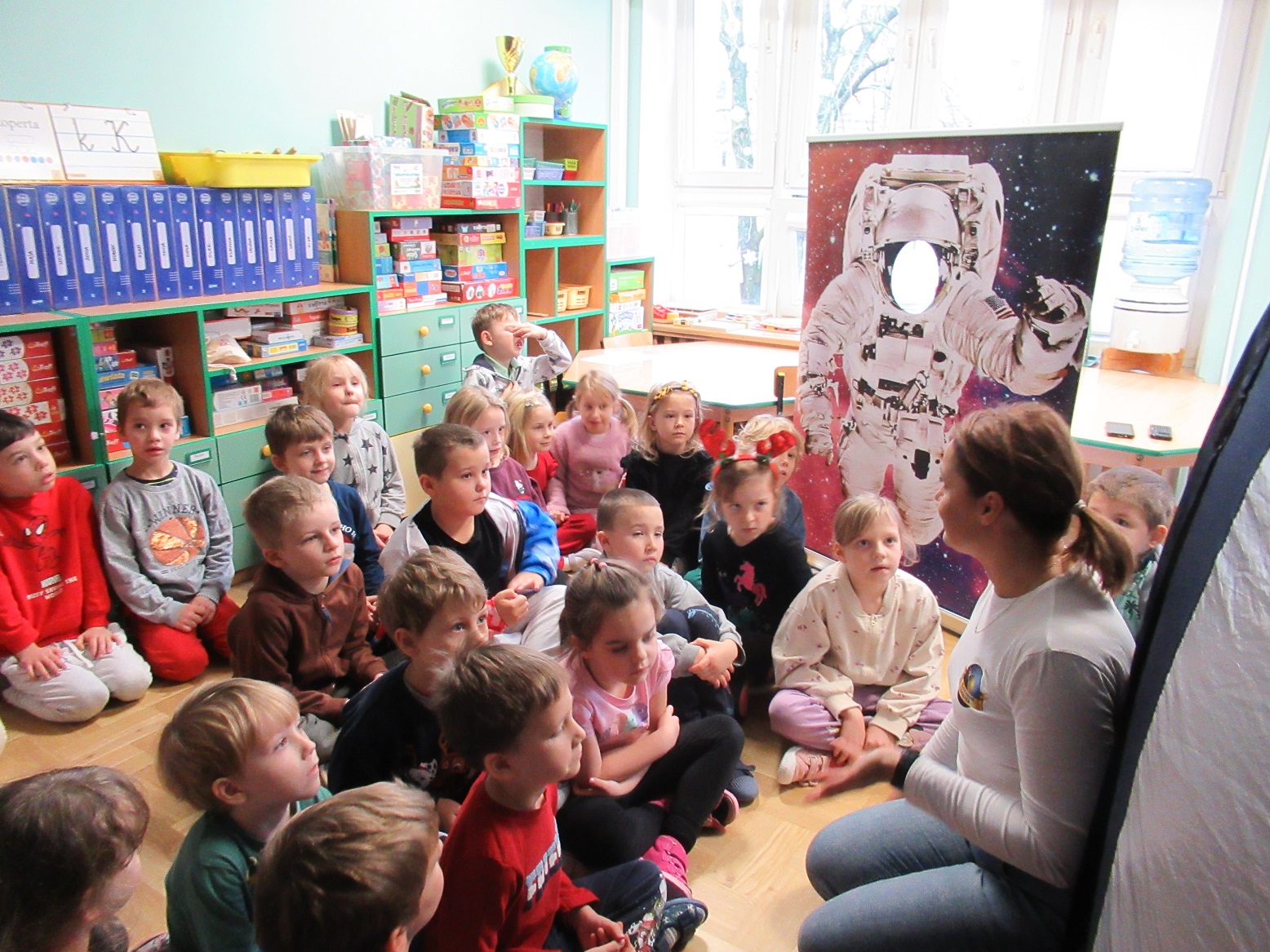 Jak to w grudniu, często myśleliśmy o Świętym Mikołaju i zastanawialiśmy się, czy znajdzie czas, aby odwiedzić nasze przedszkole. Mikołaj o nas pamiętał! 6 grudnia zobaczyliśmy go przez okno. Zostawił list z bardzo miłymi słowami i zapowiedział, że w prezencie odbędą się warsztaty – Mikołajkowe Planetarium. Było wspaniale!