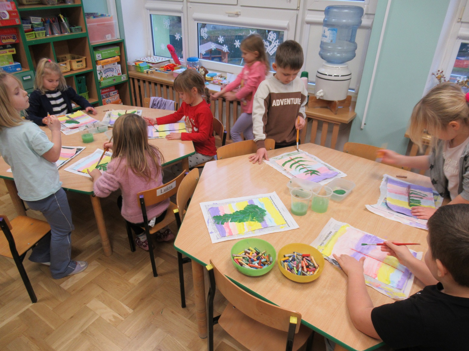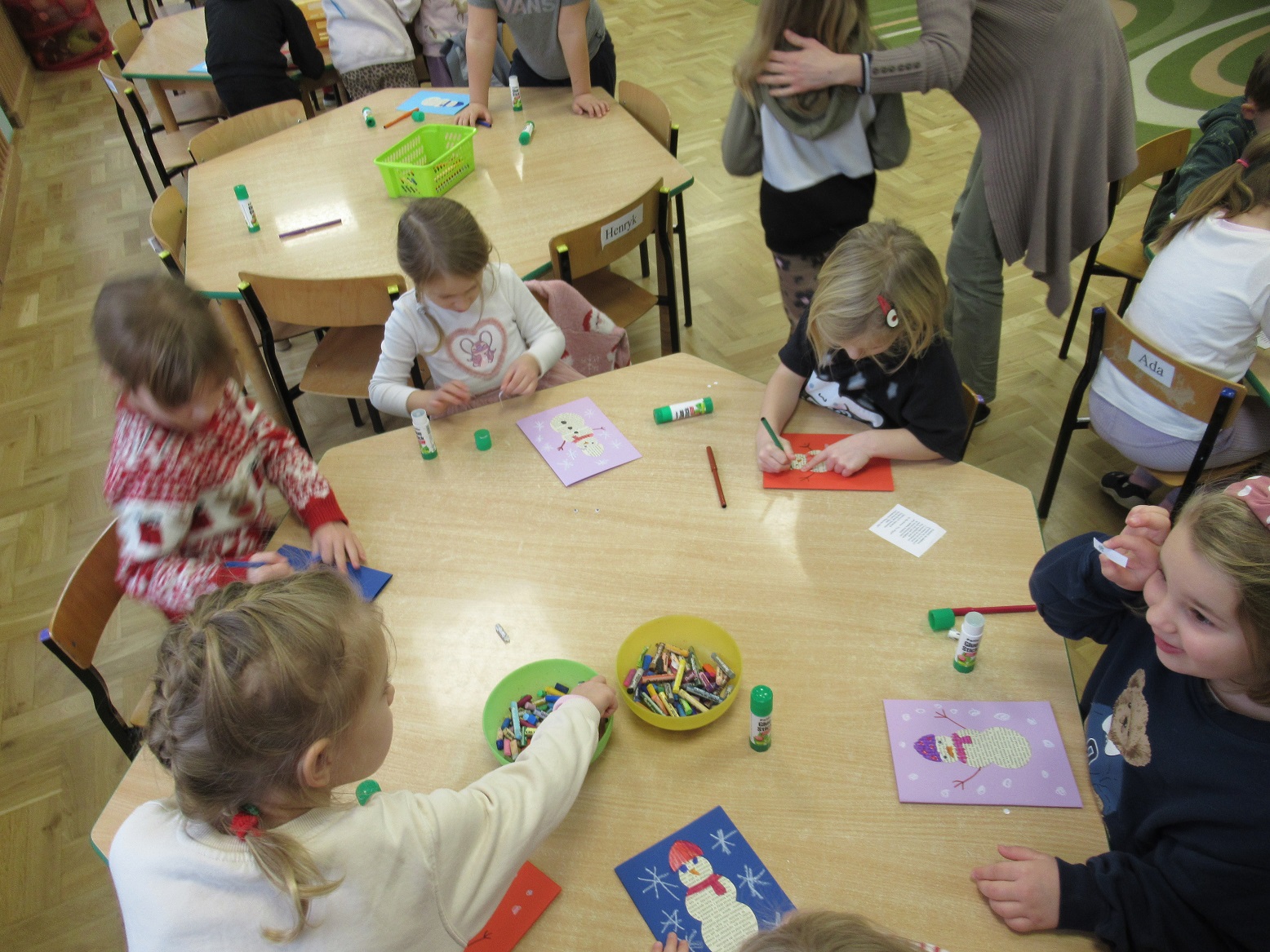 Dzieci wykonały piękne kartki świąteczne dla Seniorów z Ośrodka Wsparcia dla Seniorów na Bielanach.