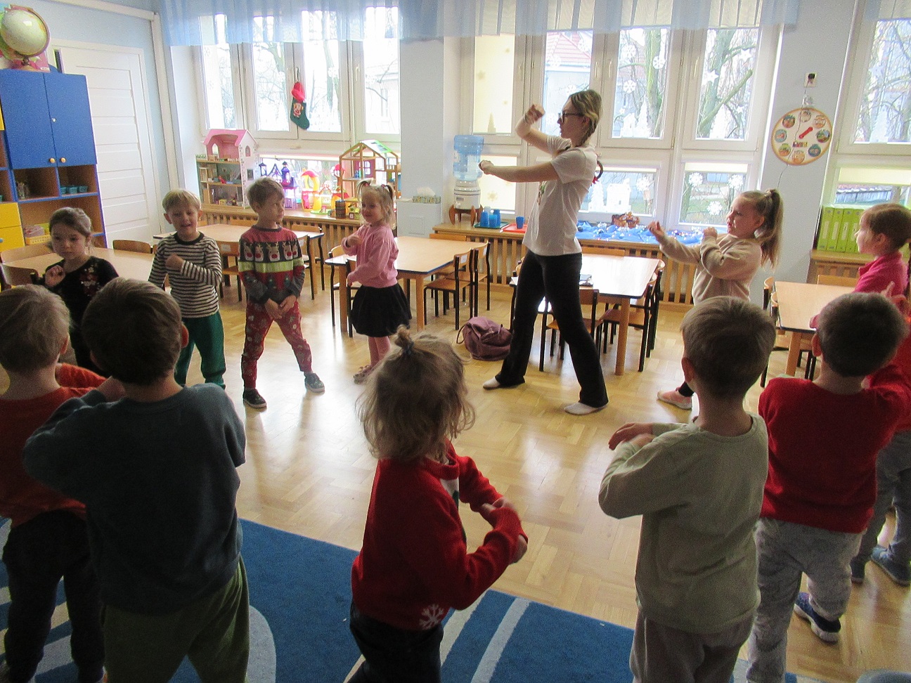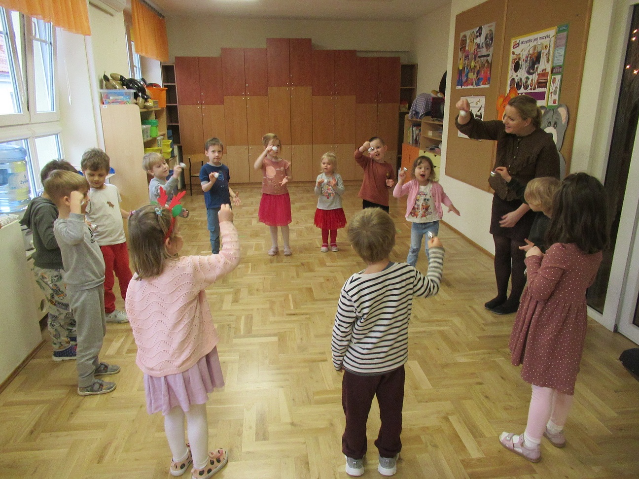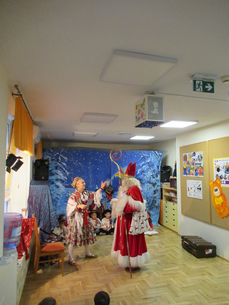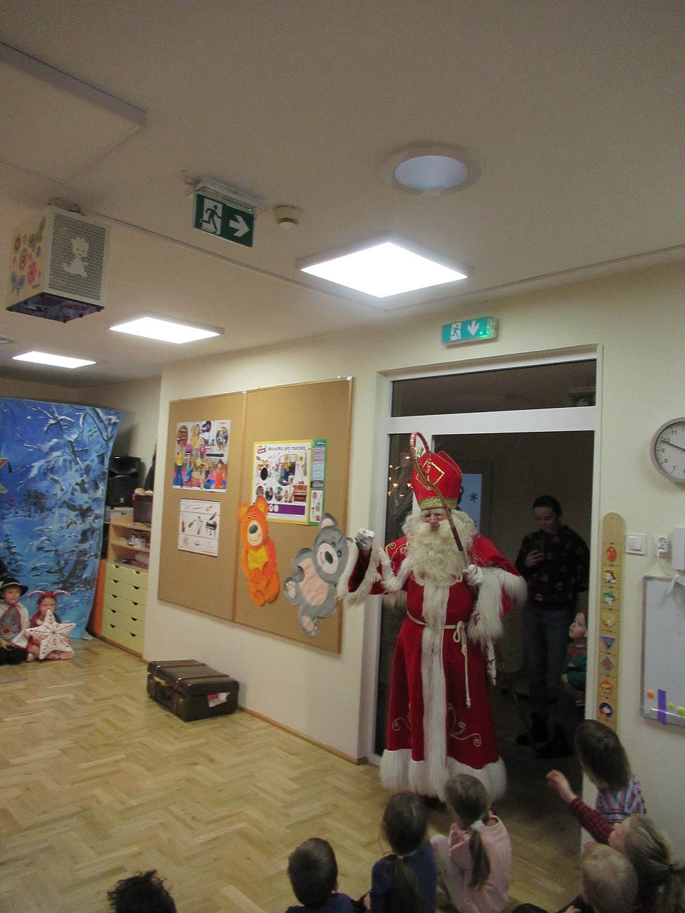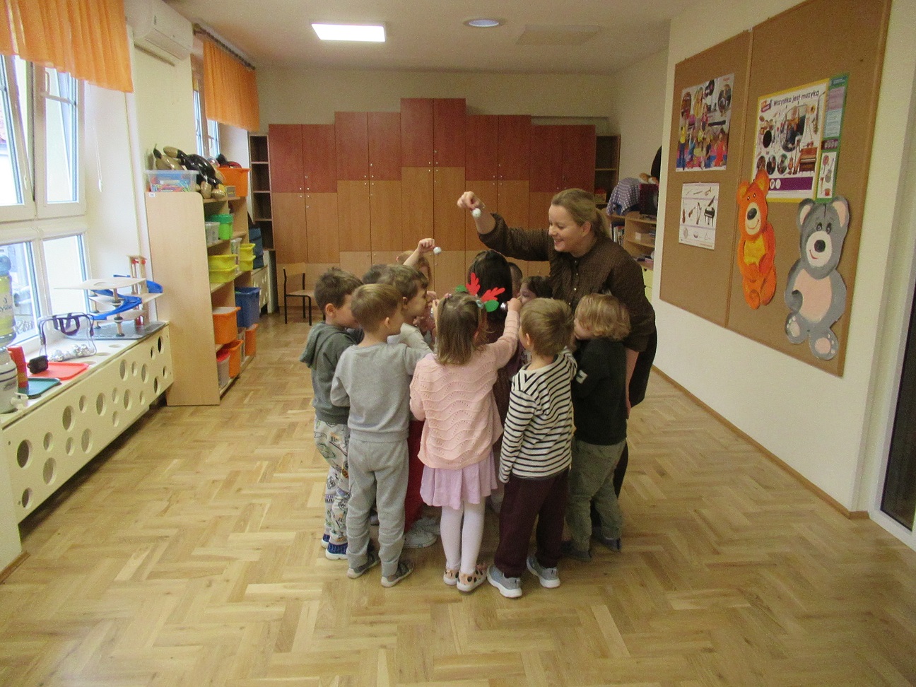 22.12. Święty Mikołaj spełnił swoją obietnicę i odwiedził nas w przedszkolu. Tym razem spędził z nami więcej czasu. Wspólnie z nim śpiewaliśmy i tańczyliśmy. Na koniec otrzymaliśmy drobne prezenty. Było bardzo wesoło i świątecznie.