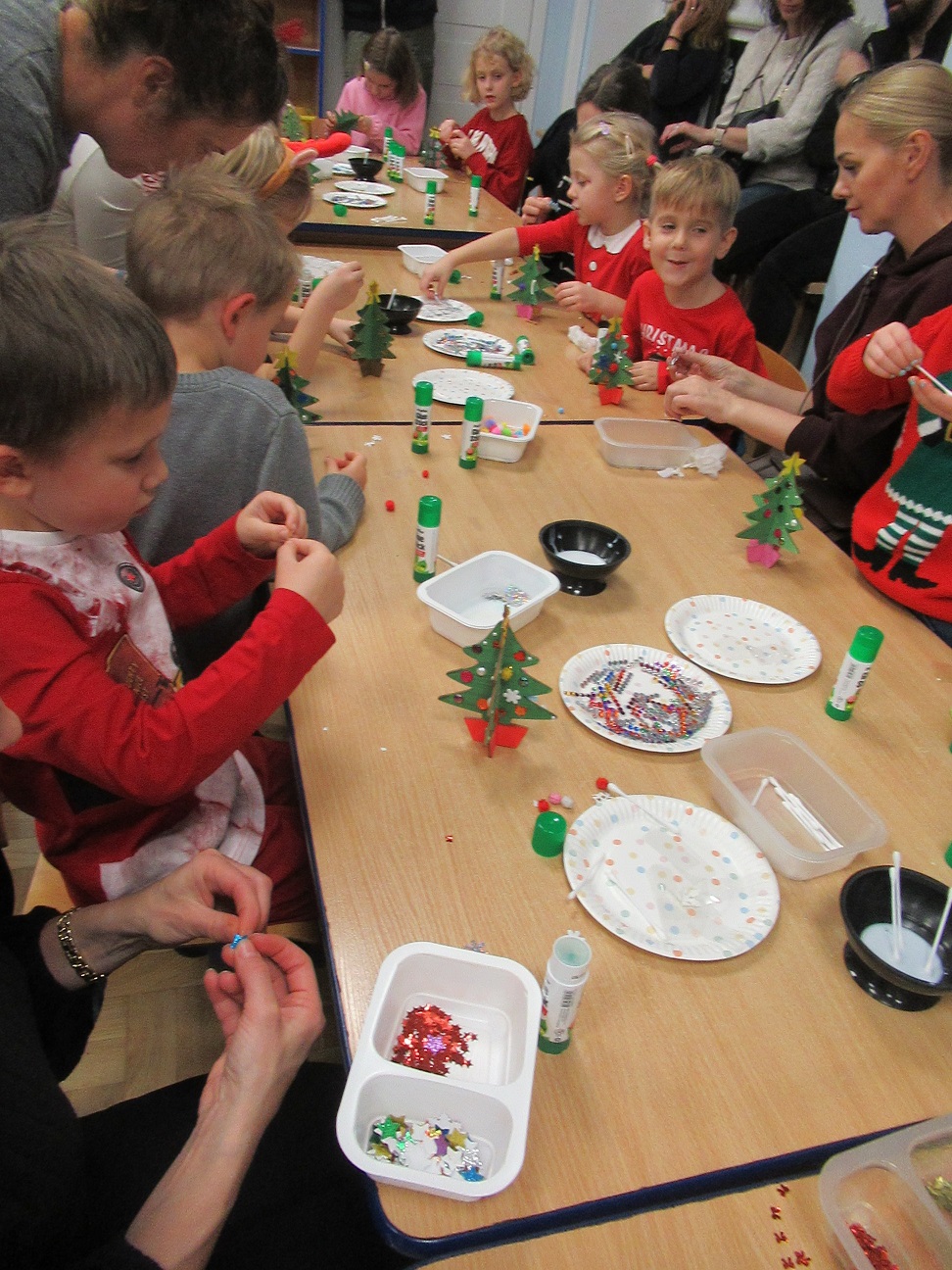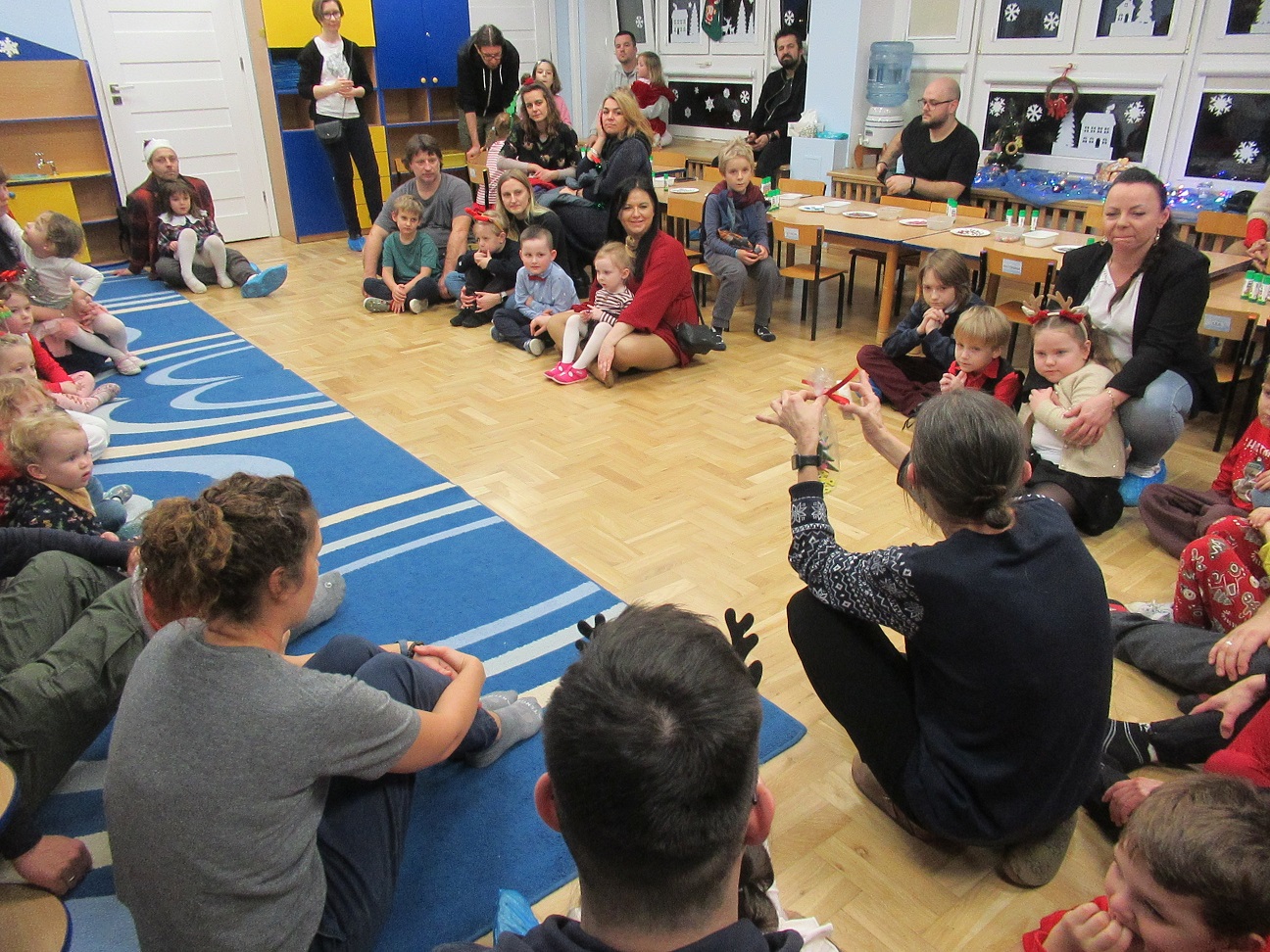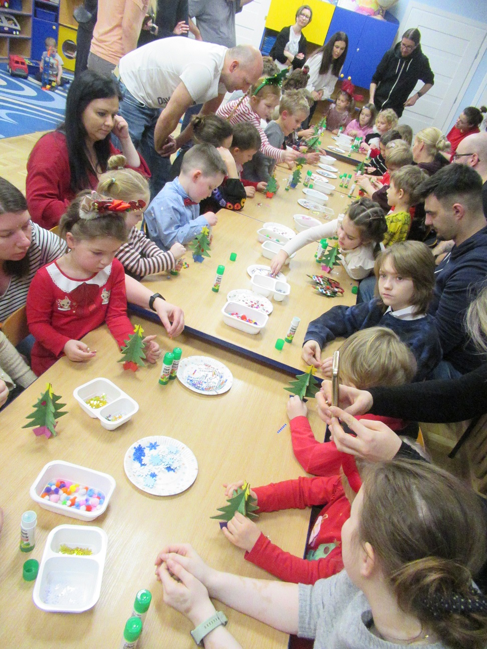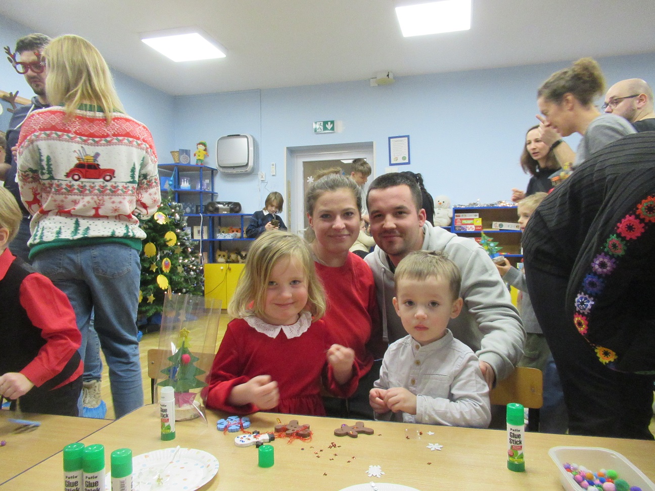 09.12. odbyły się Warsztaty Świąteczne z Rodzicami. Powitaliśmy Rodziców piosenką i wierszykiem oraz wspólną zabawą muzyczno- ruchową. Następnie wspólnie wykonywaliśmy ozdoby choinkowe. Było bardzo radośnie i rodzinnie.