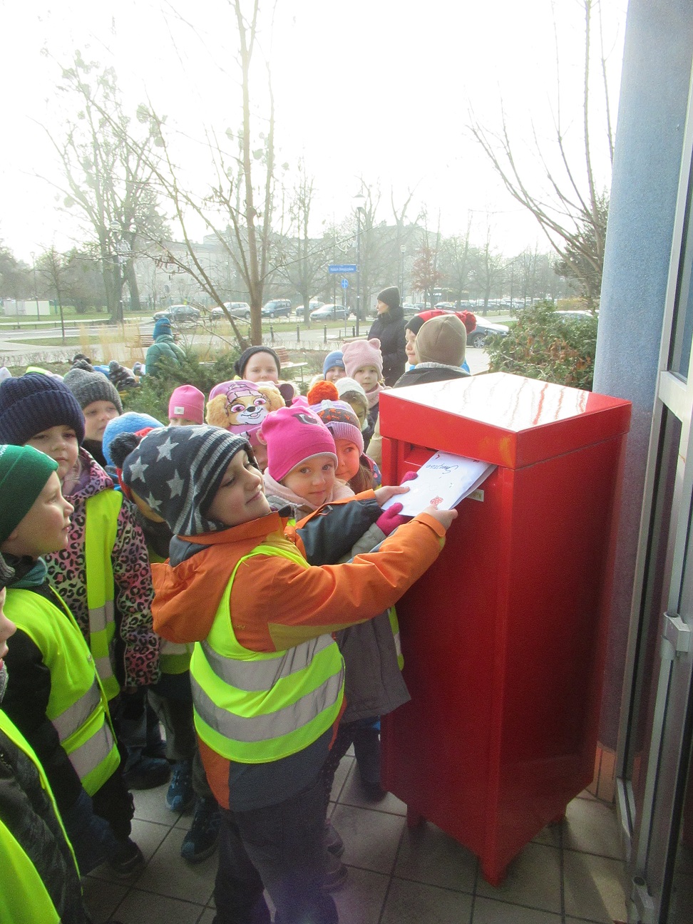 21.12. wspólnie z grupą zieloną wybraliśmy się na pocztę , aby wysłać nasze listy do Świętego Mikołaja. Po drodze oglądaliśmy wspaniałe dekoracje świąteczne w mieście.