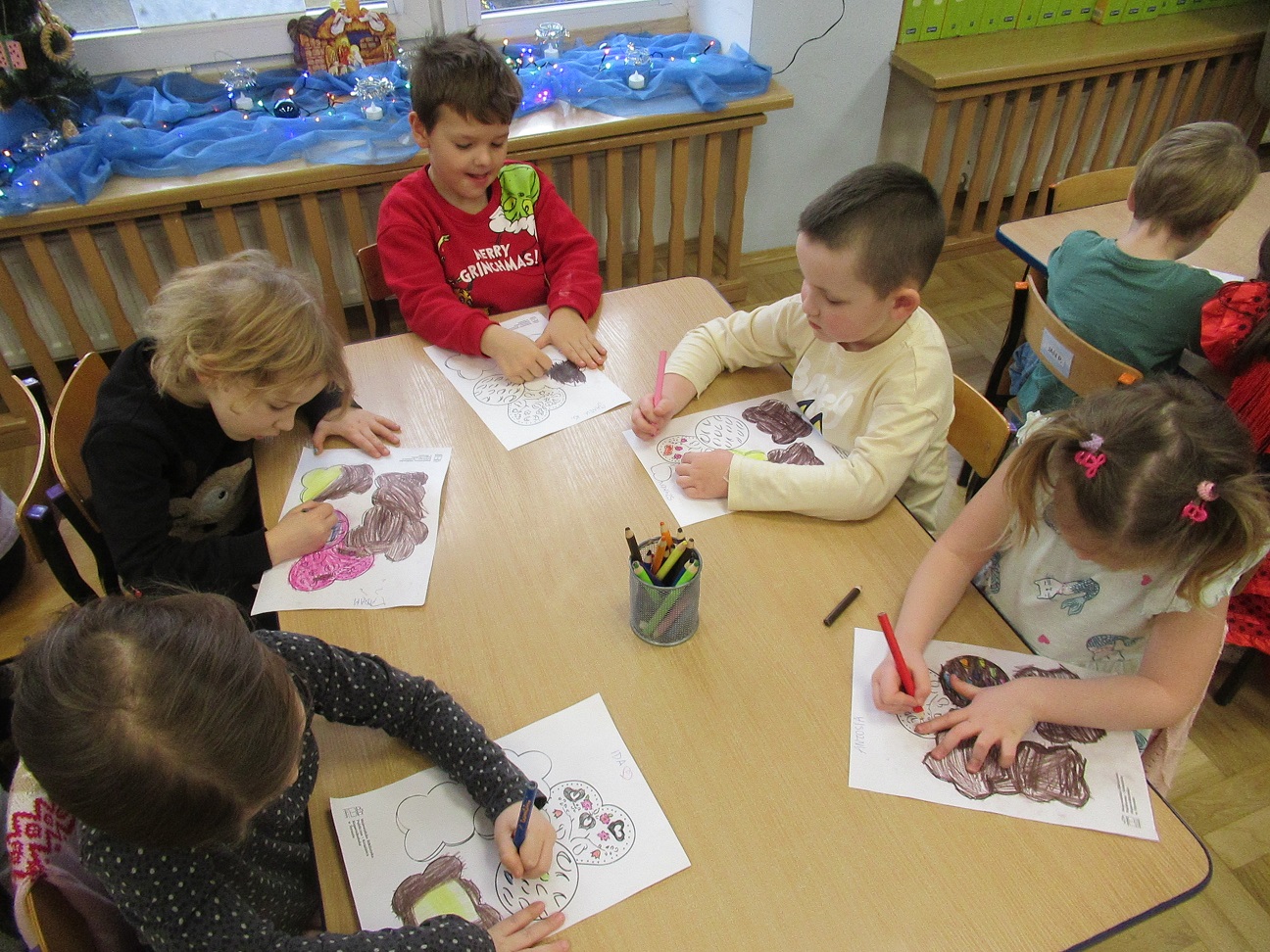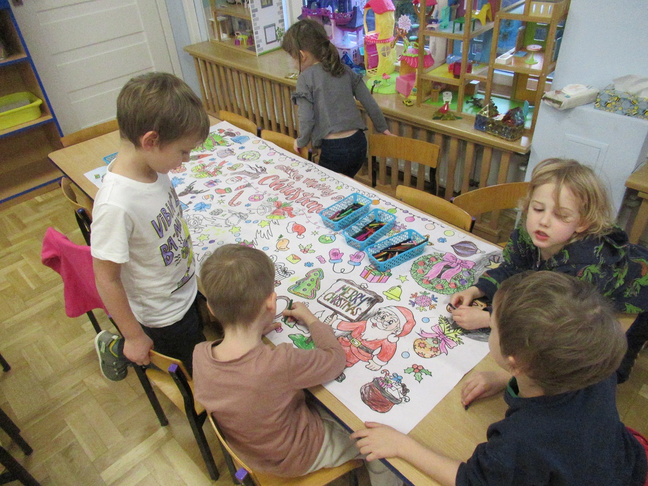 W tak zwanym międzyczasie wykonywaliśmy wiele prac świątecznych, śpiewaliśmy kolędy i pastorałki, pisaliśmy list do Świętego Mikołaja i ubieraliśmy choinkę.