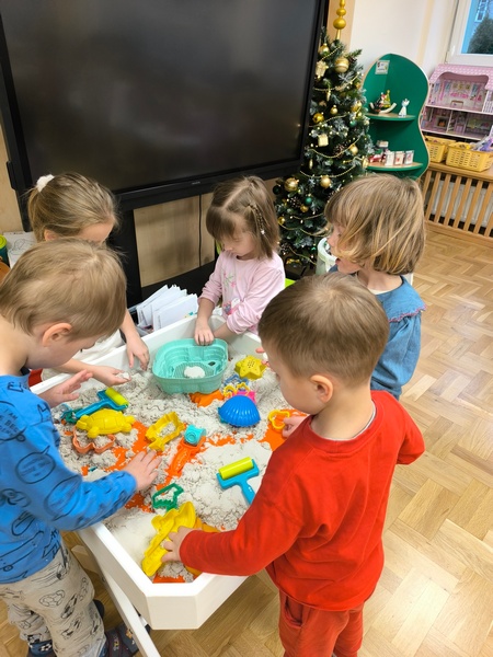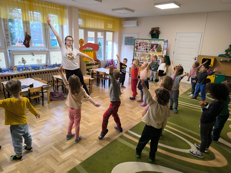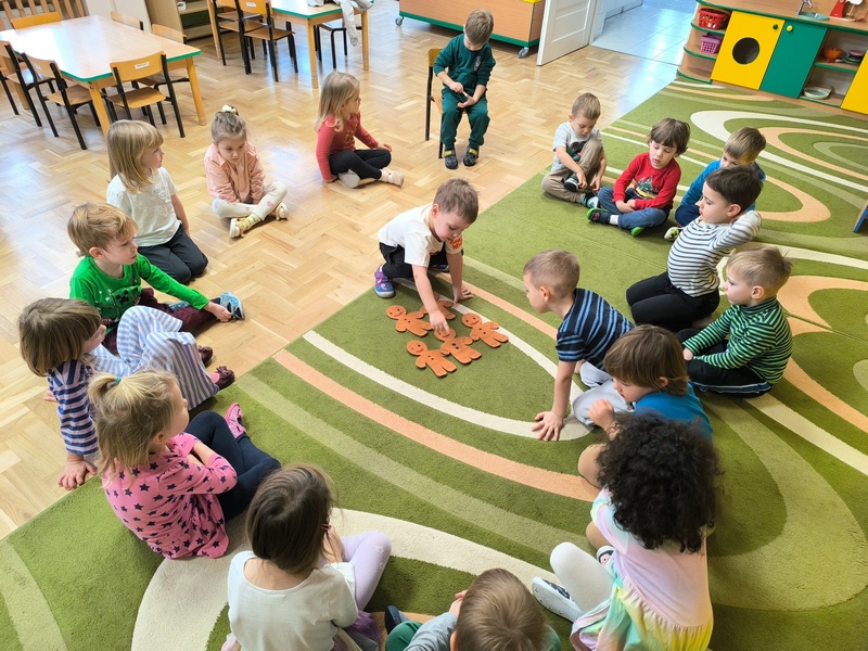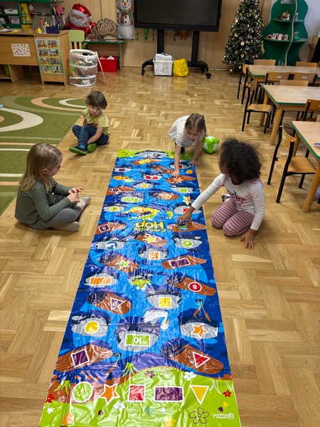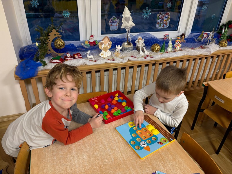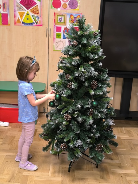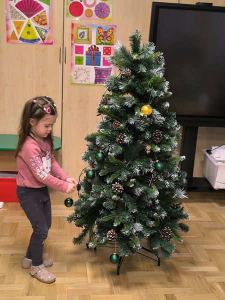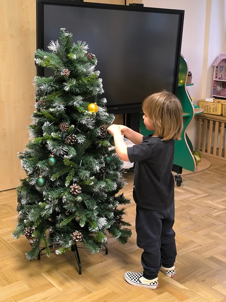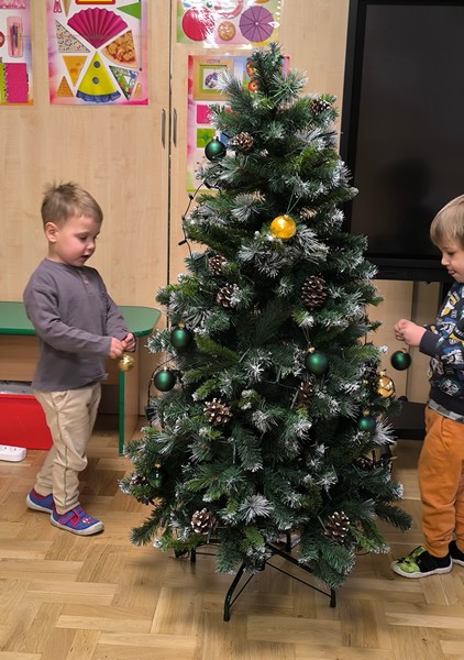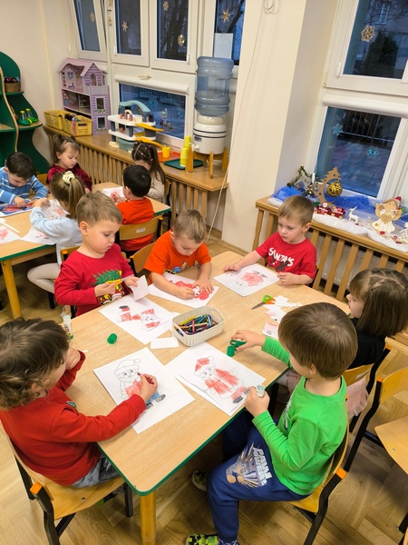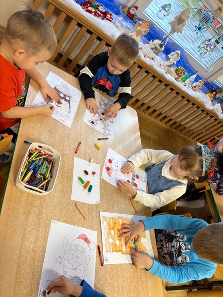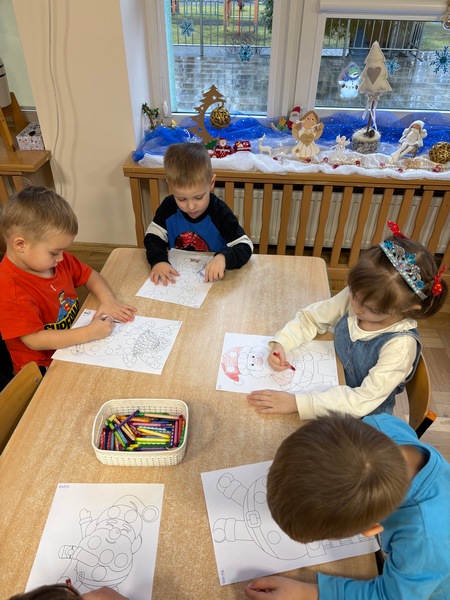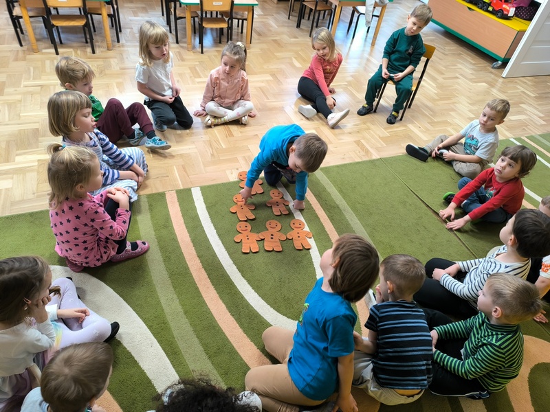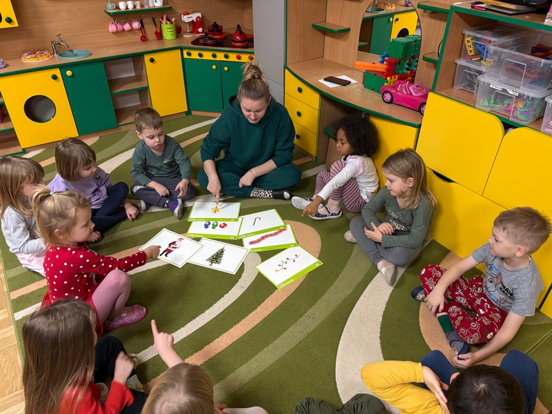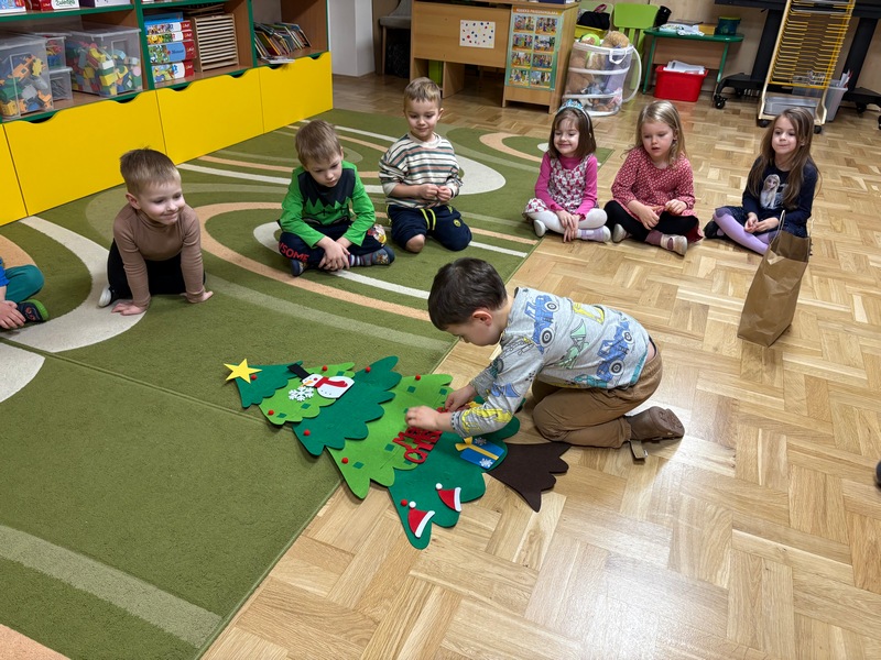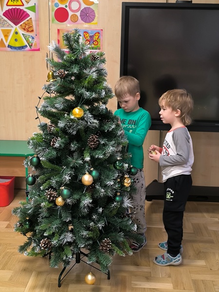 Przez cały miesiąc dużo rozmawialiśmy o świętach – omawialiśmy zwyczaje i tradycje związane ze świętami Bożego Narodzenia. Poznaliśmy sztukę składania świątecznych życzeń. Utrwalaliśmy zasady savoir vivre obowiązujące w czasie spożywania posiłku. Wspólnie planowaliśmy listę świątecznych zakupów doskonaląc umiejętność liczenia – przecież trzeba wszystko dokładnie przeliczyć, aby liczba produktów wystarczyła na wyczarowanie z nich dwunastu wigilijnych potraw.
