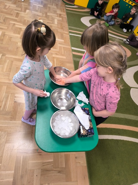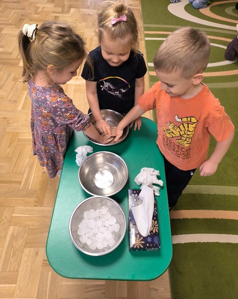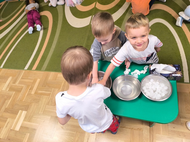- Eksperymentowaliśmy – sprawdzaliśmy, czy lód pływa; badaliśmy w jaki sposób odczuwamy ciepło i zimno.