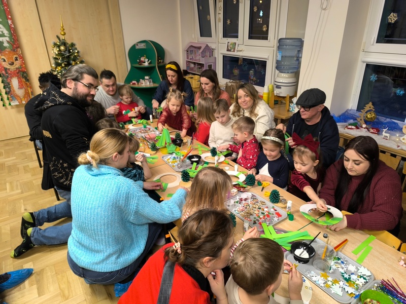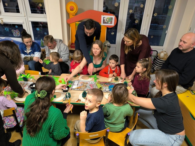 Świąteczna atmosfera dała nam się we znaki, dlatego aby tradycji stało się zadość, zaprosiliśmy naszych rodziców na świąteczno-zimowe warsztaty plastyczne, podczas których wykonaliśmy ozdoby. Jednak zanim zagoniliśmy rodziców do pracy zaprezentowaliśmy im nasz mini występ – niespodziankę. Na twarzach naszych mam i tatusiów zawidniała radość oraz wzruszenie, a to może oznaczać jedno –że przedstawienie się udało! Ale jak mogłoby być inaczej skoro przygotowywaliśmy się do tego dnia od kilku tygodni? Byliśmy z siebie bardzo dumni. Rodzice zresztą też.