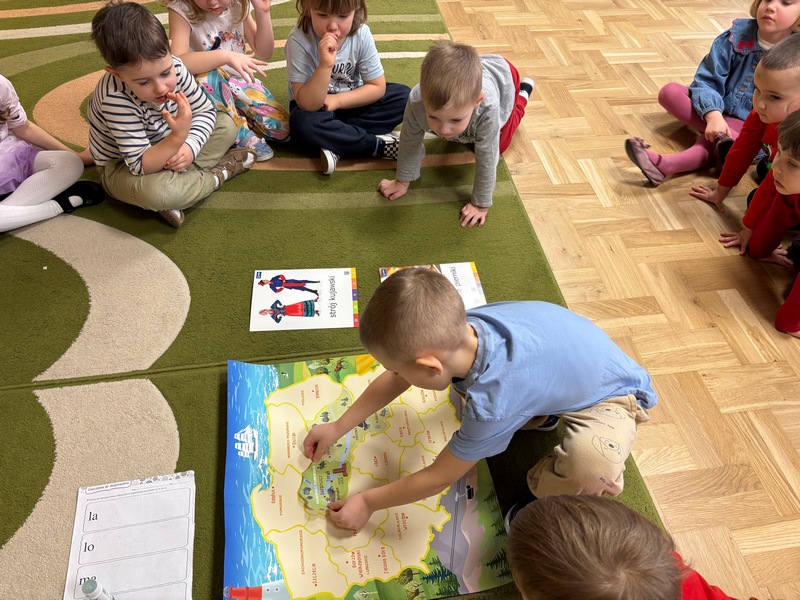 - „Podróż z Pluszowym Misiem po Polsce” – kujawsko-pomorskie – oglądaliśmy prezentację multimedialną przedstawiającą najważniejsze miejsca i zabytki znajdujące się na terenie tego województwa. Poznaliśmy dwa, najważniejsze miasta: Toruń i Bydgoszcz. Podziwialiśmy kujawskie stroje ludowe. Słuchaliśmy legendy pt. „Toruńskie pierniki oraz „Legendy o królu Popielu i myszach”. Przypomnieliśmy sobie postać Mikołaja Kopernika oraz jego odkrycia.