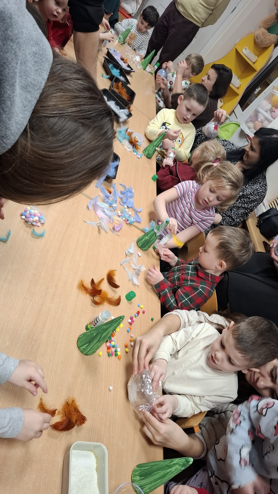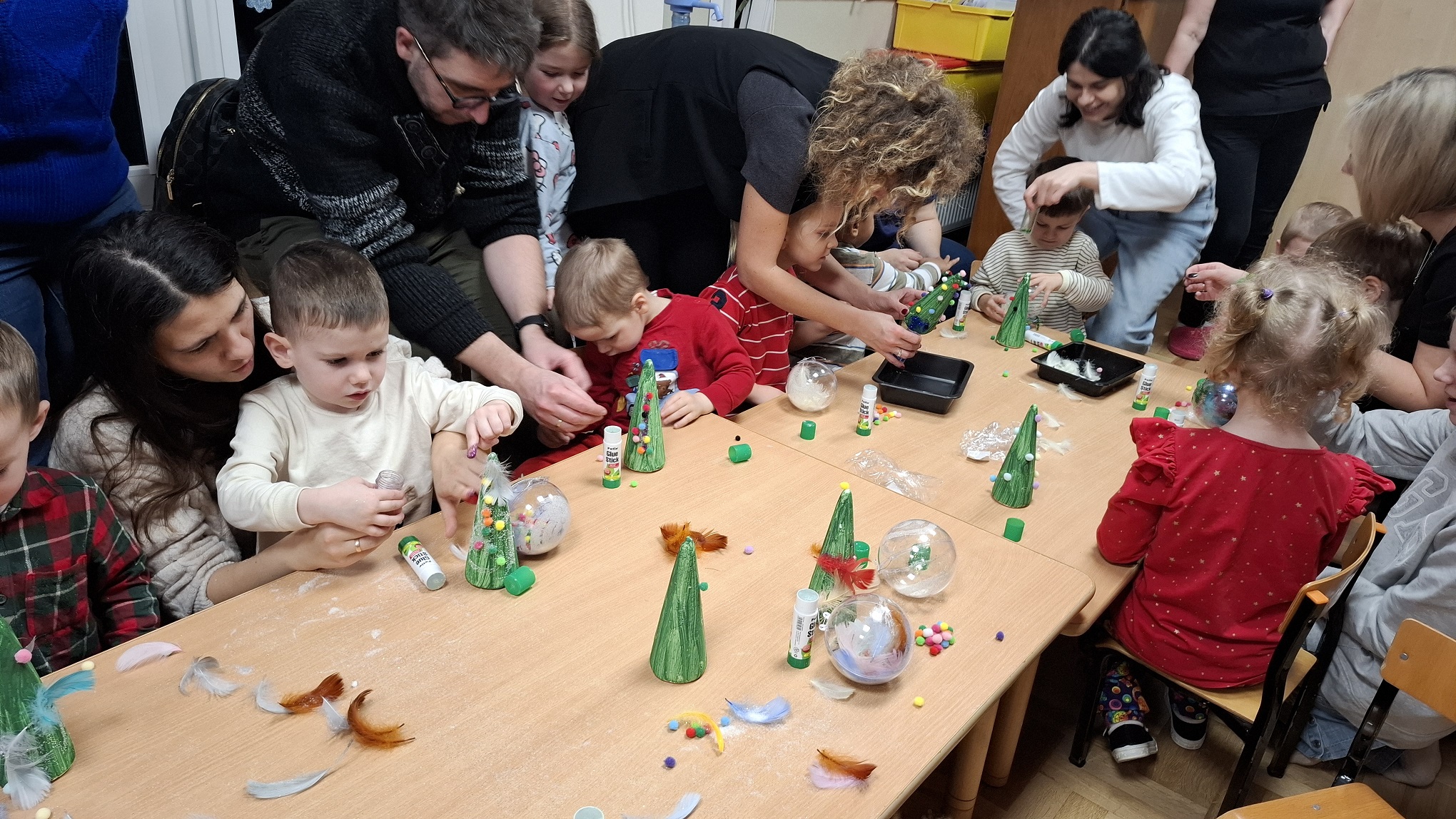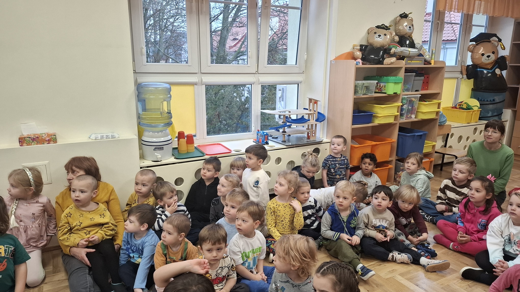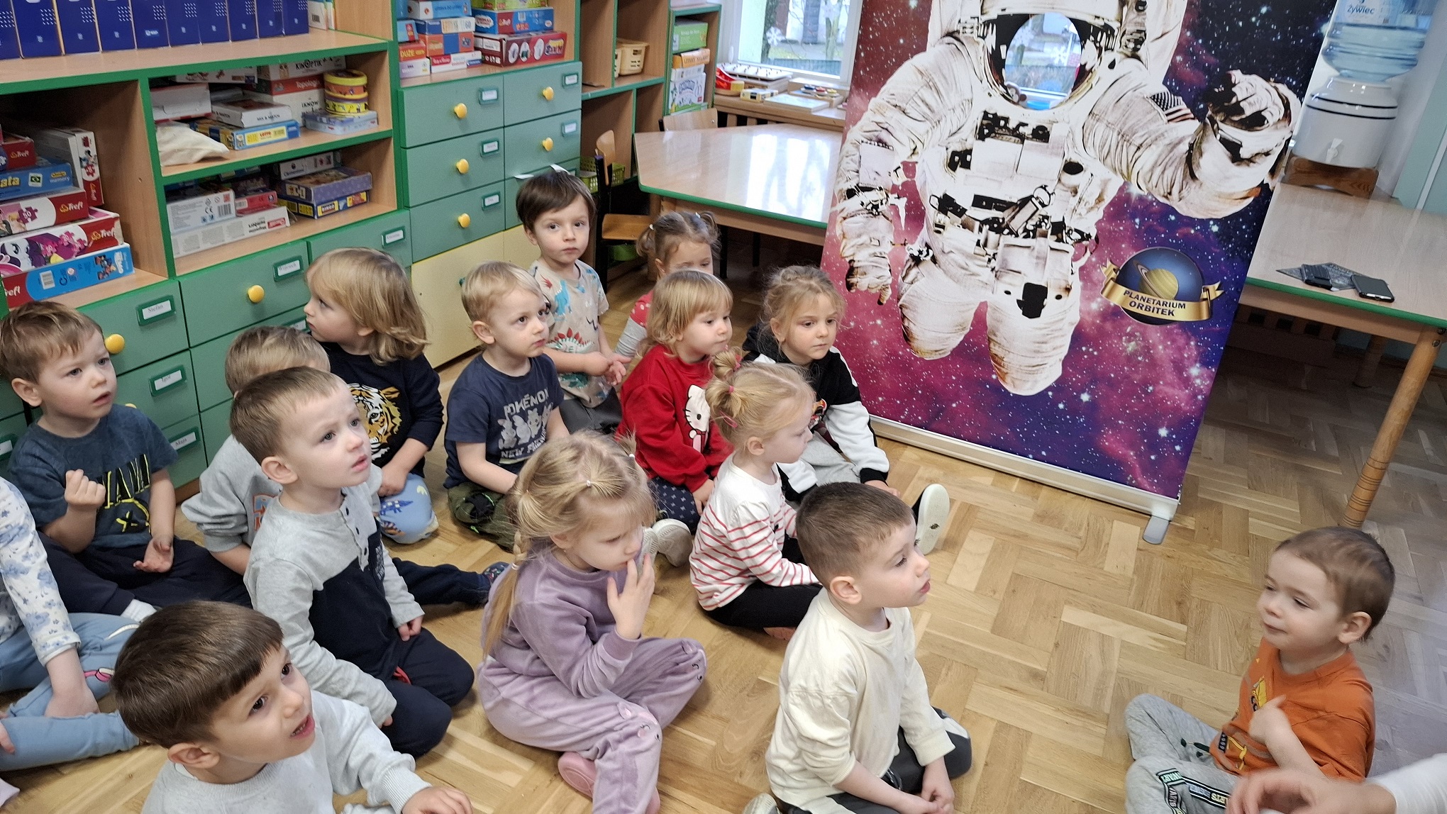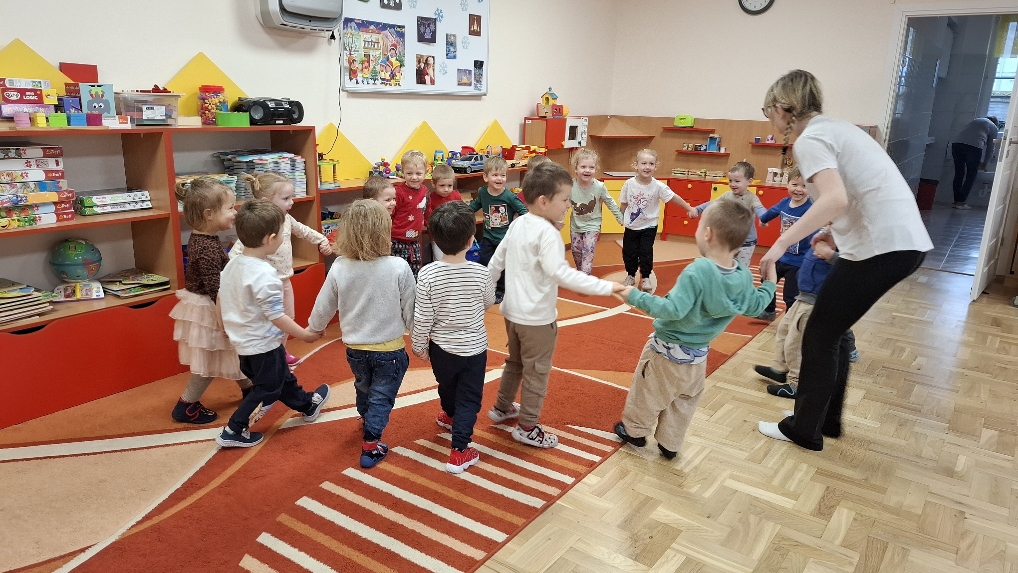 Grudzień w grupie 3-latków upłynął w radosnej, świątecznej atmosferze i obfitował w wiele ciekawych wydarzeń. Miesiąc rozpoczęliśmy od świątecznych warsztatów z udziałem rodziców, podczas których dzieci wspólnie z bliskimi tworzyły bożonarodzeniowe ozdoby. Był to wyjątkowy czas integracji, współpracy oraz budowania ciepłych relacji. Z okazji Mikołajek dzieci wzięły udział w seansie w planetarium, który przeniósł je w niezwykły świat gwiazd i kosmosu. Magiczna atmosfera, światła i obrazy wzbudziły duże zainteresowanie oraz zachwyt najmłodszych. Kolejnym wydarzeniem były warsztaty LabOdkrywcy „Kolorowe jony”, podczas których dzieci w przystępny sposób poznały świat nauki. Dowiedziały się, że kolorowe jony mogą pomagać człowiekowi w walce z bakteriami, rozwijając ciekawość poznawczą i zainteresowanie otaczającym światem. W grudniu nie zabrakło także aktywności ruchowej. Zajęcia Roar Dance dostarczyły dzieciom mnóstwo radości, pozwoliły rozładować energię oraz rozwijały koordynację ruchową i poczucie rytmu. Miesiąc zakończyliśmy wyjątkowym spotkaniem z Mikołajem, które wywołało wiele uśmiechów i emocji. Dzieci z radością przywitały gościa, śpiewały piosenki i otrzymały drobne upominki. Grudzień był dla naszych 3-latków czasem pełnym zabawy, nauki i świątecznego ciepła, który na długo pozostanie w ich pamięci.