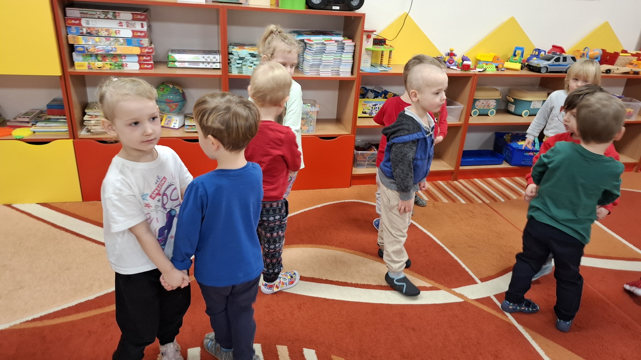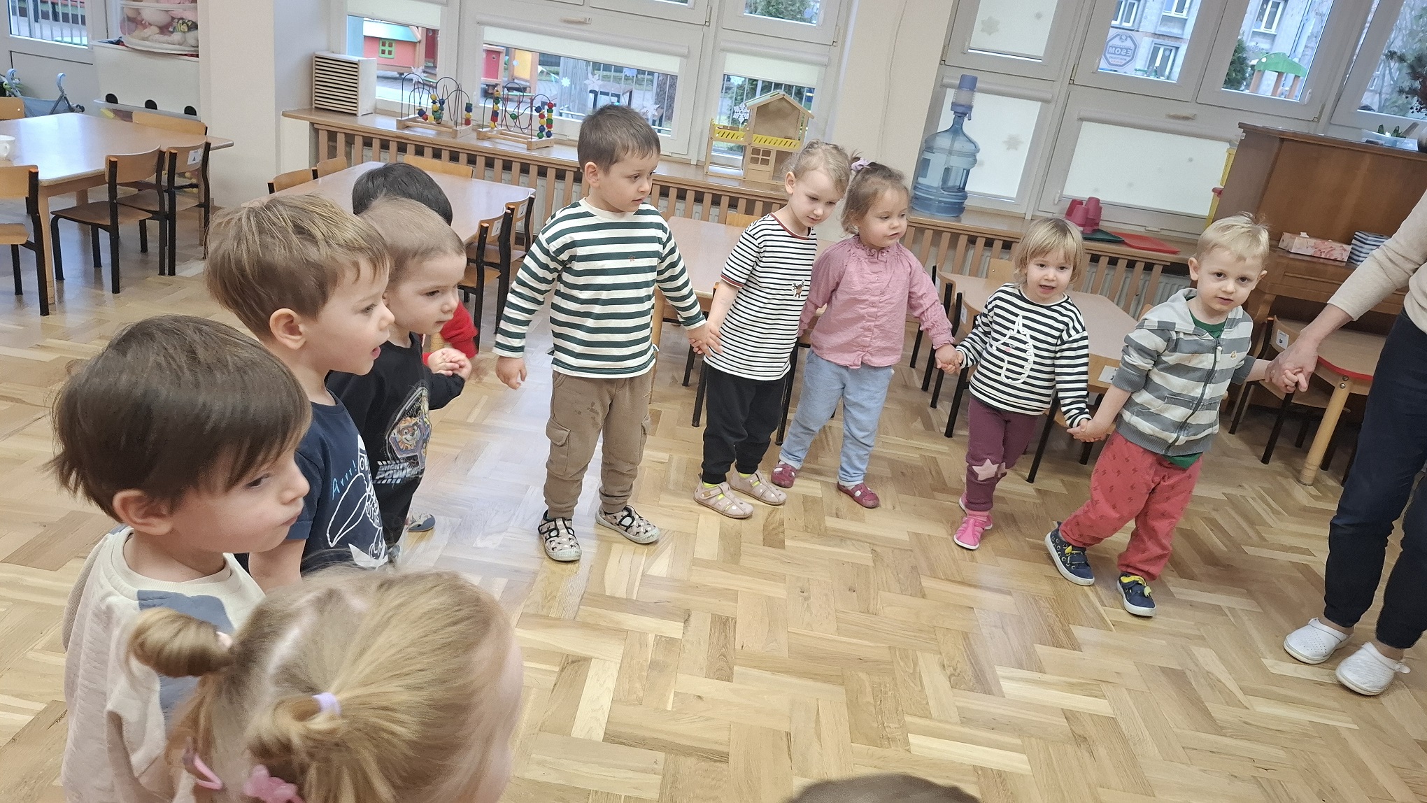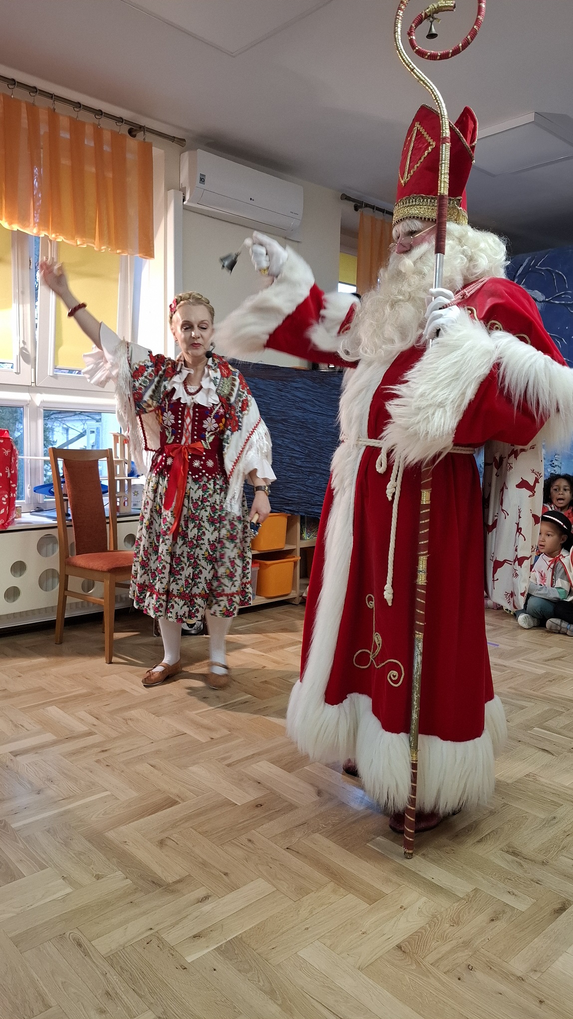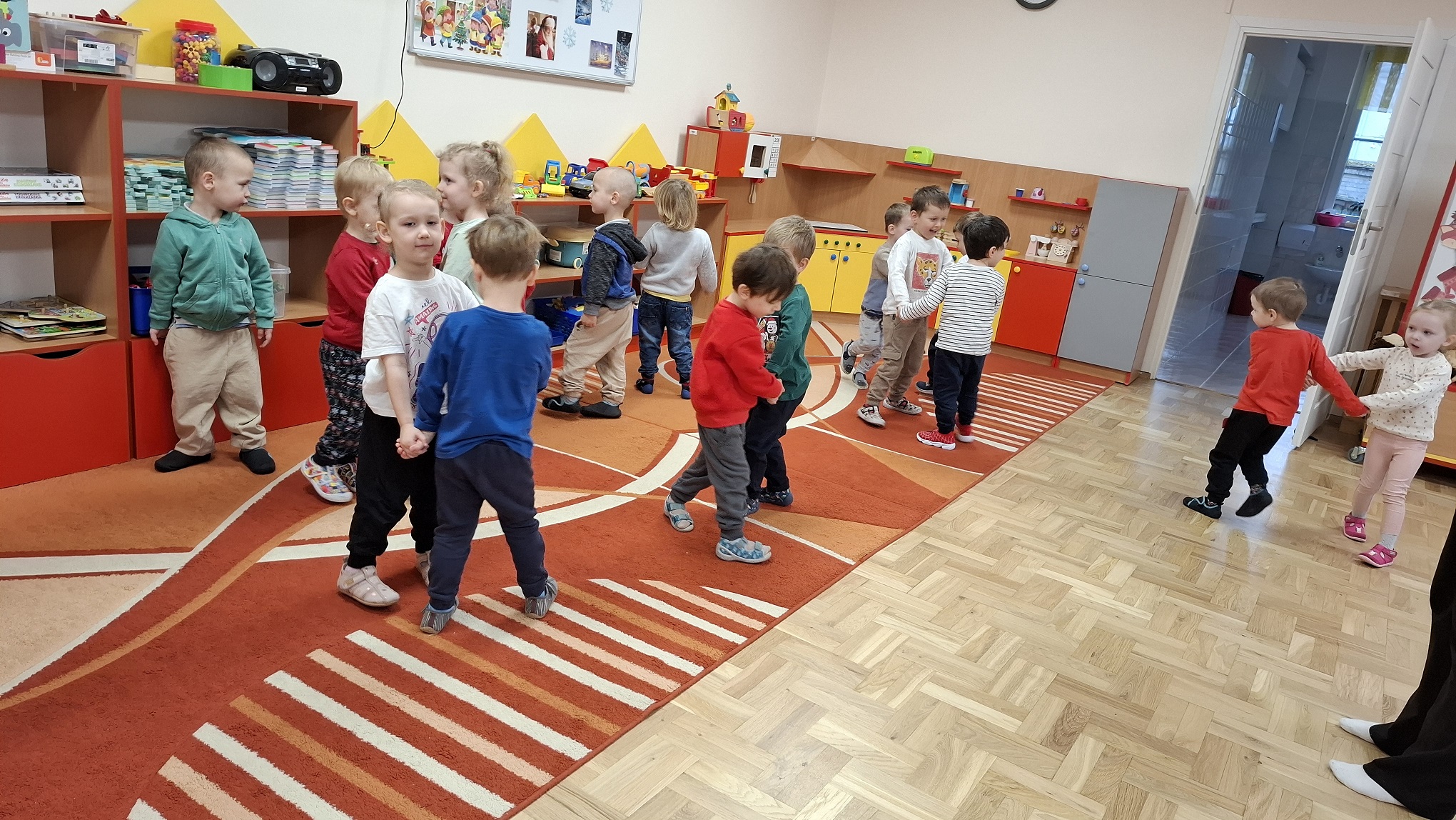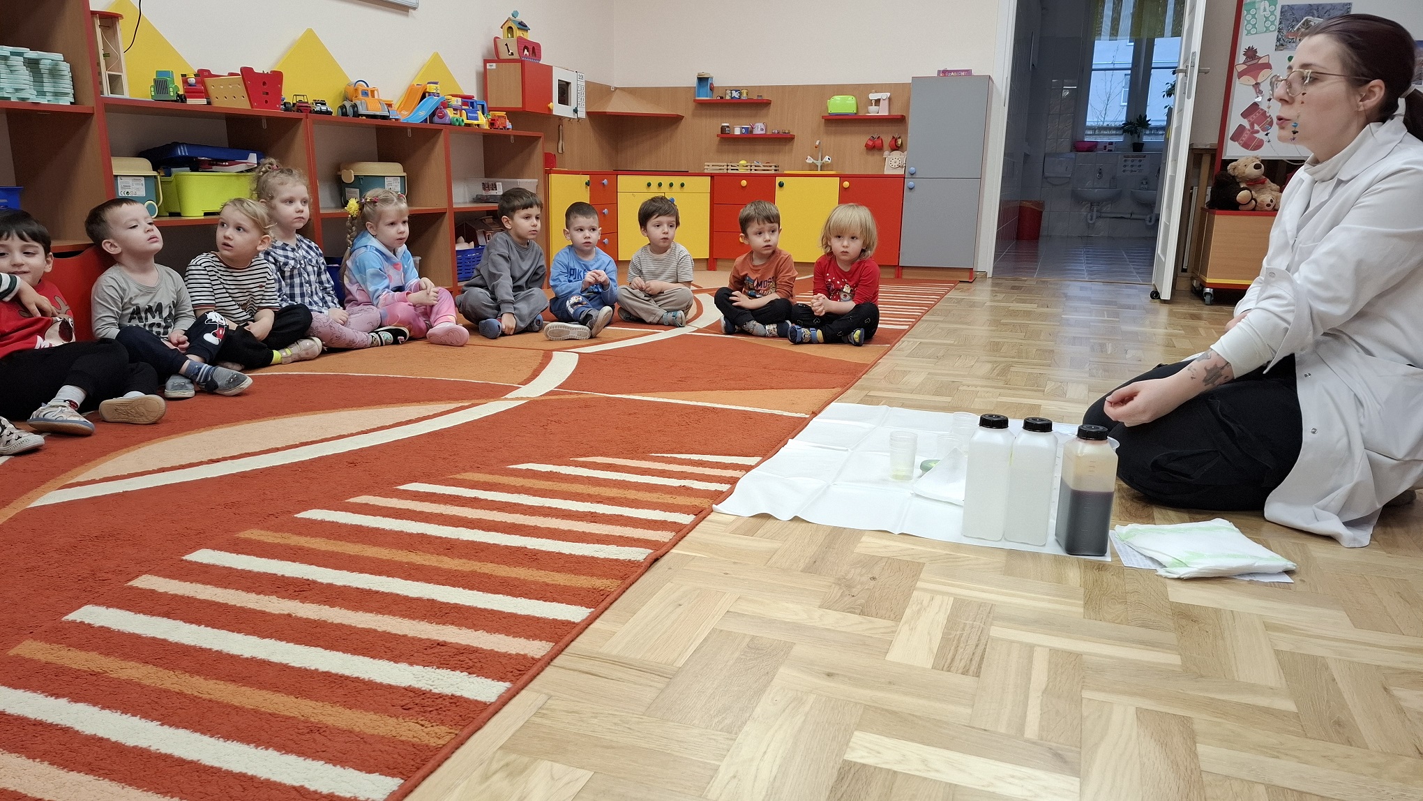 Grudzień w grupie 3-latków upłynął w radosnej, świątecznej atmosferze i obfitował w wiele ciekawych wydarzeń. Miesiąc rozpoczęliśmy od świątecznych warsztatów z udziałem rodziców, podczas których dzieci wspólnie z bliskimi tworzyły bożonarodzeniowe ozdoby. Był to wyjątkowy czas integracji, współpracy oraz budowania ciepłych relacji. Z okazji Mikołajek dzieci wzięły udział w seansie w planetarium, który przeniósł je w niezwykły świat gwiazd i kosmosu. Magiczna atmosfera, światła i obrazy wzbudziły duże zainteresowanie oraz zachwyt najmłodszych. Kolejnym wydarzeniem były warsztaty LabOdkrywcy „Kolorowe jony”, podczas których dzieci w przystępny sposób poznały świat nauki. Dowiedziały się, że kolorowe jony mogą pomagać człowiekowi w walce z bakteriami, rozwijając ciekawość poznawczą i zainteresowanie otaczającym światem. W grudniu nie zabrakło także aktywności ruchowej. Zajęcia Roar Dance dostarczyły dzieciom mnóstwo radości, pozwoliły rozładować energię oraz rozwijały koordynację ruchową i poczucie rytmu. Miesiąc zakończyliśmy wyjątkowym spotkaniem z Mikołajem, które wywołało wiele uśmiechów i emocji. Dzieci z radością przywitały gościa, śpiewały piosenki i otrzymały drobne upominki. Grudzień był dla naszych 3-latków czasem pełnym zabawy, nauki i świątecznego ciepła, który na długo pozostanie w ich pamięci.