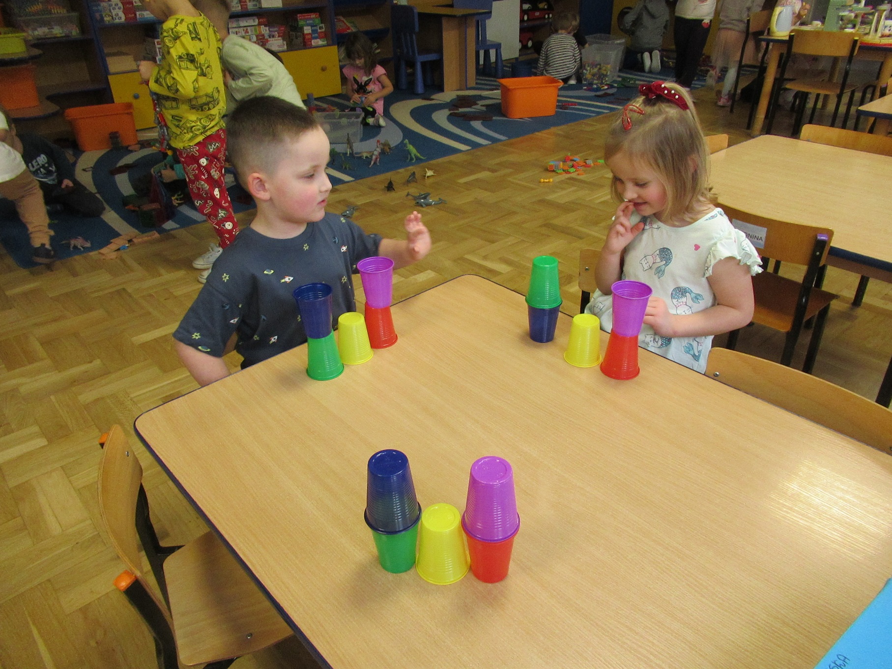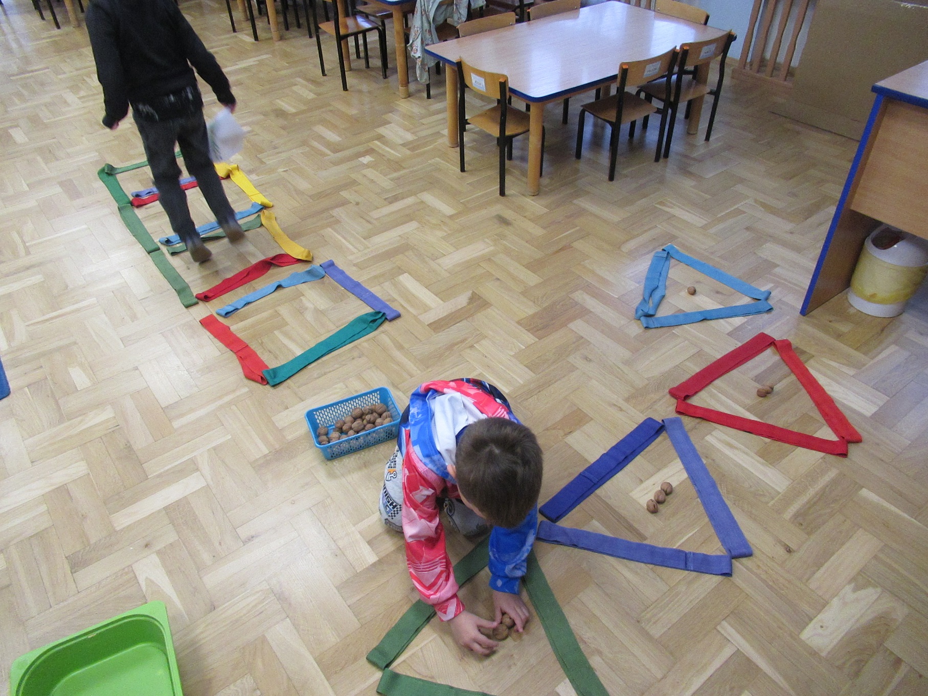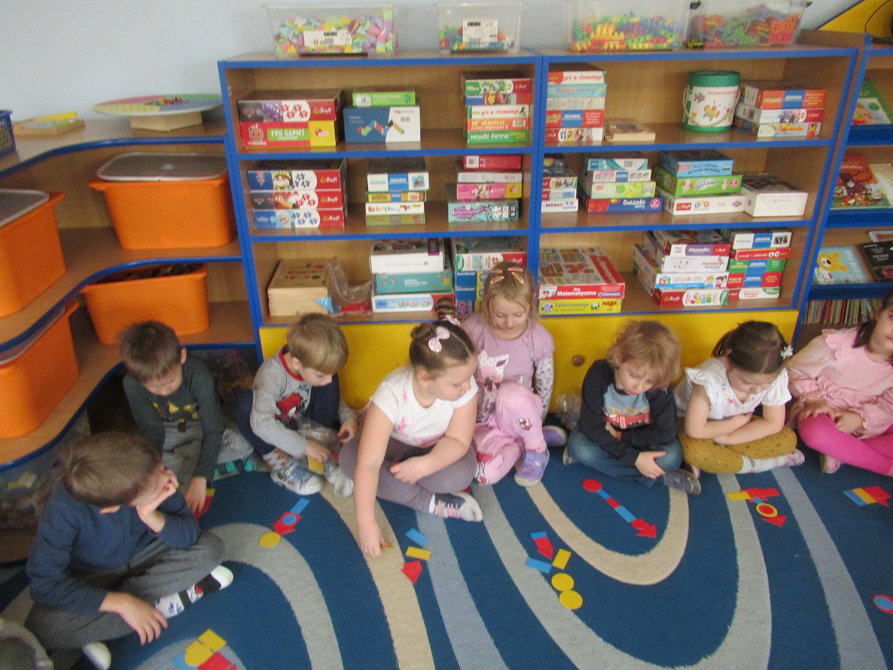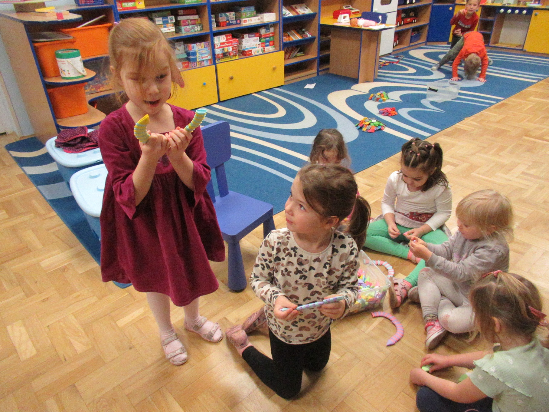 Nie zapomnieliśmy również o realizacji tematu planu rocznego:” Matematyka w czterech porach roku”. W tym miesiącu zajmowaliśmy się rytmami. Samodzielnie tworzyliśmy i kontynuowaliśmy rytmy z różnych materiałów przyrodniczych. Wyszukiwaliśmy również rytmów w codziennym życiu, takich jak dzień i noc, cykliczność dni tygodnia, miesięcy i pór roku. Odtwarzaliśmy także rytmy dźwiękowe. Wykonywaliśmy też różne karty pracy związane z kontynuowaniem określonych sekwencji zgodnie z podanym wzorem.