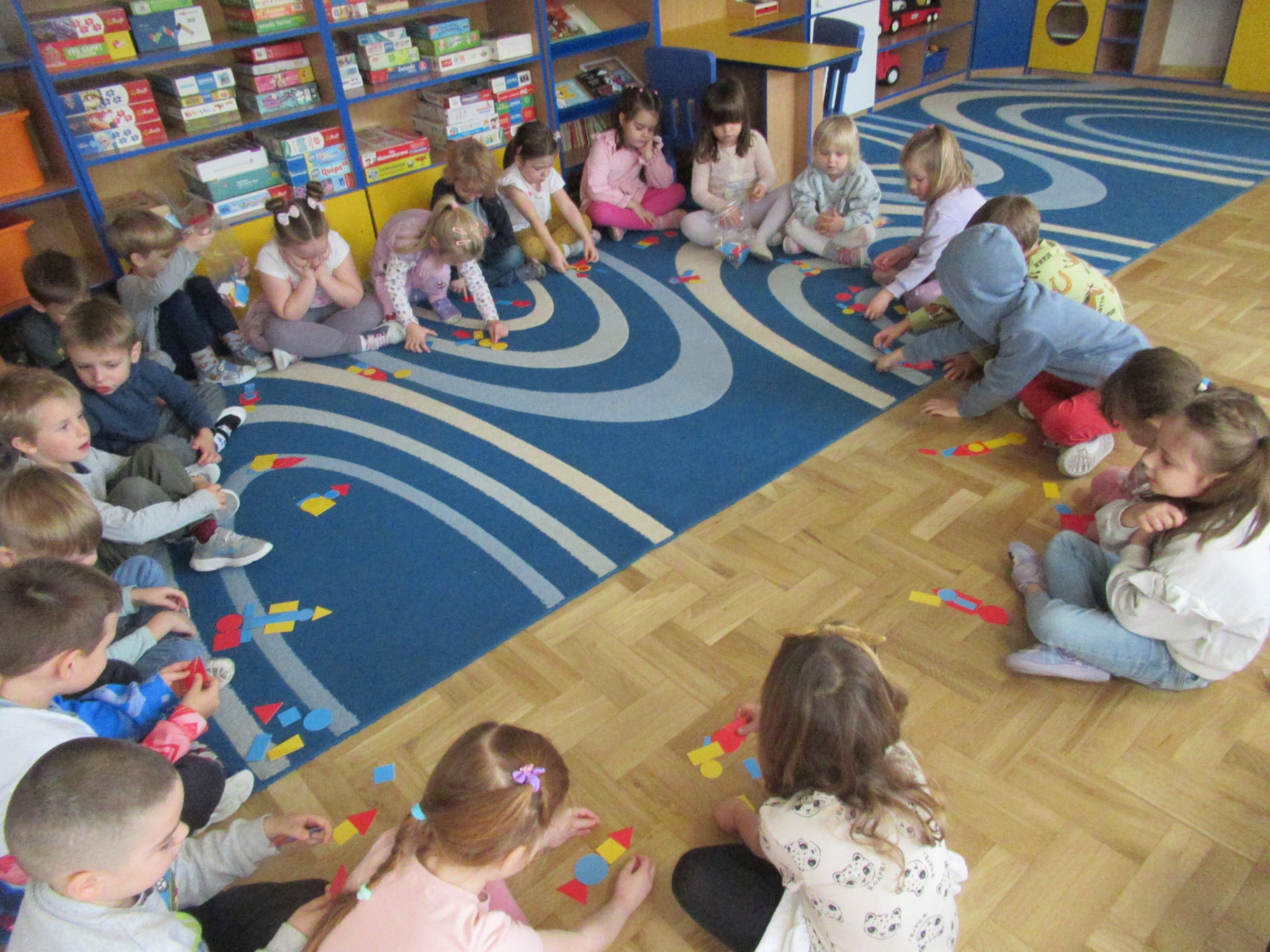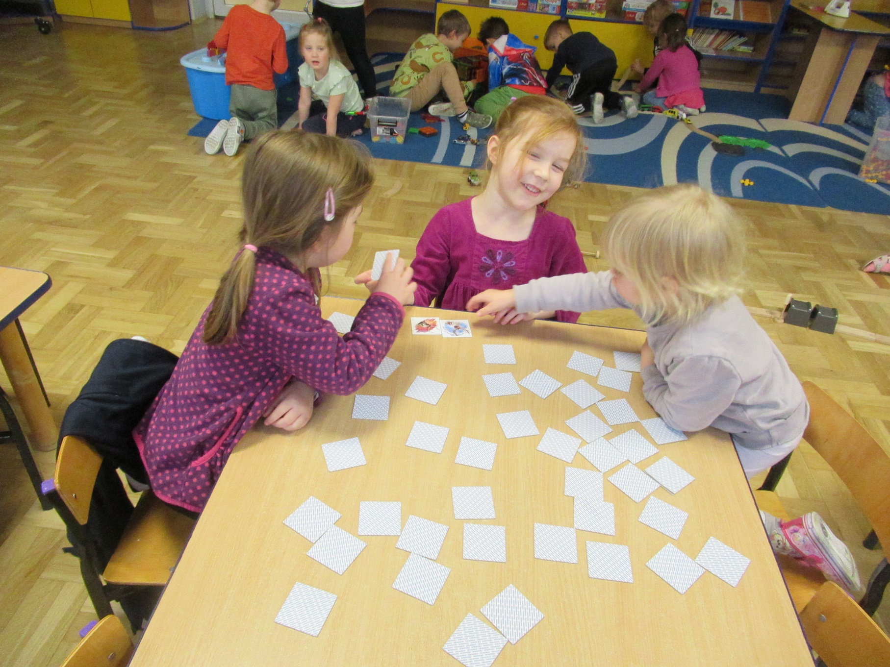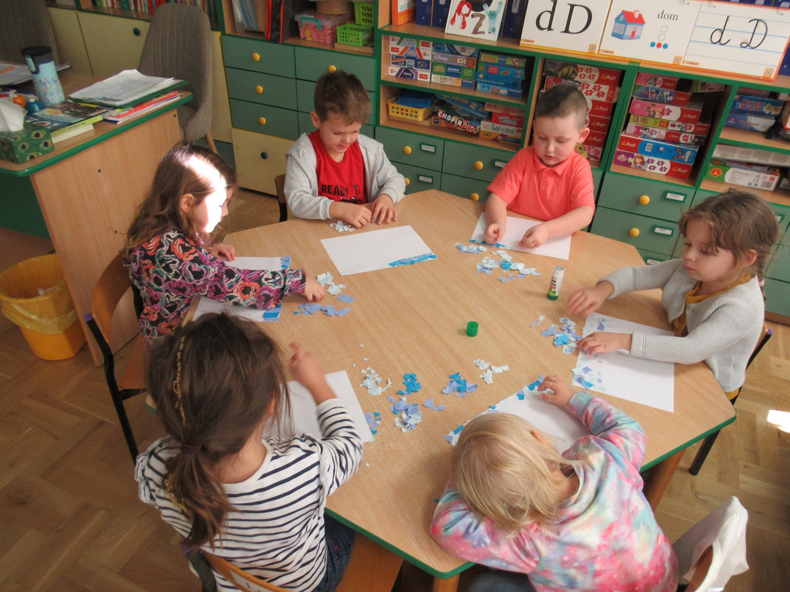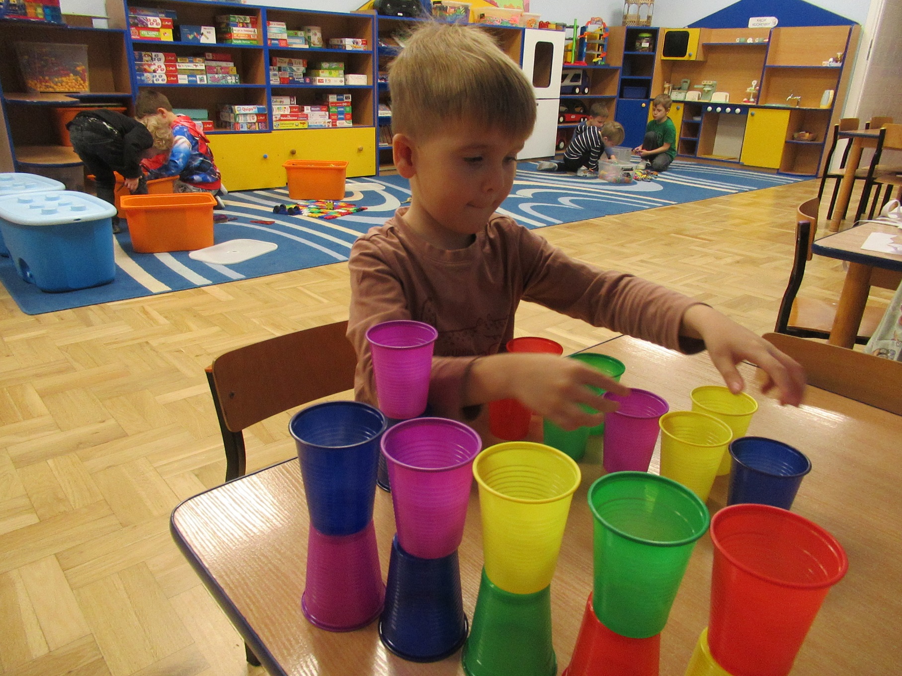 Nie zapomnieliśmy również o realizacji tematu planu rocznego:” Matematyka w czterech porach roku”. W tym miesiącu zajmowaliśmy się rytmami. Samodzielnie tworzyliśmy i kontynuowaliśmy rytmy z różnych materiałów przyrodniczych. Wyszukiwaliśmy również rytmów w codziennym życiu, takich jak dzień i noc, cykliczność dni tygodnia, miesięcy i pór roku. Odtwarzaliśmy także rytmy dźwiękowe. Wykonywaliśmy też różne karty pracy związane z kontynuowaniem określonych sekwencji zgodnie z podanym wzorem.