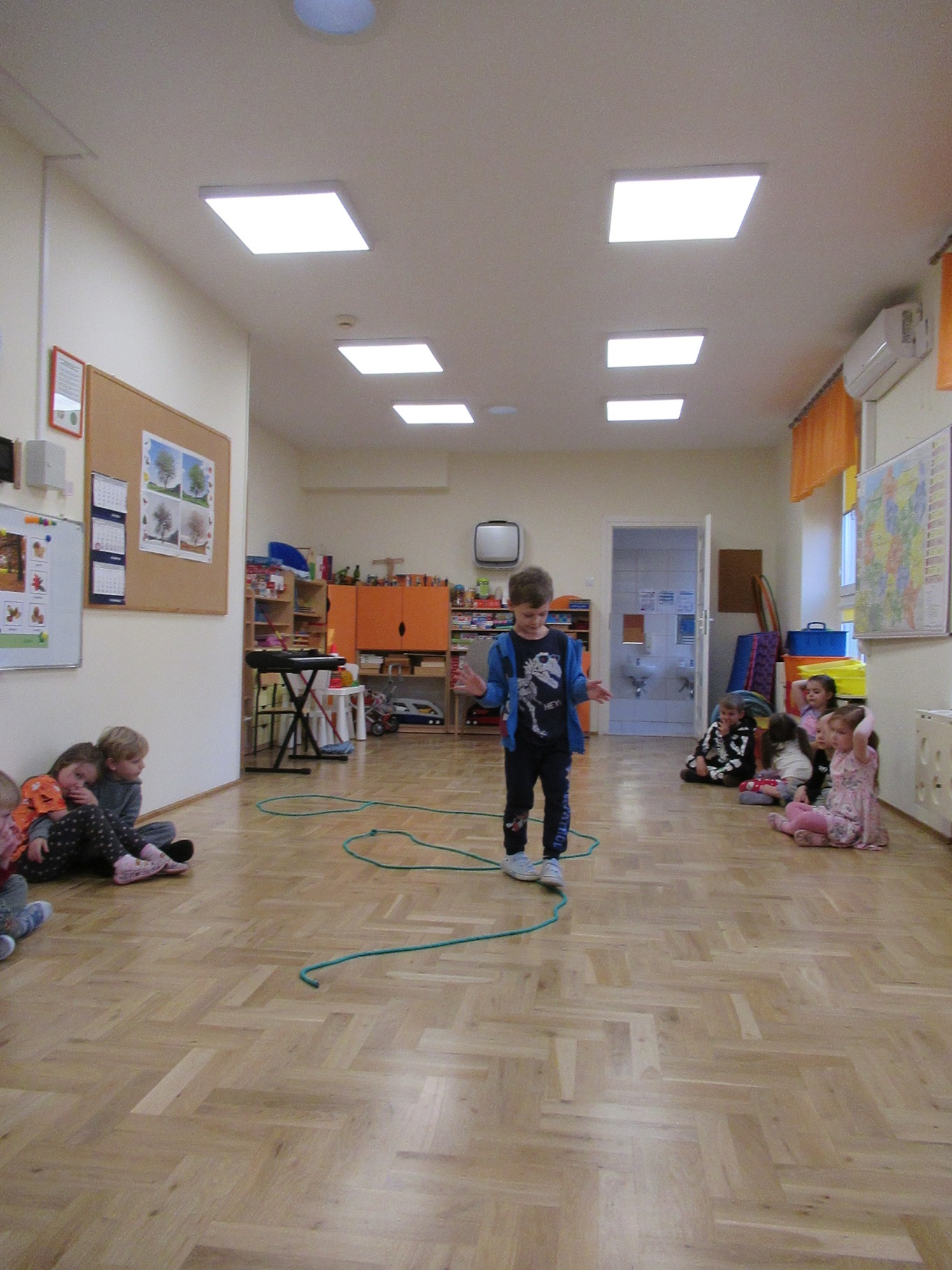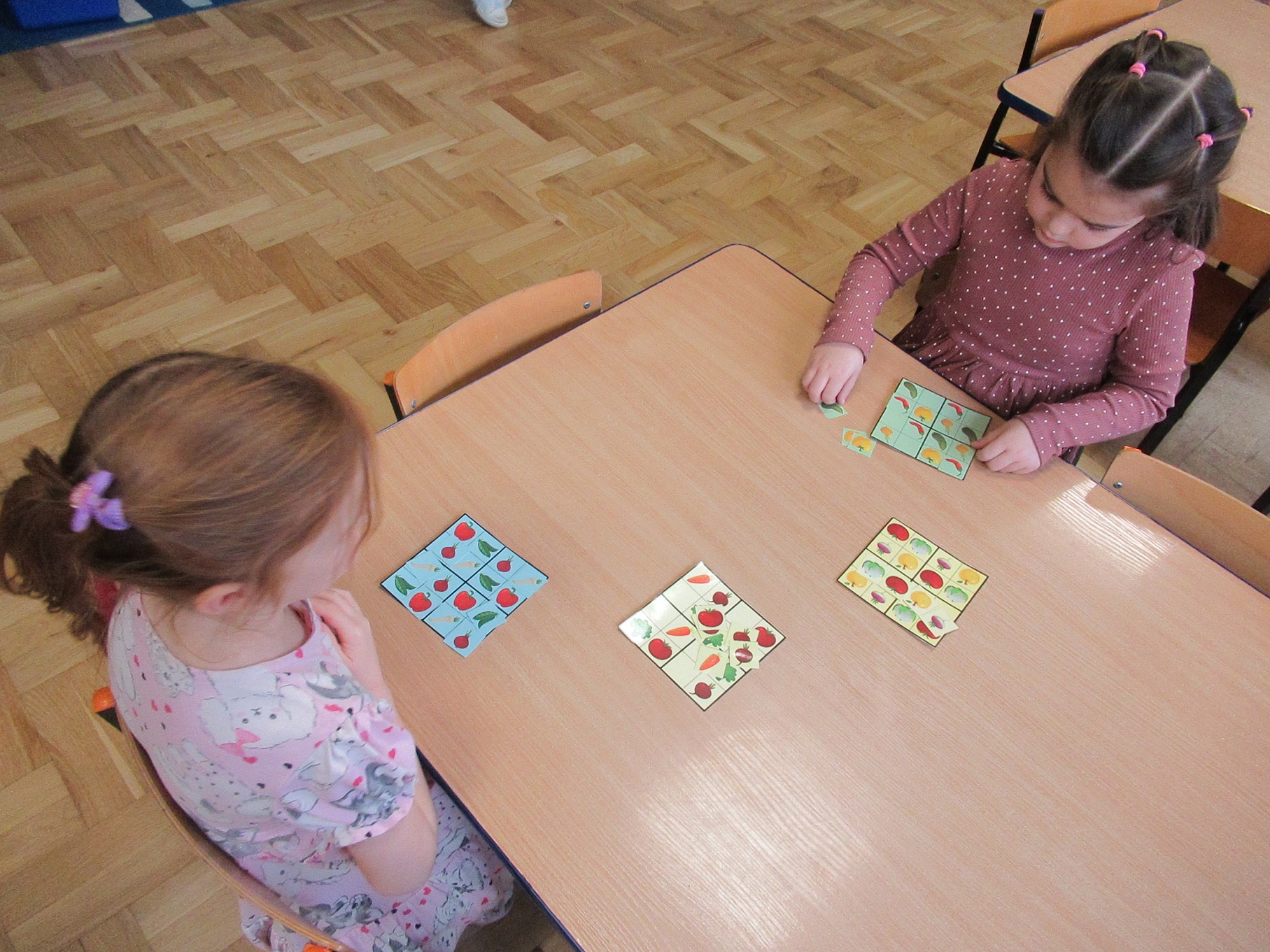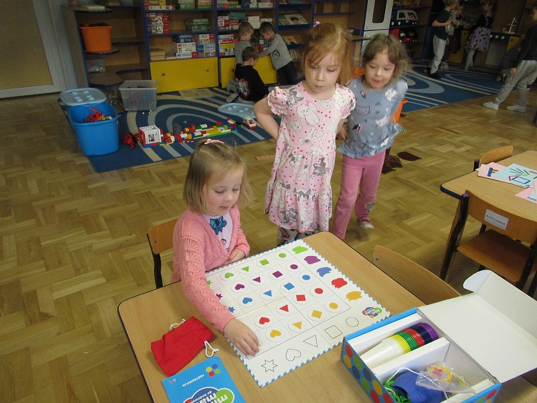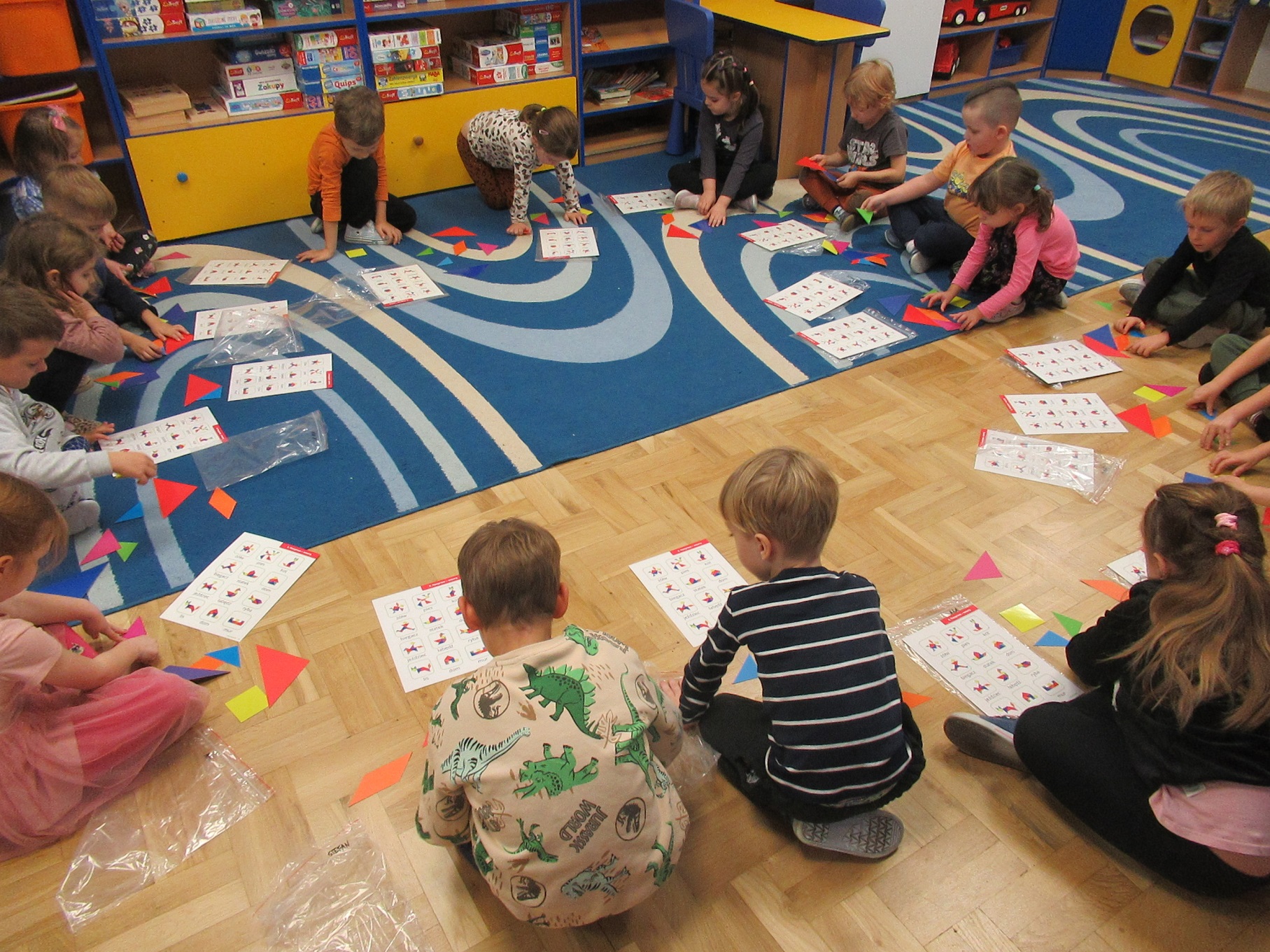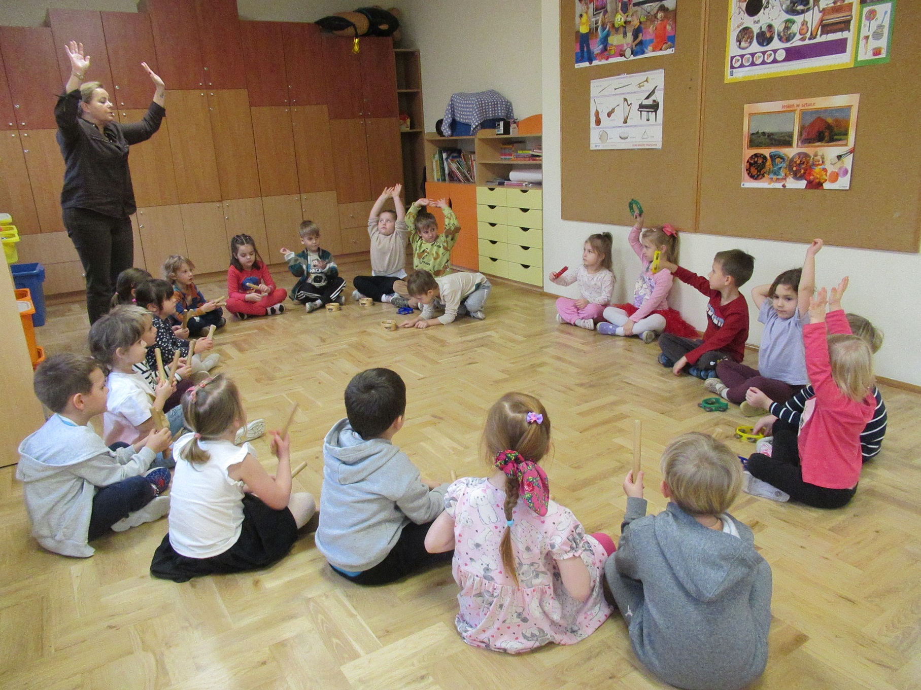 Nie zapomnieliśmy również o realizacji tematu planu rocznego:” Matematyka w czterech porach roku”. W tym miesiącu zajmowaliśmy się rytmami. Samodzielnie tworzyliśmy i kontynuowaliśmy rytmy z różnych materiałów przyrodniczych. Wyszukiwaliśmy również rytmów w codziennym życiu, takich jak dzień i noc, cykliczność dni tygodnia, miesięcy i pór roku. Odtwarzaliśmy także rytmy dźwiękowe. Wykonywaliśmy też różne karty pracy związane z kontynuowaniem określonych sekwencji zgodnie z podanym wzorem.