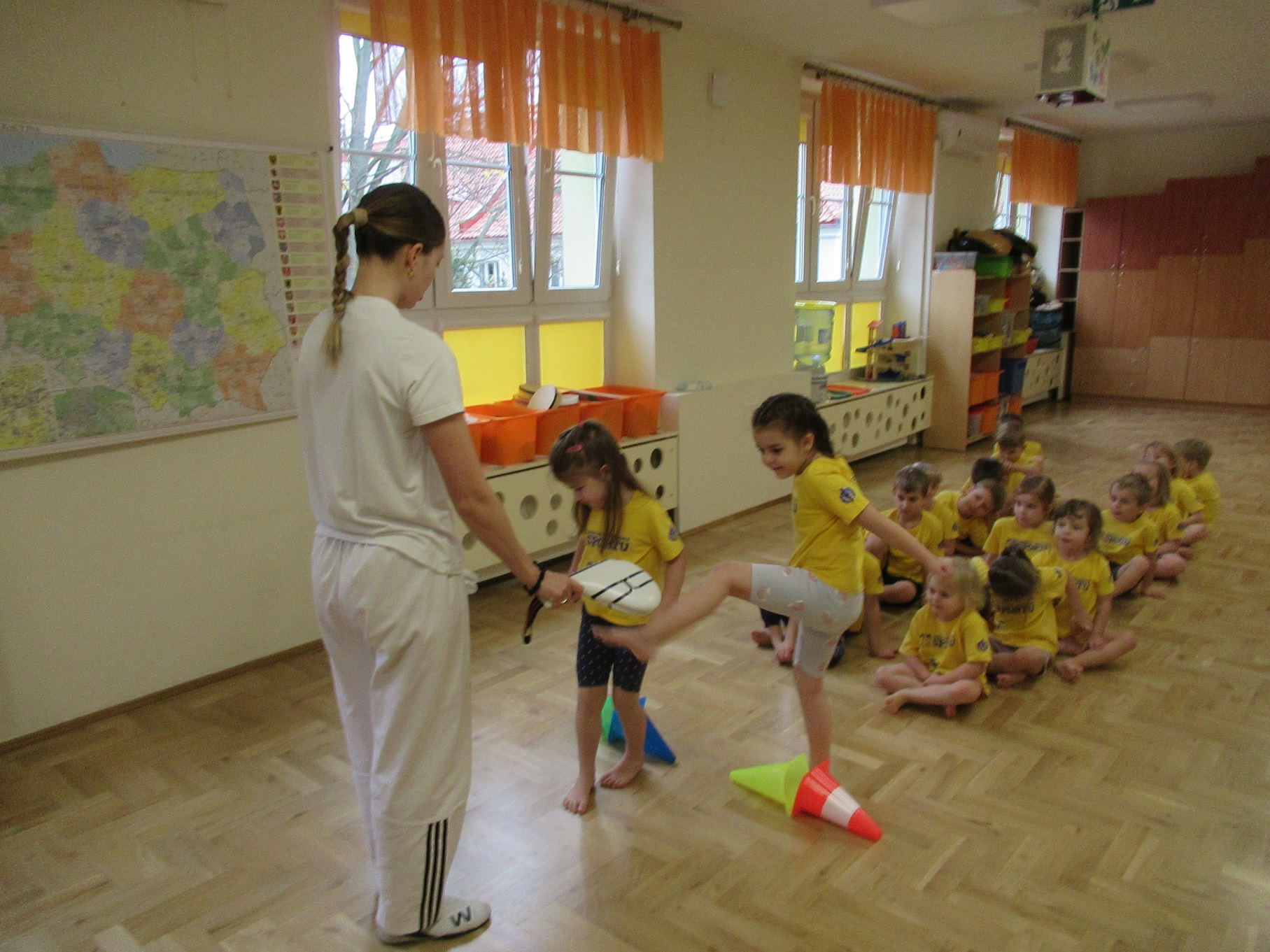 Dbaliśmy o swoją formę fizyczną i kondycję biorąc udział w zajęciach gimnastycznych i zajęciach sportowych z elementami Taekwondo, a także tanecznych: Roar Dance i muzyczno – rytmicznych z Panią rytmiczką.