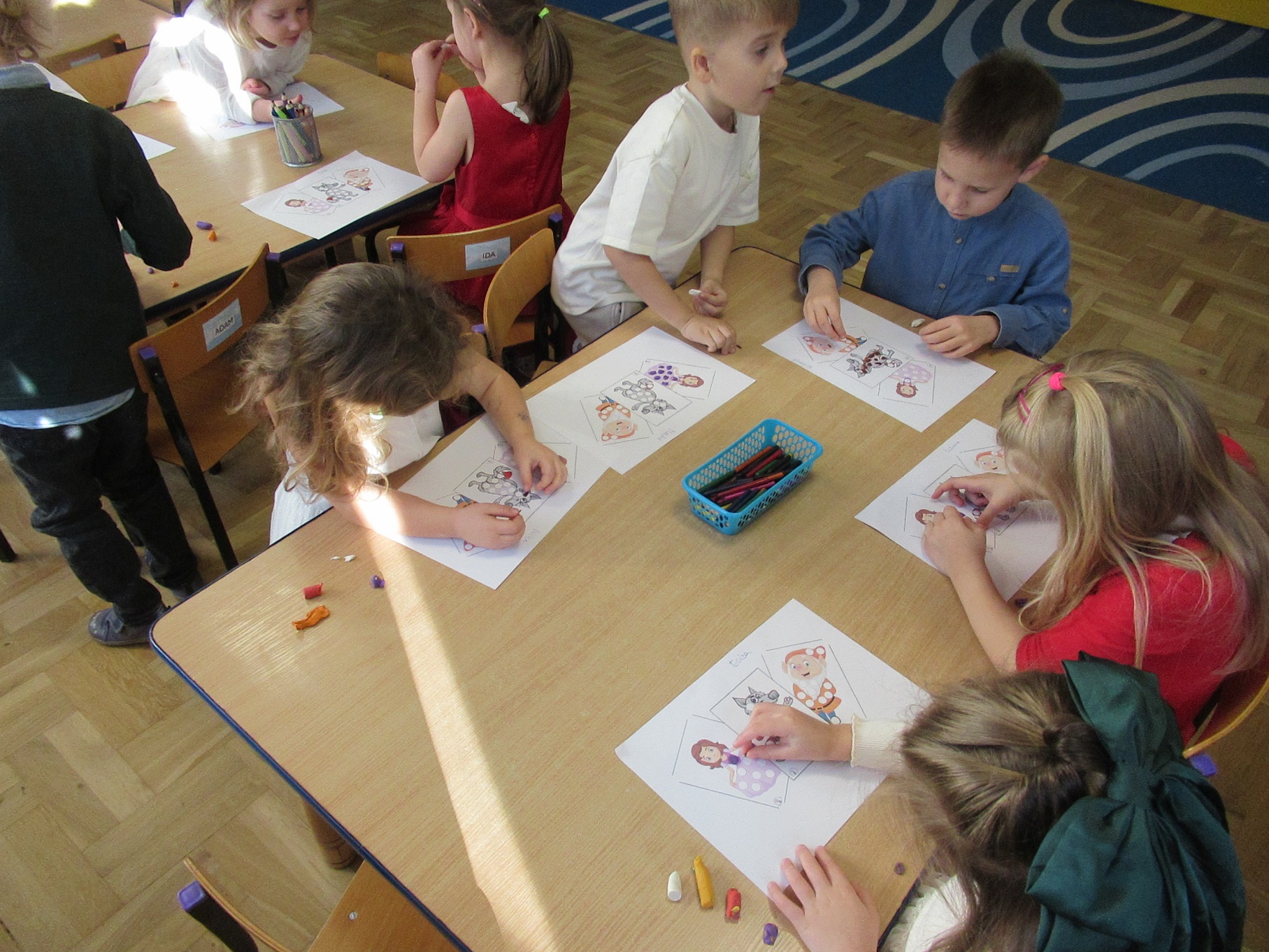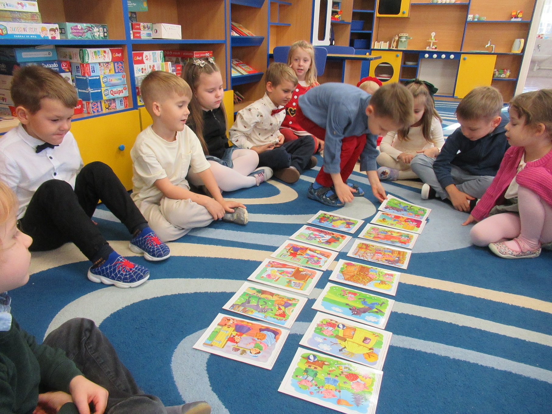 06 11. obchodziliśmy Dzień Postaci z bajek. Wypowiadaliśmy się na temat ulubionych bajek. Rozwiązywaliśmy zagadki o znanych postaciach bajkowych. Układaliśmy i opowiadaliśmy bajkową historyjkę obrazkową. Bawiliśmy się w skojarzenia: ”Jaka to bajka?” A także wykonywaliśmy prace plastyczne.