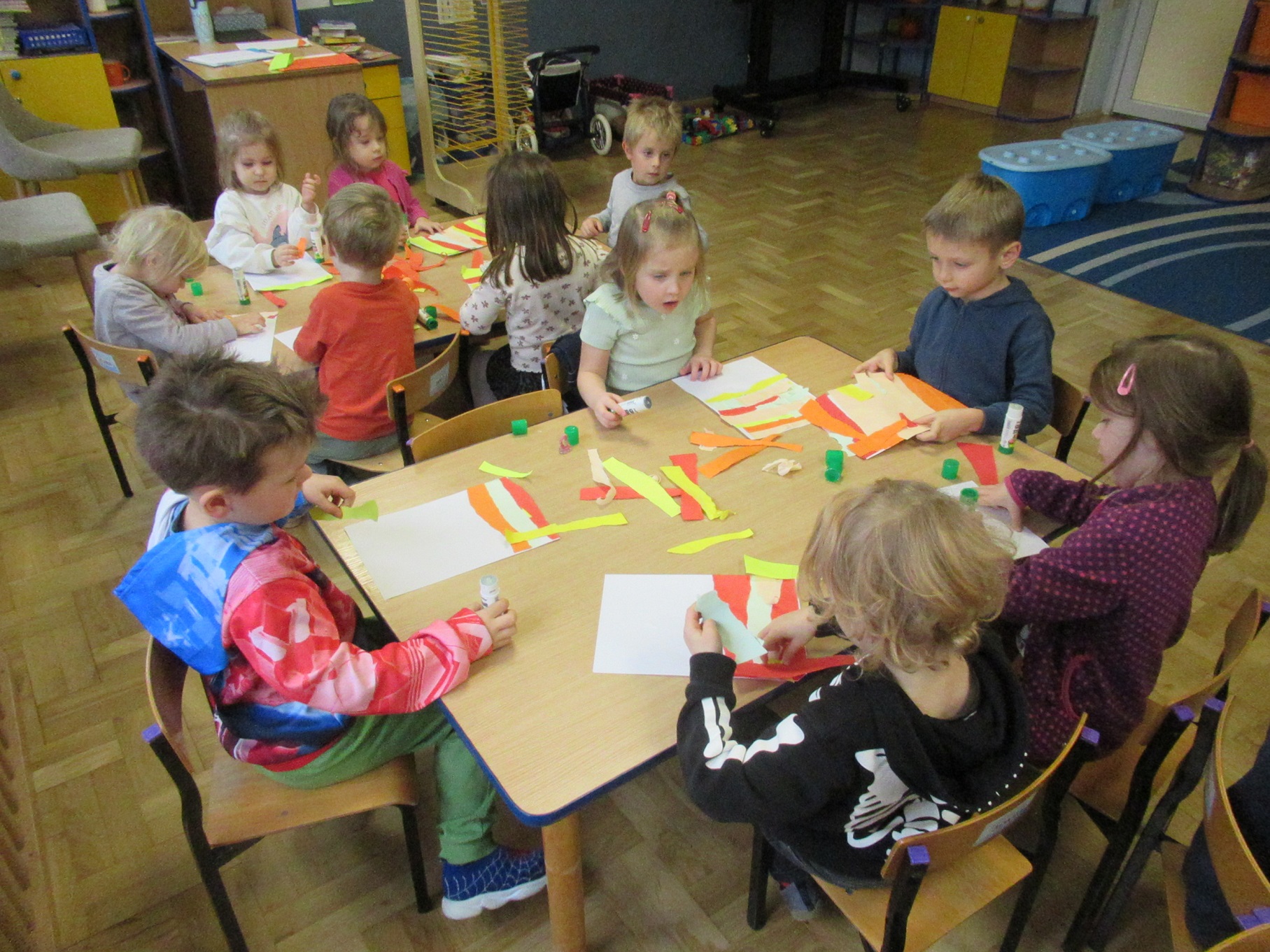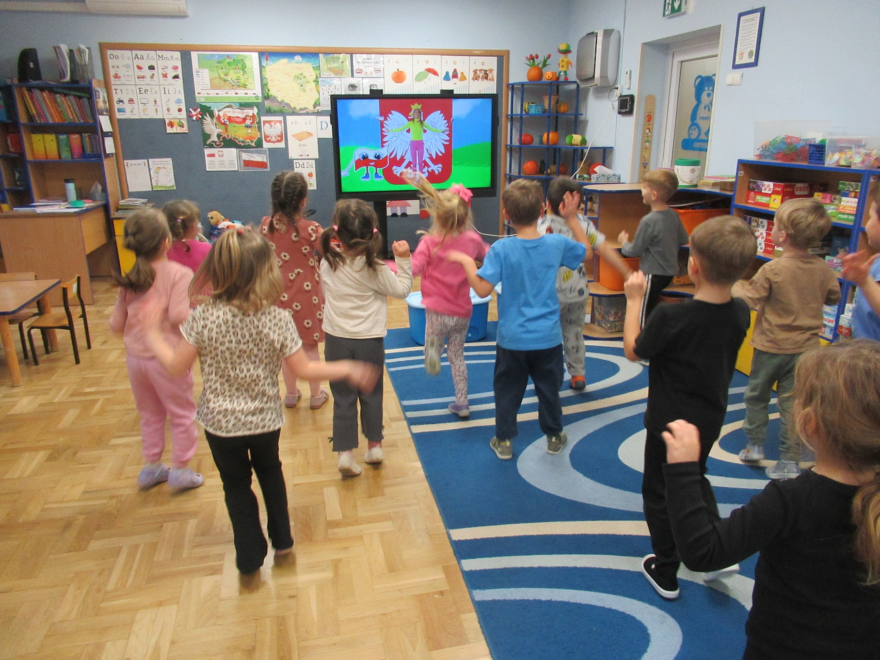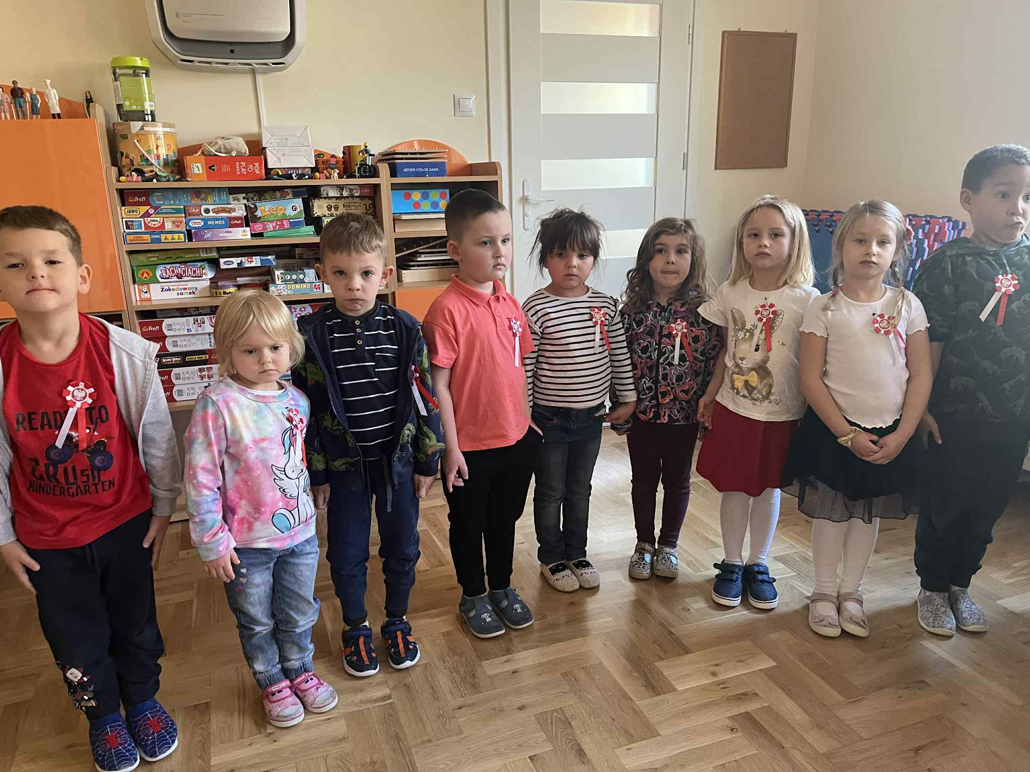 Obchodziliśmy również Dzień Niepodległości. Wszystkie przedszkolaki z naszej placówki wzięły udział w akcji:” Szkoła do hymnu!” O godzinie 11:11 wspólnie zaśpiewaliśmy Mazurek Dąbrowskiego. Wykonaliśmy również małe flagi Polski i kotyliony.