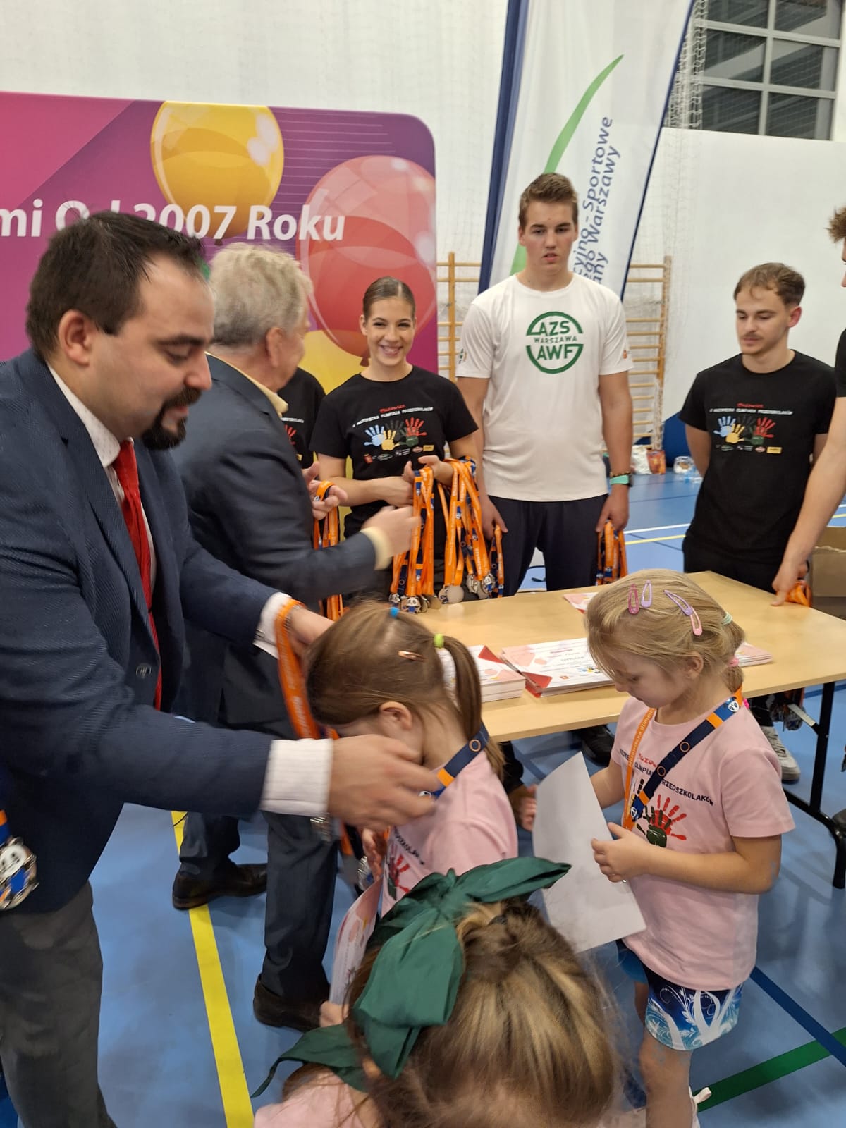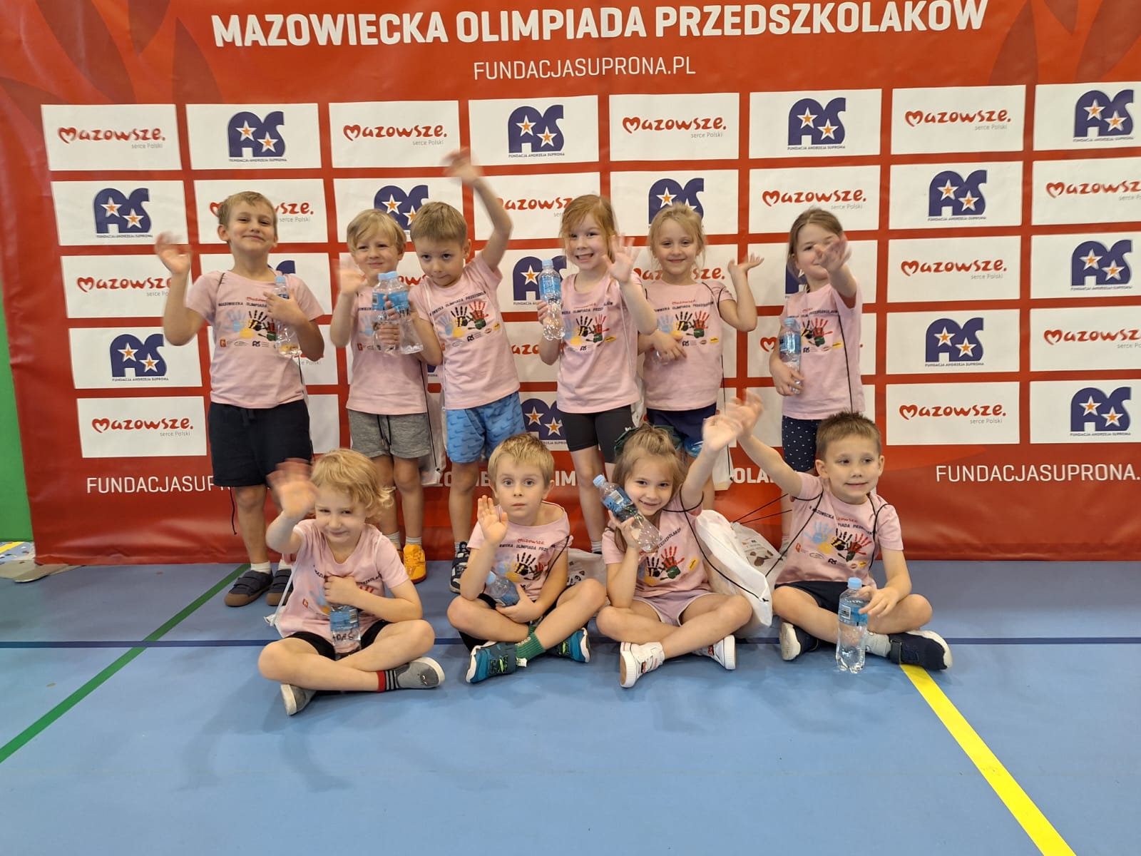 07.11. niektórzy z nas wzięli udział w Mazowieckiej Olimpiadzie Przedszkolaka - Fundacji Andrzeja Suprona w Centrum Rekreacyjno – Sportowym. Rywalizowaliśmy z innymi przedszkolami w przeciąganiu liny i biegu przez przeszkody. Było bardzo ciekawie i wesoło. Na koniec wszyscy uczestnicy otrzymali medale za udział oraz dyplomy, koszulki i drobne upominki.