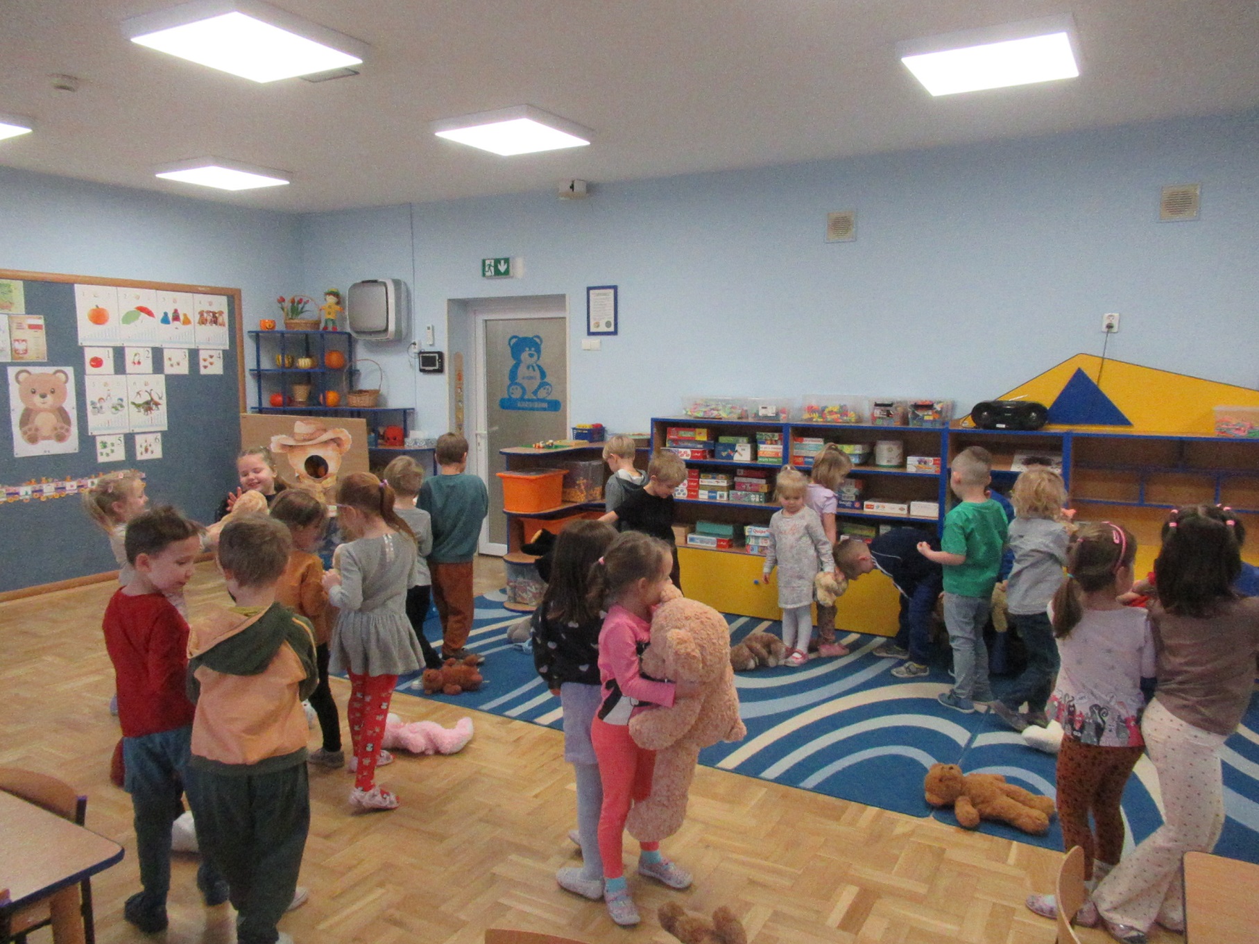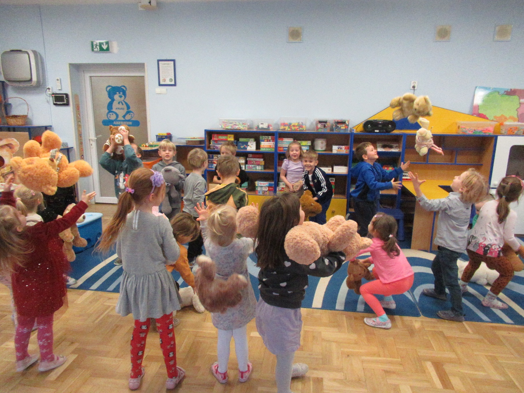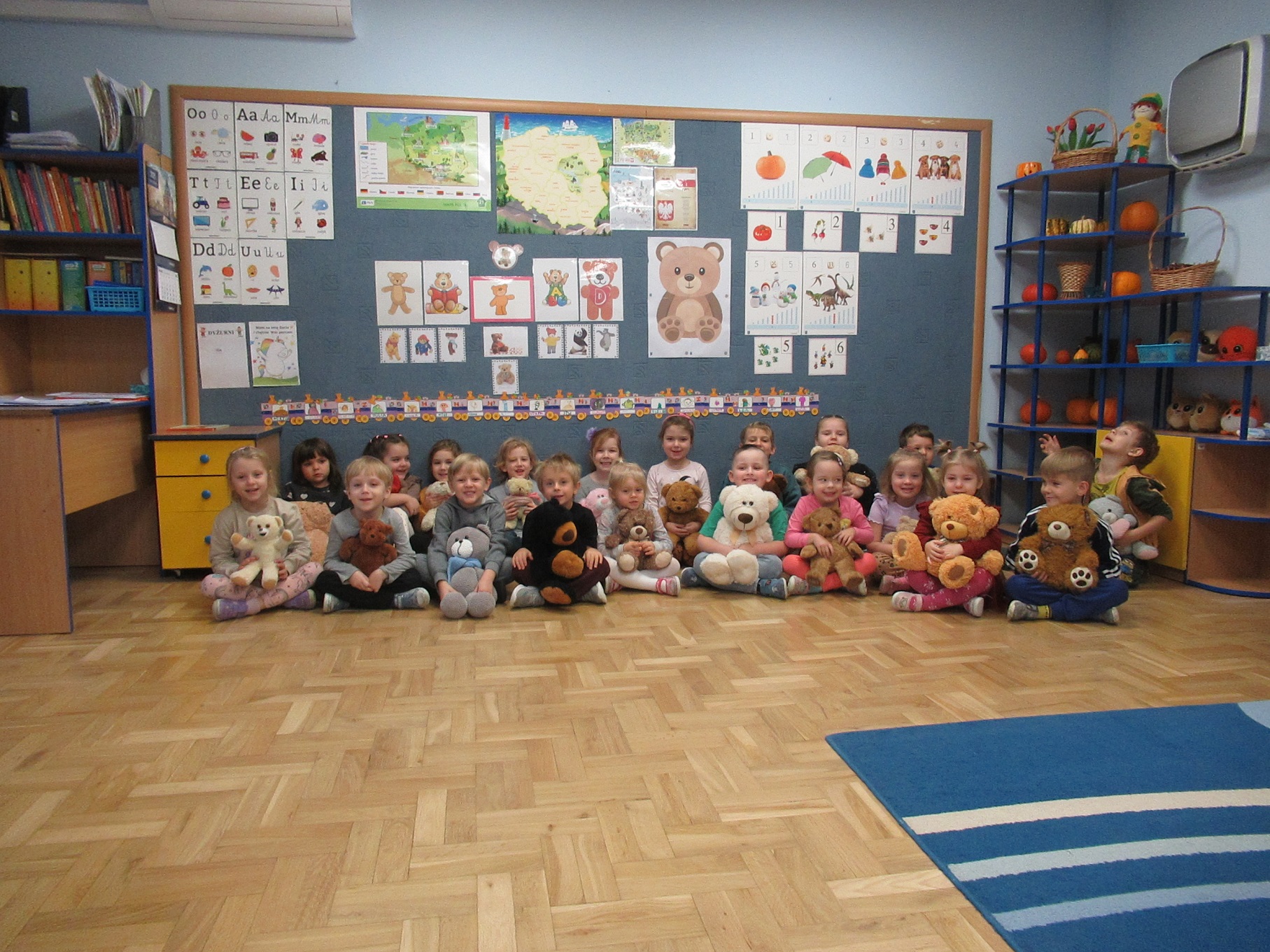 25.11. świętowaliśmy Dzień Pluszowego Misia. W tym dniu wszystkie dzieci przyszły do przedszkola ze swoim misiem. Słuchaliśmy opowiadania o misiu Felutku. Układaliśmy misia z kolorowych kółek. Nie zabrakło również zabawy muzyczno- tanecznej ze swoimi misiami. Wykonaliśmy również prace plastyczne na temat:” Mój przyjaciel Miś”, a na podwieczorek zjedliśmy ciasteczka w kształcie misia. Na koniec tego wyjątkowego dnia zrobiliśmy sobie wspólne zdjęcie z naszymi pluszowymi przyjaciółmi.