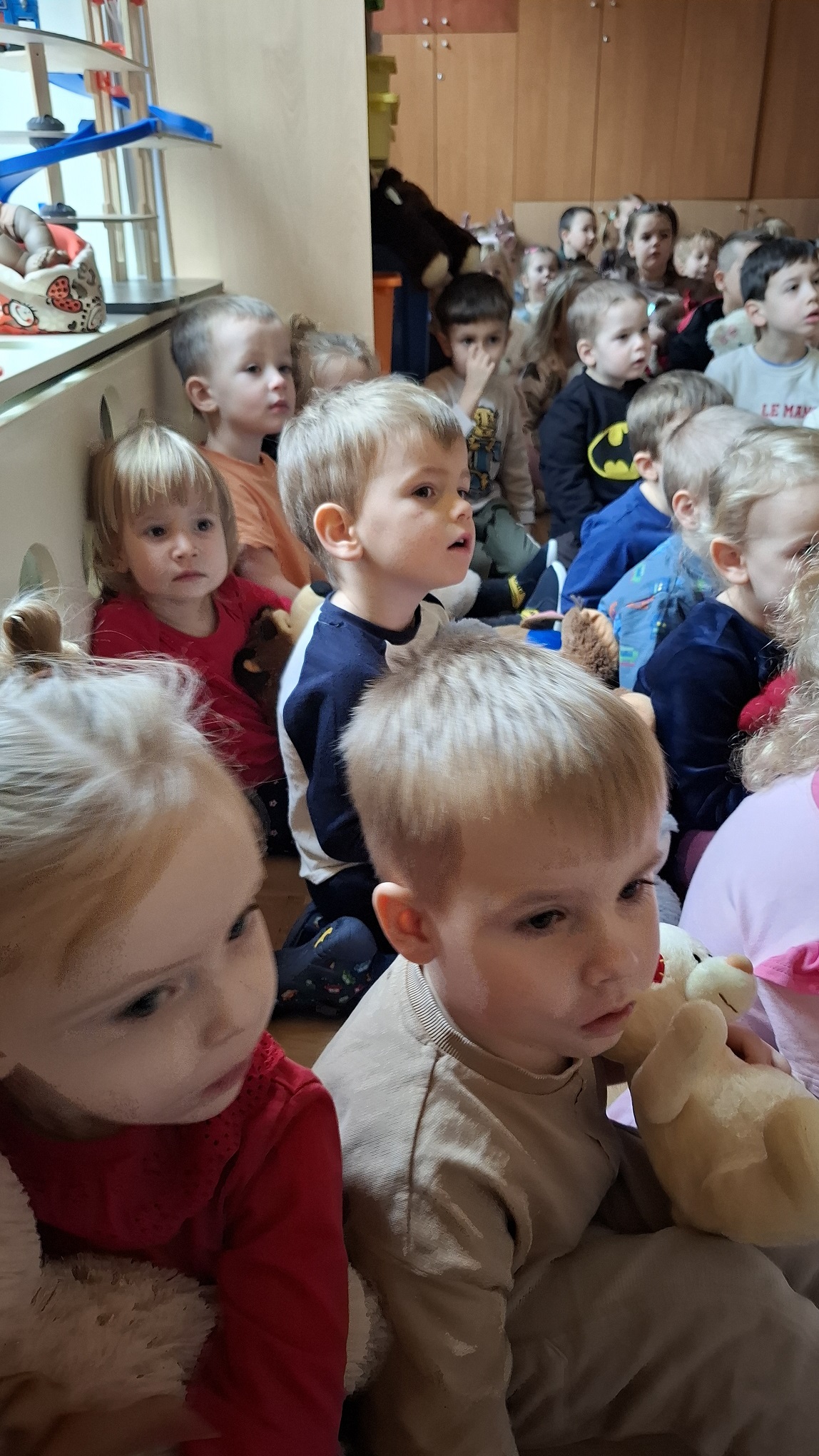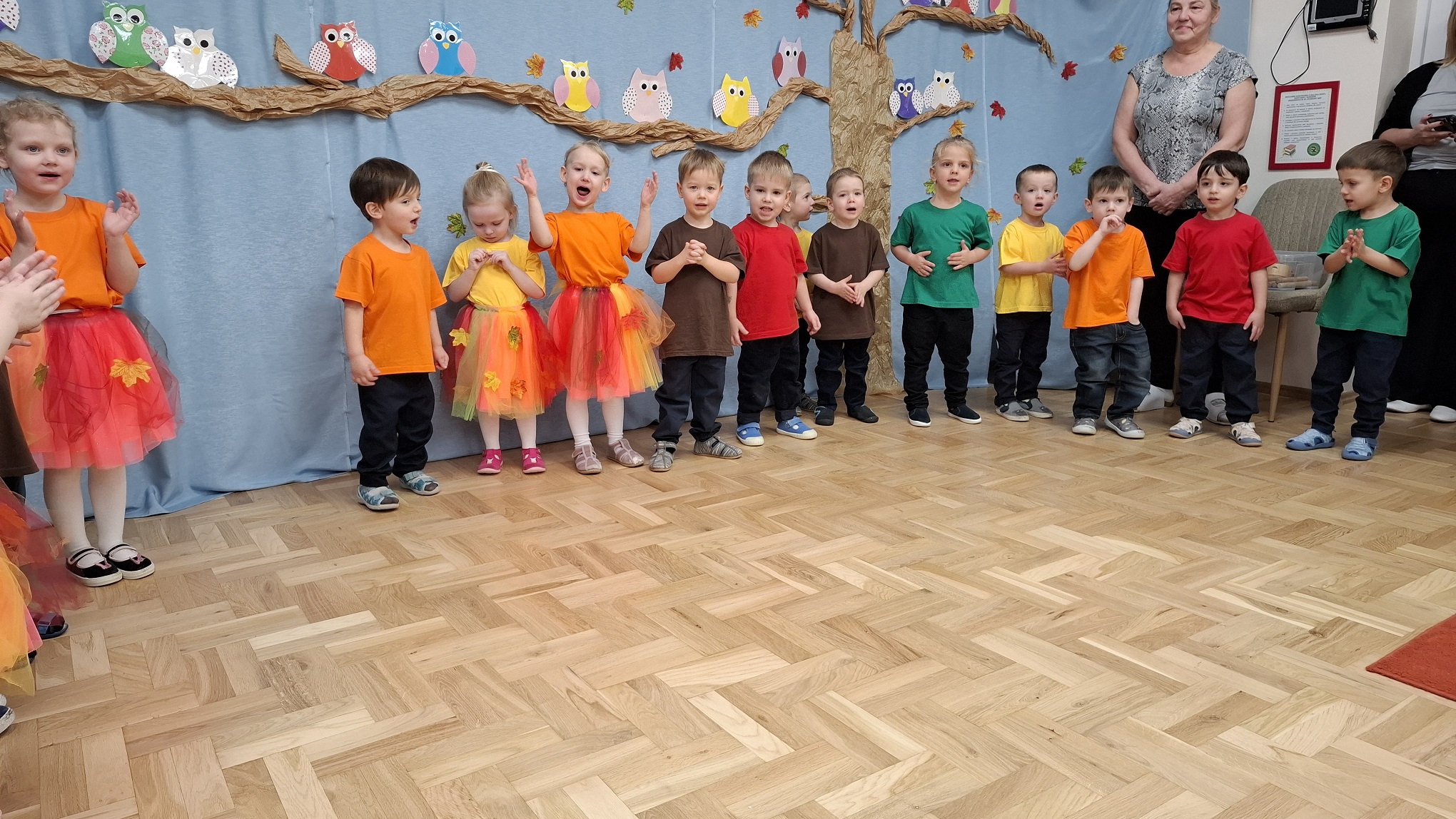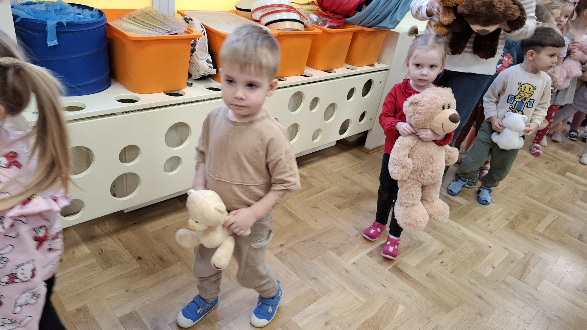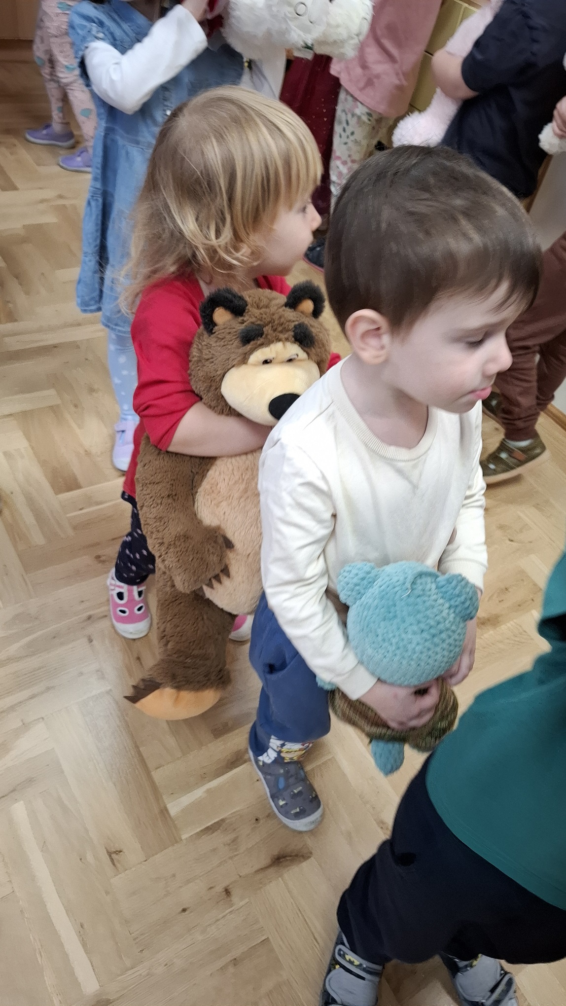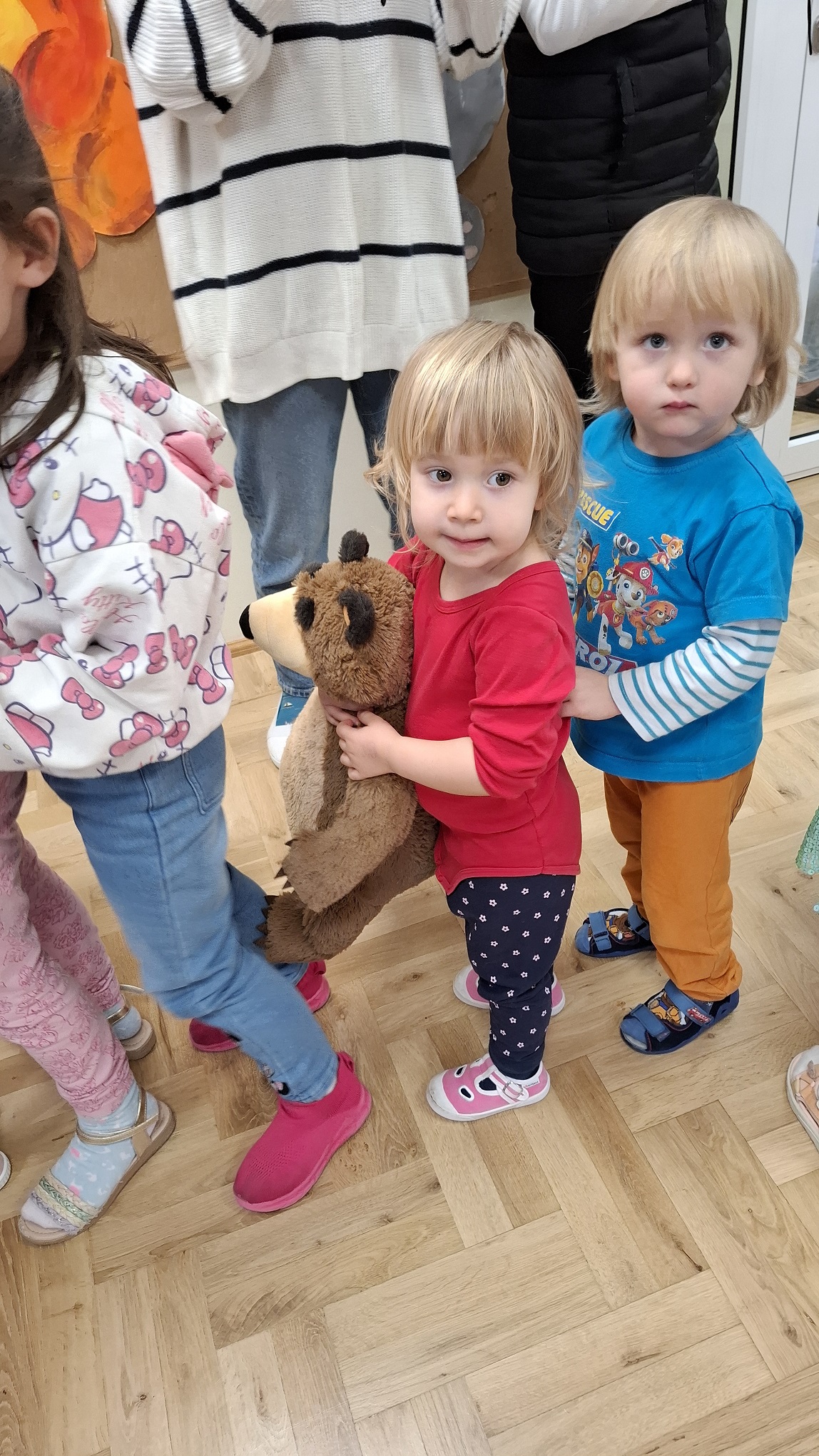 Miniony miesiąc był dla naszej grupy pełen emocji, odkryć i wspólnego świętowania. Dzieci brały udział w wielu wydarzeniach, które rozwijały ich wrażliwość, ciekawość świata oraz poczucie przynależności do wspólnoty przedszkolnej. Braliśmy udział w ogólnopolskiej akcji „Szkoła do Hymnu”, podczas której cała społeczność przedszkola o wyznaczonej godzinie wspólnie odśpiewała „Mazurek Dąbrowskiego”. Dla naszych najmłodszych było to pierwsze takie doświadczenie – pełne powagi, ale też dumy z bycia częścią większej grupy. Wiele radości dostarczyły dzieciom zajęcia ruchowe Roar Dance, podczas których mogły naśladować ruchy, tańczyć i wyrażać emocje poprzez aktywność fizyczną. To zawsze moment pełen energii, uśmiechów i spontanicznej zabawy. W tym miesiącu odbyło się również ważne wydarzenie – Pasowanie na Przedszkolaka. Była to pierwsza uroczystość przedszkolna. Przedszkolaki odważnie zaprezentowały swoje umiejętności, a następnie zostały symbolicznym aktem włączone do grona społeczności przedszkola. Wzruszenie i duma widoczne były zarówno na twarzach dzieci, jak i ich bliskich. Dużym przeżyciem było spotkanie z teatrem. Teatr Falco zaprezentował dzieciom przedstawienie „Cyrk Sznurkowy” – pełne humoru, muzyki i ciekawych bohaterów. Dzieci z zaciekawieniem śledziły perypetie postaci, rozwijając przy tym swoją uwagę, wyobraźnię i wrażliwość estetyczną. W listopadzie świętowaliśmy też radosny Dzień Pluszowego Misia. Dzieci przyniosły do przedszkola swoje ukochane misie. Wspólne zabawy, taniec z pluszakami oraz misiowe zadania sprawiły, że ten dzień był wyjątkowo ciepły i pełen uśmiechu. Na koniec miesiąca odbyły się zajęcia Labolo – „Układ Słoneczny”. Podczas warsztatów dzieci dowiedziały się wielu ciekawych informacji o planetach . Eksperymenty i zabawy sensoryczne pozwoliły im odkryć, jak fascynujący może być świat grawitacji. To była świetna okazja do rozwijania ciekawości poznawczej oraz uważnego słuchania.