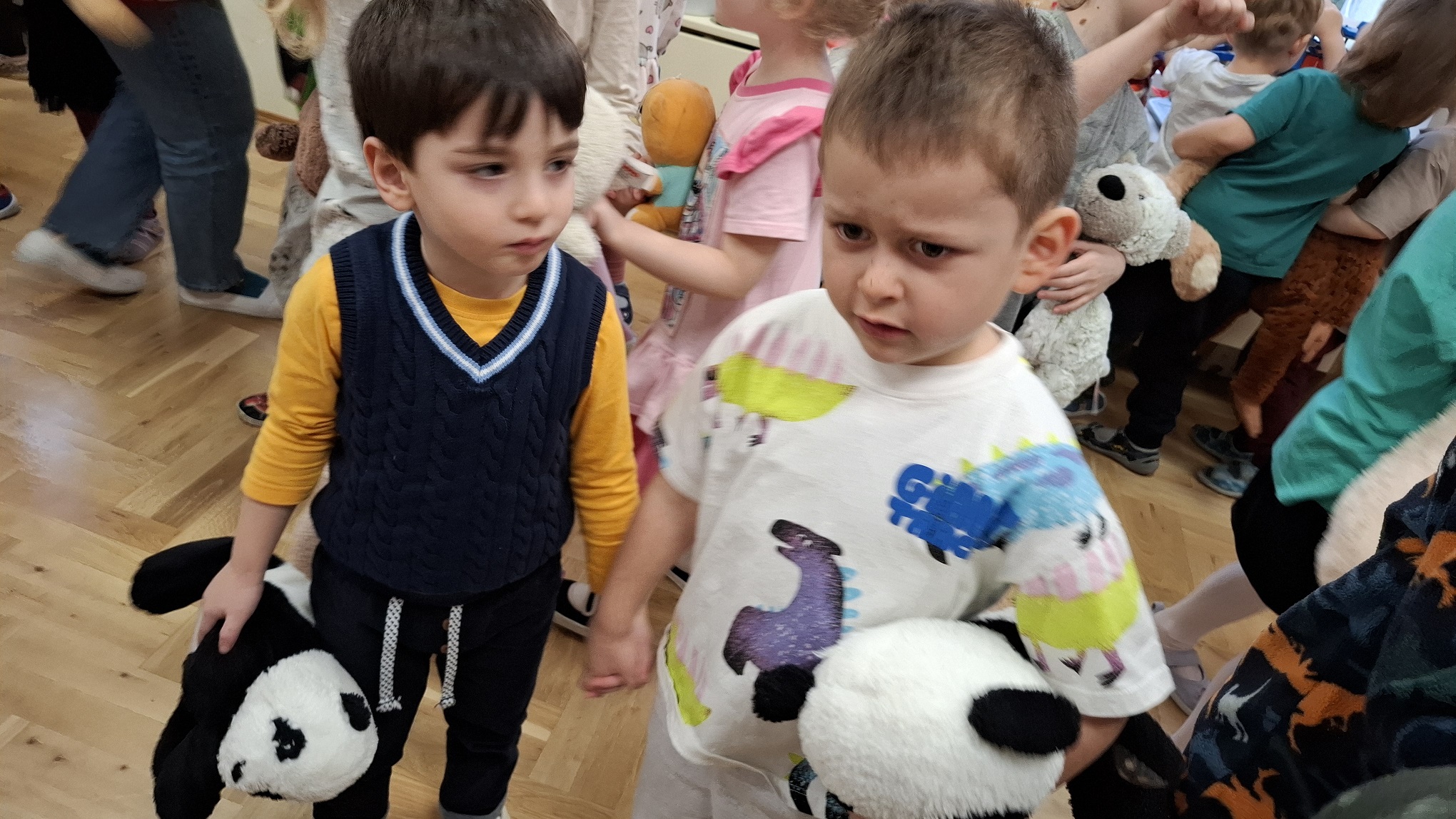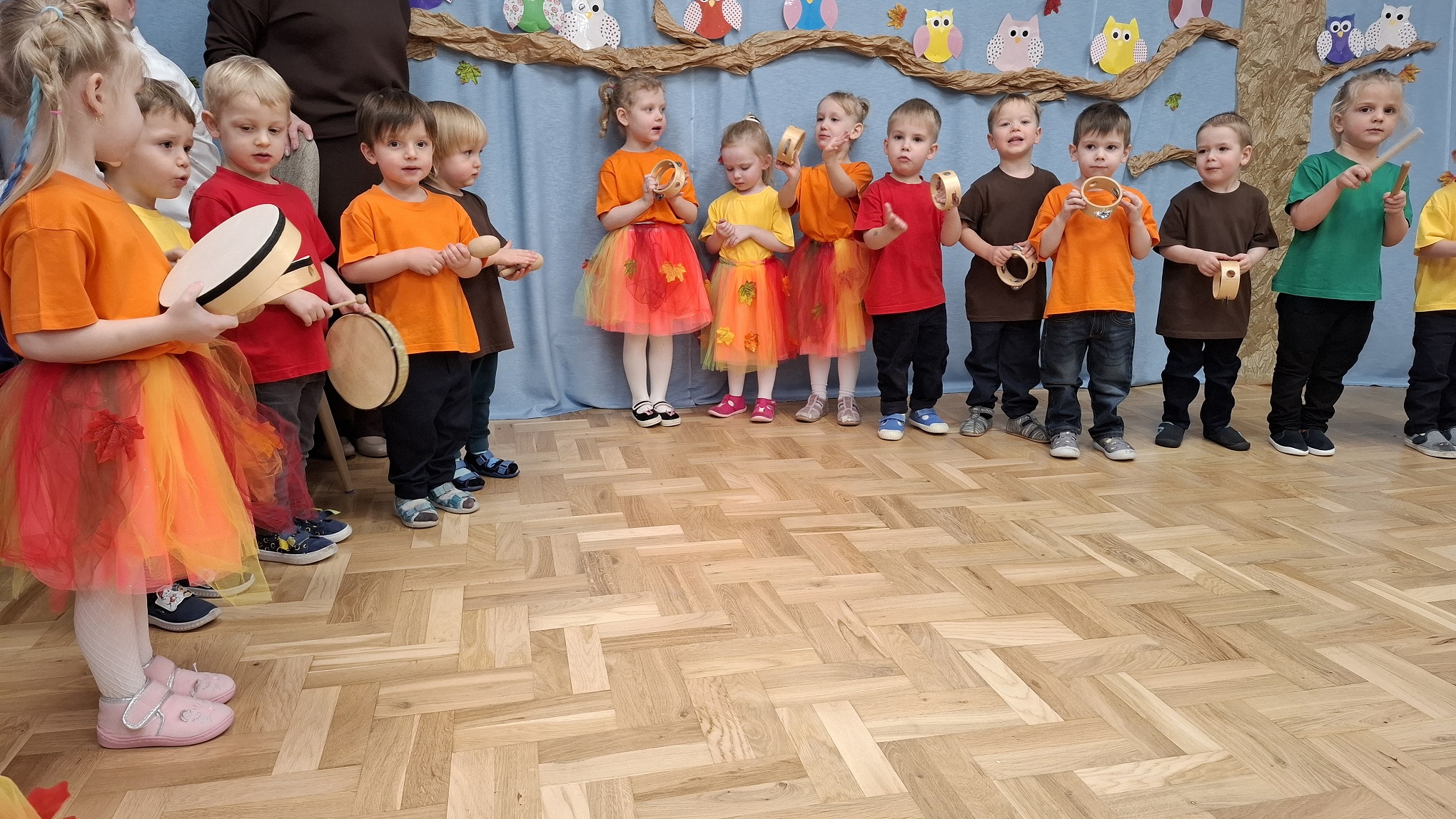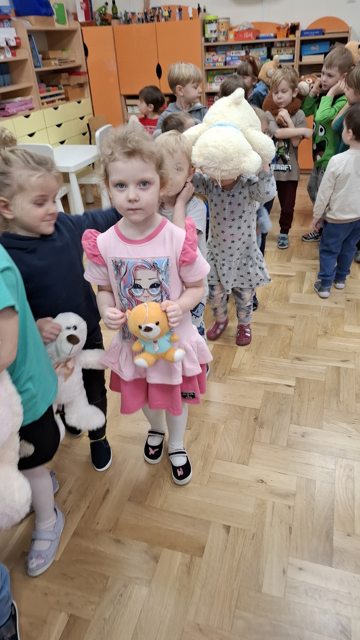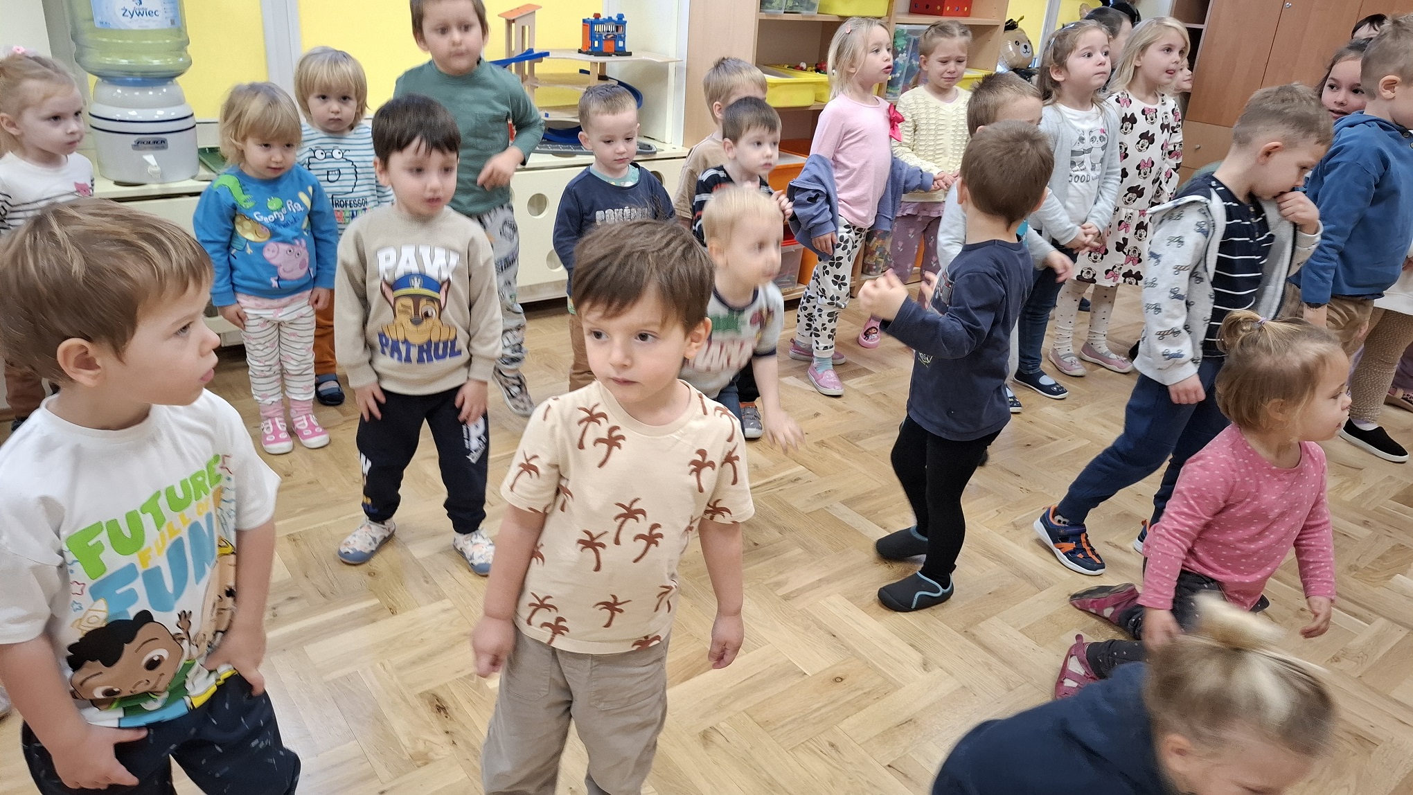 Miniony miesiąc był dla naszej grupy pełen emocji, odkryć i wspólnego świętowania. Dzieci brały udział w wielu wydarzeniach, które rozwijały ich wrażliwość, ciekawość świata oraz poczucie przynależności do wspólnoty przedszkolnej. Braliśmy udział w ogólnopolskiej akcji „Szkoła do Hymnu”, podczas której cała społeczność przedszkola o wyznaczonej godzinie wspólnie odśpiewała „Mazurek Dąbrowskiego”. Dla naszych najmłodszych było to pierwsze takie doświadczenie – pełne powagi, ale też dumy z bycia częścią większej grupy. Wiele radości dostarczyły dzieciom zajęcia ruchowe Roar Dance, podczas których mogły naśladować ruchy, tańczyć i wyrażać emocje poprzez aktywność fizyczną. To zawsze moment pełen energii, uśmiechów i spontanicznej zabawy. W tym miesiącu odbyło się również ważne wydarzenie – Pasowanie na Przedszkolaka. Była to pierwsza uroczystość przedszkolna. Przedszkolaki odważnie zaprezentowały swoje umiejętności, a następnie zostały symbolicznym aktem włączone do grona społeczności przedszkola. Wzruszenie i duma widoczne były zarówno na twarzach dzieci, jak i ich bliskich. Dużym przeżyciem było spotkanie z teatrem. Teatr Falco zaprezentował dzieciom przedstawienie „Cyrk Sznurkowy” – pełne humoru, muzyki i ciekawych bohaterów. Dzieci z zaciekawieniem śledziły perypetie postaci, rozwijając przy tym swoją uwagę, wyobraźnię i wrażliwość estetyczną. W listopadzie świętowaliśmy też radosny Dzień Pluszowego Misia. Dzieci przyniosły do przedszkola swoje ukochane misie. Wspólne zabawy, taniec z pluszakami oraz misiowe zadania sprawiły, że ten dzień był wyjątkowo ciepły i pełen uśmiechu. Na koniec miesiąca odbyły się zajęcia Labolo – „Układ Słoneczny”. Podczas warsztatów dzieci dowiedziały się wielu ciekawych informacji o planetach . Eksperymenty i zabawy sensoryczne pozwoliły im odkryć, jak fascynujący może być świat grawitacji. To była świetna okazja do rozwijania ciekawości poznawczej oraz uważnego słuchania.