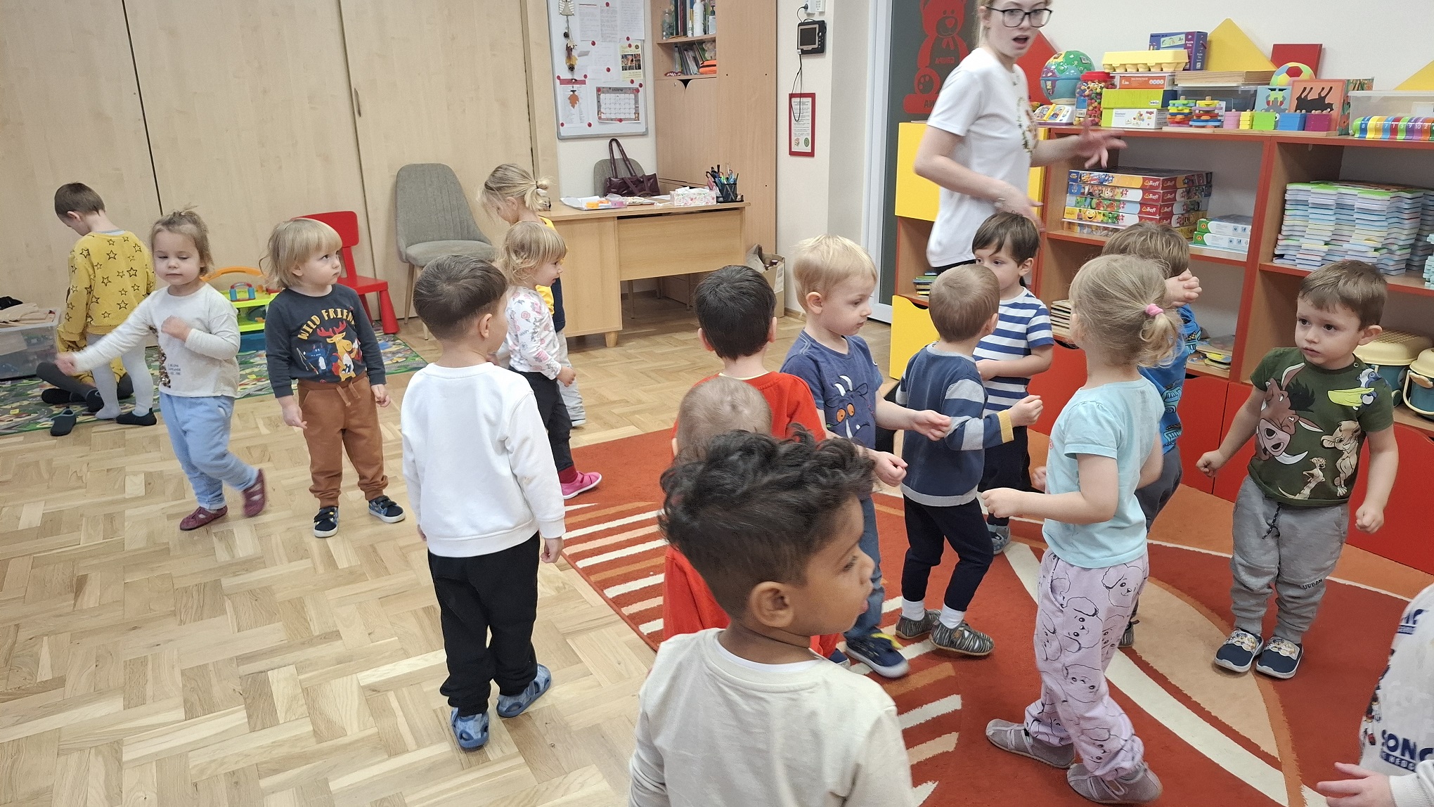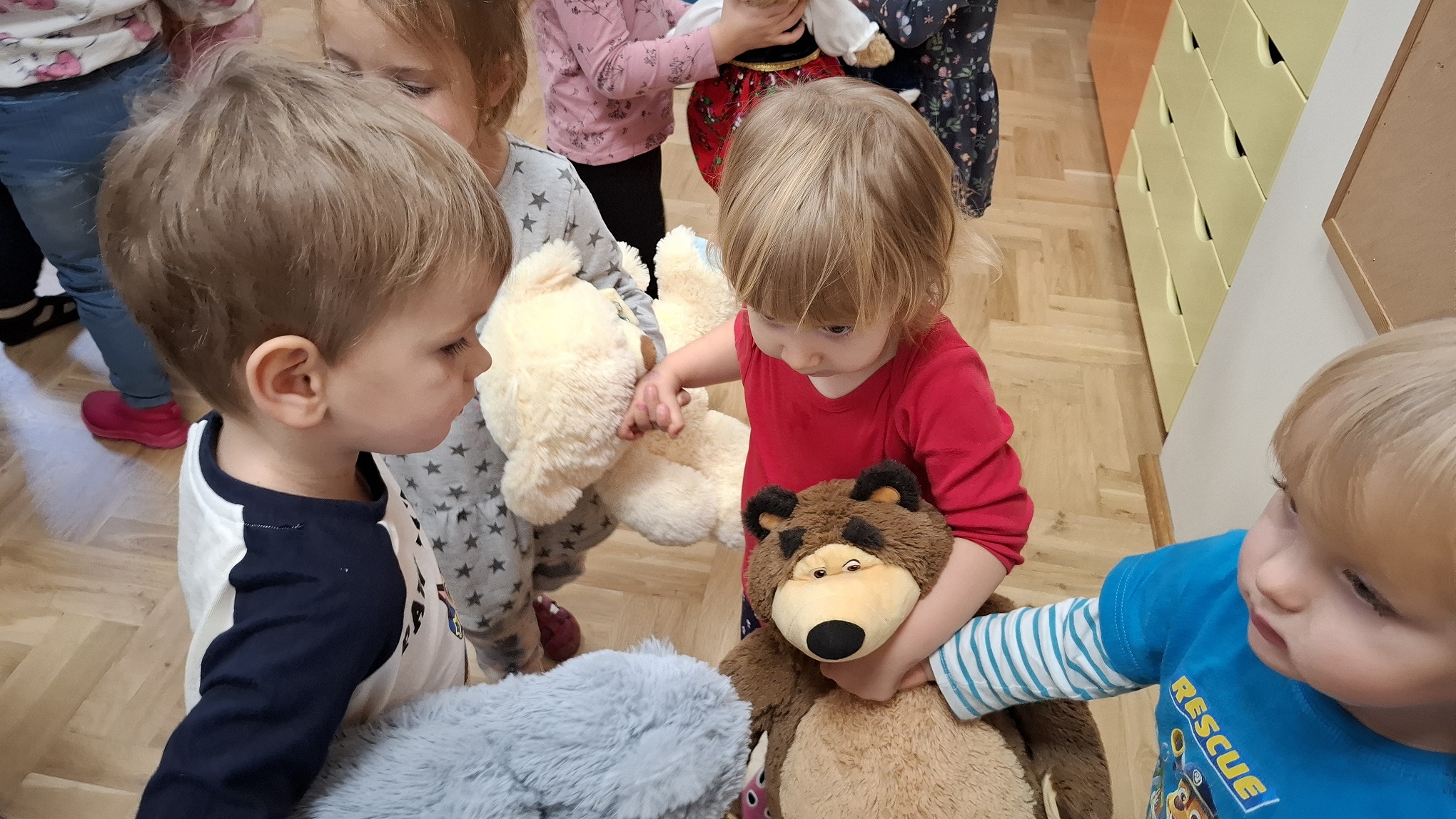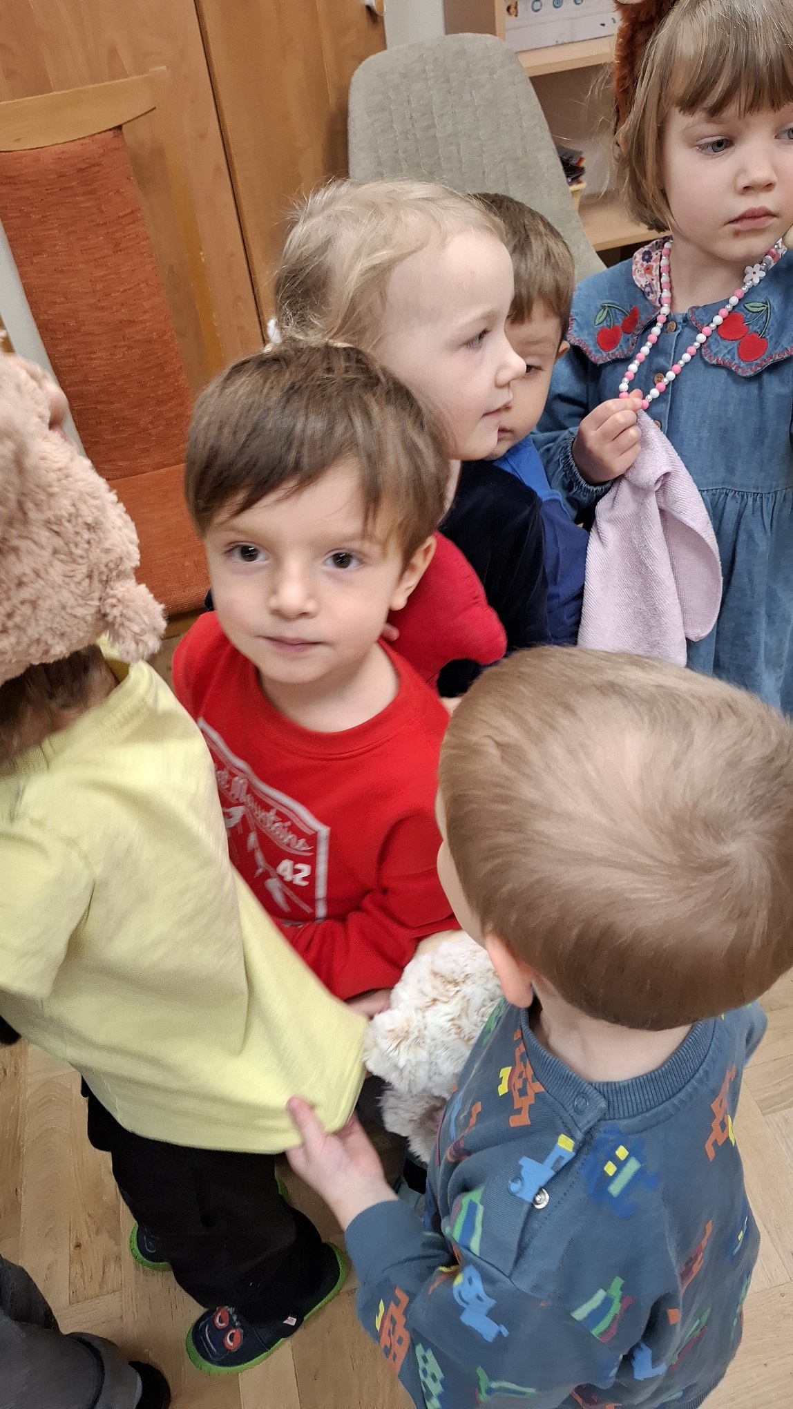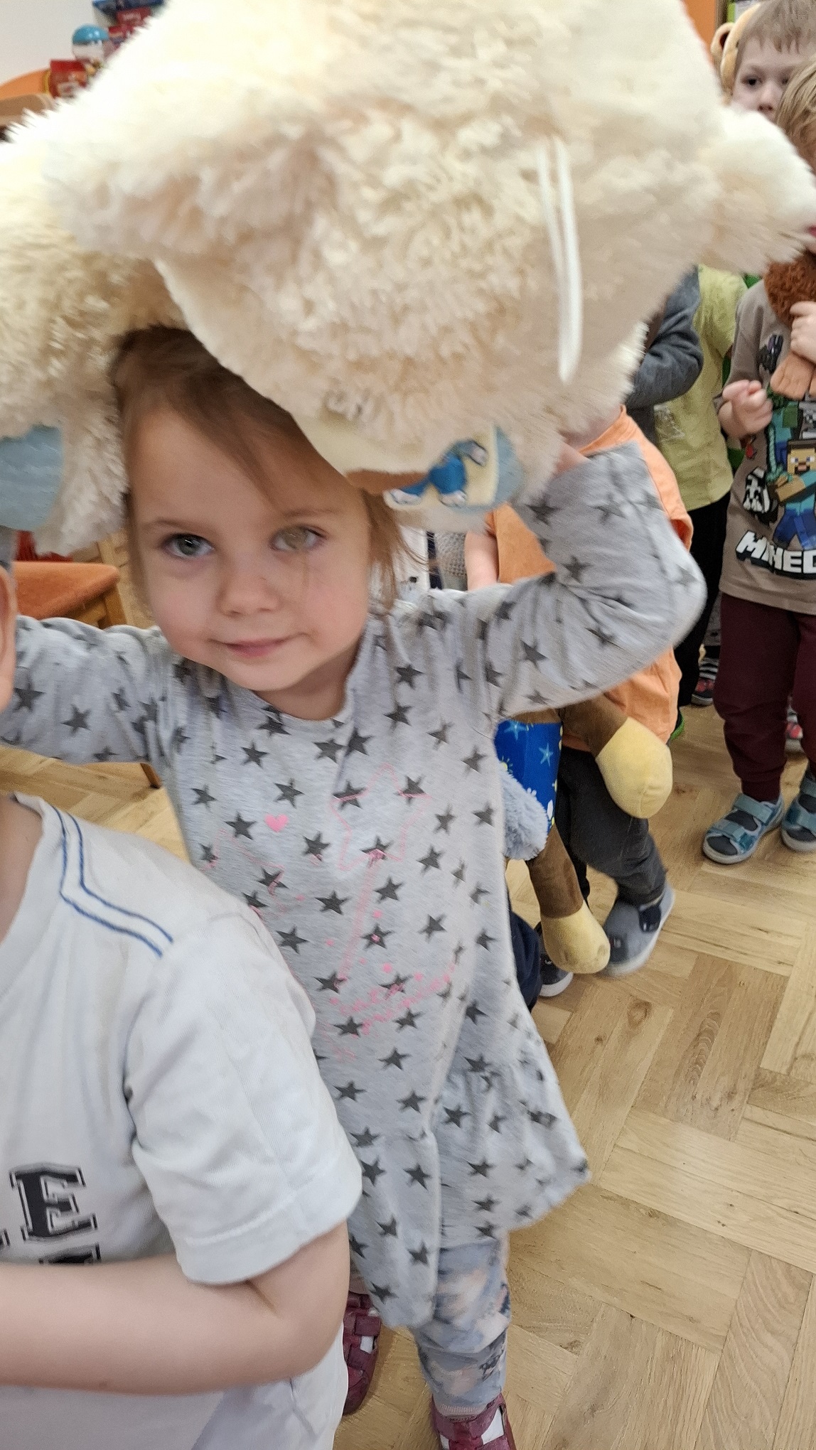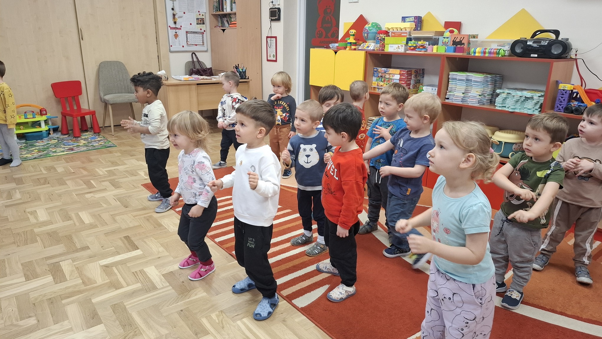 Miniony miesiąc był dla naszej grupy pełen emocji, odkryć i wspólnego świętowania. Dzieci brały udział w wielu wydarzeniach, które rozwijały ich wrażliwość, ciekawość świata oraz poczucie przynależności do wspólnoty przedszkolnej. Braliśmy udział w ogólnopolskiej akcji „Szkoła do Hymnu”, podczas której cała społeczność przedszkola o wyznaczonej godzinie wspólnie odśpiewała „Mazurek Dąbrowskiego”. Dla naszych najmłodszych było to pierwsze takie doświadczenie – pełne powagi, ale też dumy z bycia częścią większej grupy. Wiele radości dostarczyły dzieciom zajęcia ruchowe Roar Dance, podczas których mogły naśladować ruchy, tańczyć i wyrażać emocje poprzez aktywność fizyczną. To zawsze moment pełen energii, uśmiechów i spontanicznej zabawy. W tym miesiącu odbyło się również ważne wydarzenie – Pasowanie na Przedszkolaka. Była to pierwsza uroczystość przedszkolna. Przedszkolaki odważnie zaprezentowały swoje umiejętności, a następnie zostały symbolicznym aktem włączone do grona społeczności przedszkola. Wzruszenie i duma widoczne były zarówno na twarzach dzieci, jak i ich bliskich. Dużym przeżyciem było spotkanie z teatrem. Teatr Falco zaprezentował dzieciom przedstawienie „Cyrk Sznurkowy” – pełne humoru, muzyki i ciekawych bohaterów. Dzieci z zaciekawieniem śledziły perypetie postaci, rozwijając przy tym swoją uwagę, wyobraźnię i wrażliwość estetyczną. W listopadzie świętowaliśmy też radosny Dzień Pluszowego Misia. Dzieci przyniosły do przedszkola swoje ukochane misie. Wspólne zabawy, taniec z pluszakami oraz misiowe zadania sprawiły, że ten dzień był wyjątkowo ciepły i pełen uśmiechu. Na koniec miesiąca odbyły się zajęcia Labolo – „Układ Słoneczny”. Podczas warsztatów dzieci dowiedziały się wielu ciekawych informacji o planetach . Eksperymenty i zabawy sensoryczne pozwoliły im odkryć, jak fascynujący może być świat grawitacji. To była świetna okazja do rozwijania ciekawości poznawczej oraz uważnego słuchania.
