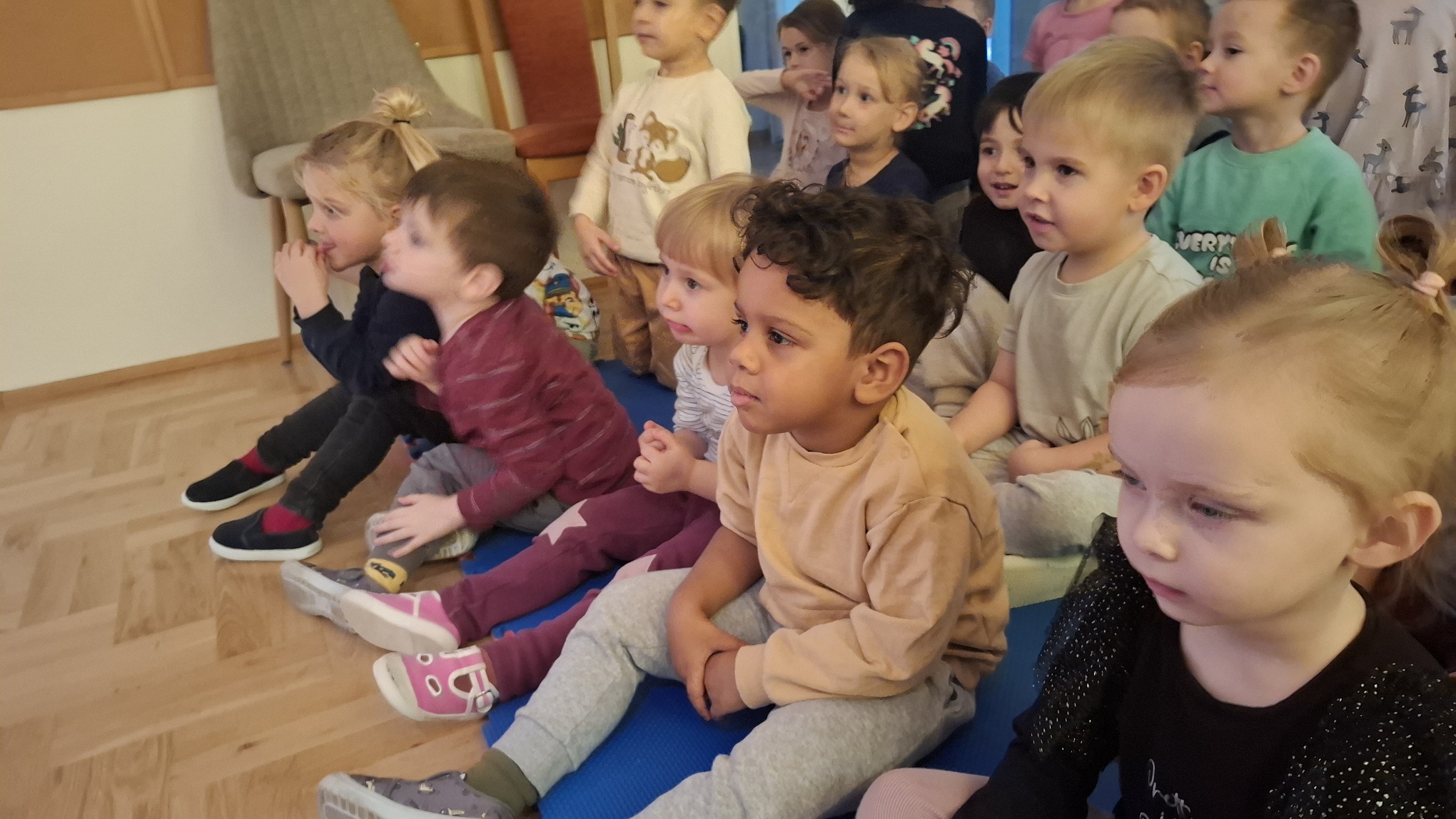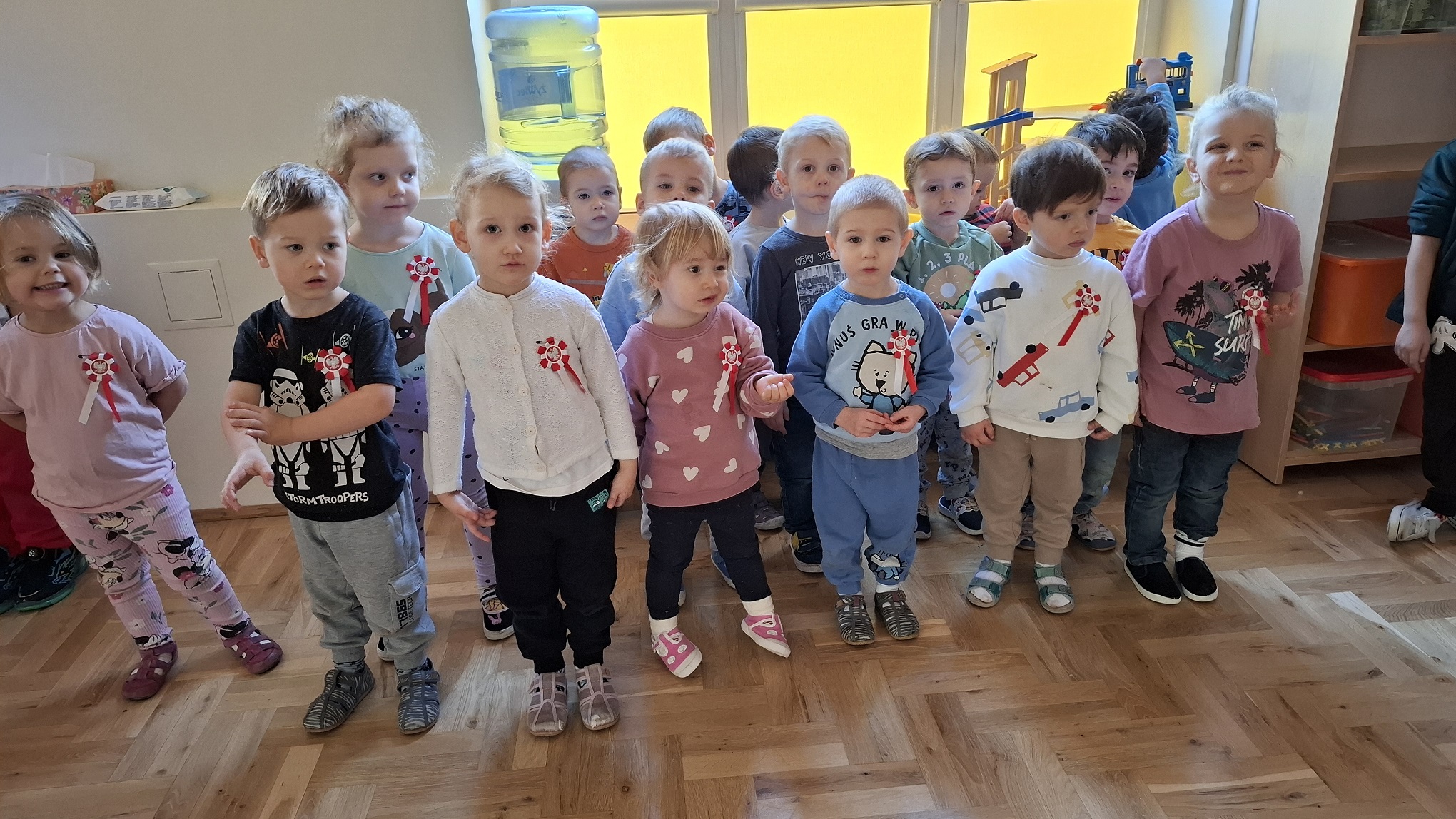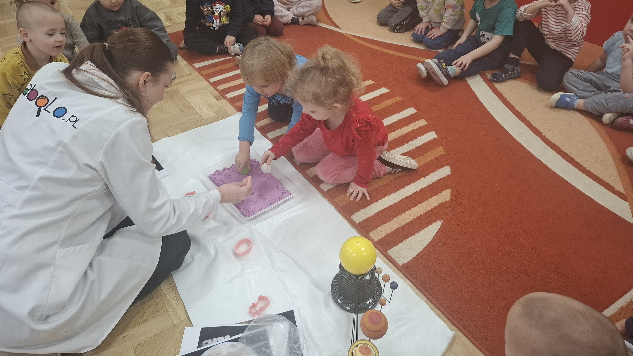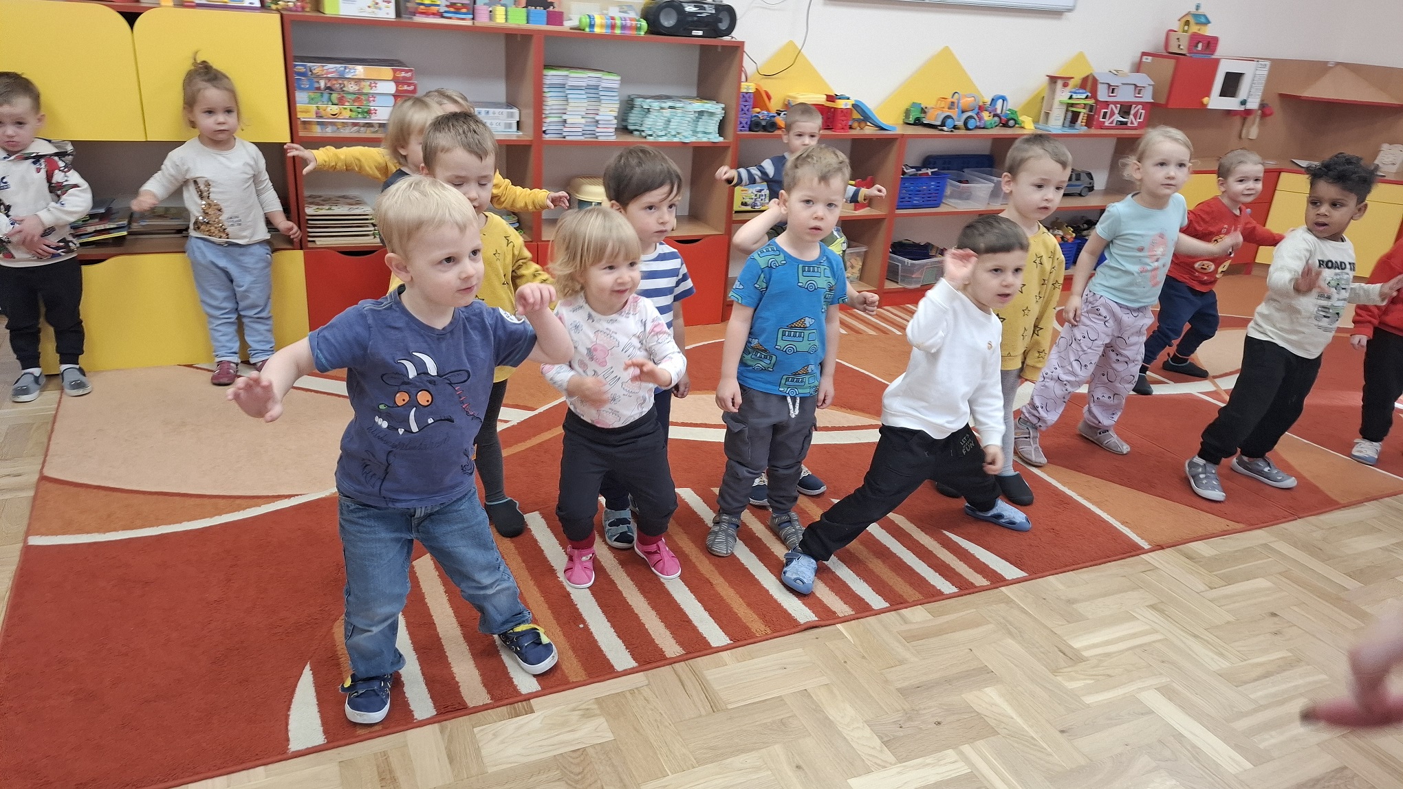Miniony miesiąc był dla naszej grupy pełen emocji, odkryć i wspólnego świętowania. Dzieci brały udział w wielu wydarzeniach, które rozwijały ich wrażliwość, ciekawość świata oraz poczucie przynależności do wspólnoty przedszkolnej. Braliśmy udział w ogólnopolskiej akcji „Szkoła do Hymnu”, podczas której cała społeczność przedszkola o wyznaczonej godzinie wspólnie odśpiewała „Mazurek Dąbrowskiego”. Dla naszych najmłodszych było to pierwsze takie doświadczenie – pełne powagi, ale też dumy z bycia częścią większej grupy. Wiele radości dostarczyły dzieciom zajęcia ruchowe Roar Dance, podczas których mogły naśladować ruchy, tańczyć i wyrażać emocje poprzez aktywność fizyczną. To zawsze moment pełen energii, uśmiechów i spontanicznej zabawy. W tym miesiącu odbyło się również ważne wydarzenie – Pasowanie na Przedszkolaka. Była to pierwsza uroczystość przedszkolna. Przedszkolaki odważnie zaprezentowały swoje umiejętności, a następnie zostały symbolicznym aktem włączone do grona społeczności przedszkola. Wzruszenie i duma widoczne były zarówno na twarzach dzieci, jak i ich bliskich. Dużym przeżyciem było spotkanie z teatrem. Teatr Falco zaprezentował dzieciom przedstawienie „Cyrk Sznurkowy” – pełne humoru, muzyki i ciekawych bohaterów. Dzieci z zaciekawieniem śledziły perypetie postaci, rozwijając przy tym swoją uwagę, wyobraźnię i wrażliwość estetyczną. W listopadzie świętowaliśmy też radosny Dzień Pluszowego Misia. Dzieci przyniosły do przedszkola swoje ukochane misie. Wspólne zabawy, taniec z pluszakami oraz misiowe zadania sprawiły, że ten dzień był wyjątkowo ciepły i pełen uśmiechu. Na koniec miesiąca odbyły się zajęcia Labolo – „Układ Słoneczny”. Podczas warsztatów dzieci dowiedziały się wielu ciekawych informacji o planetach . Eksperymenty i zabawy sensoryczne pozwoliły im odkryć, jak fascynujący może być świat grawitacji. To była świetna okazja do rozwijania ciekawości poznawczej oraz uważnego słuchania.