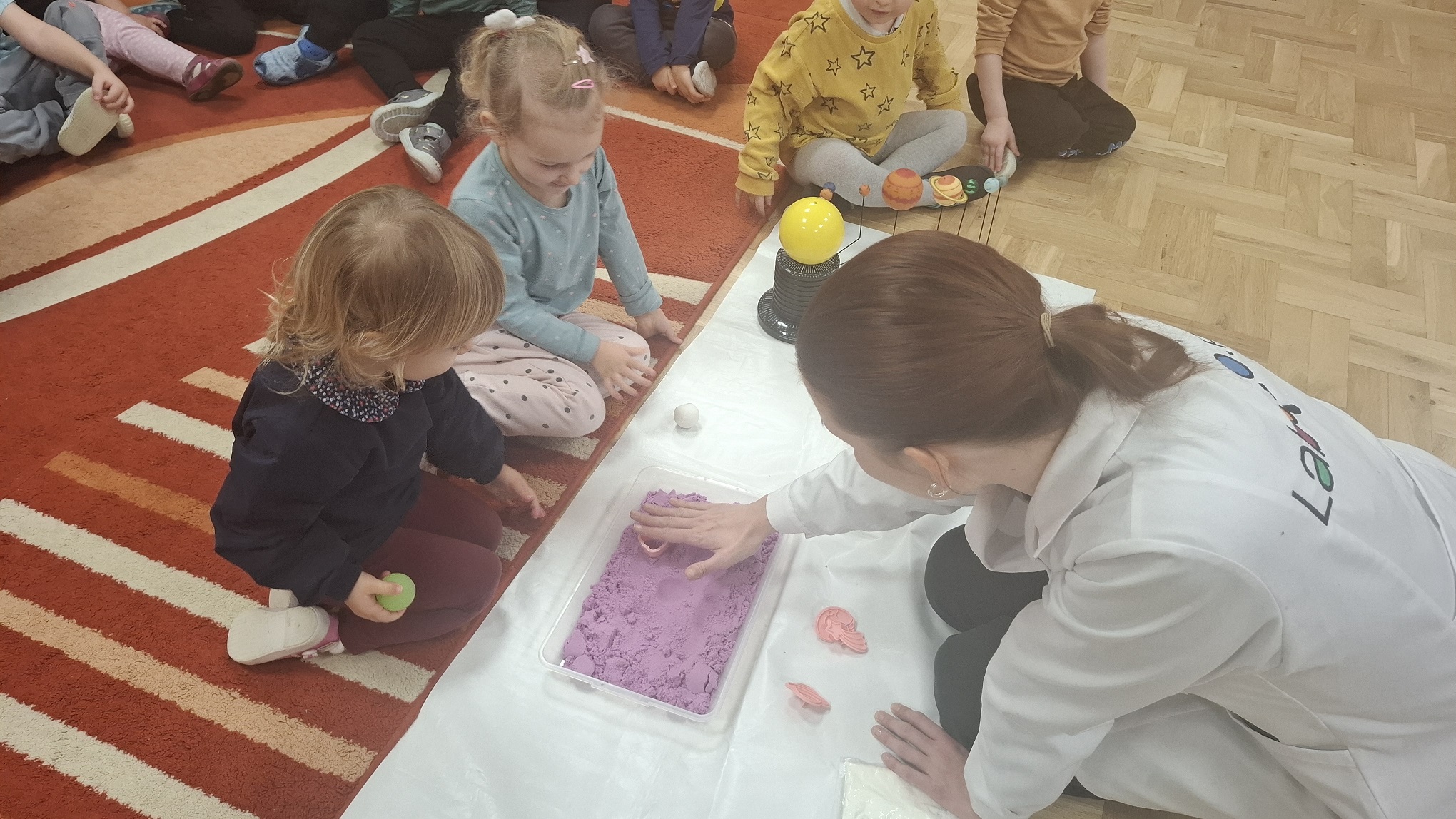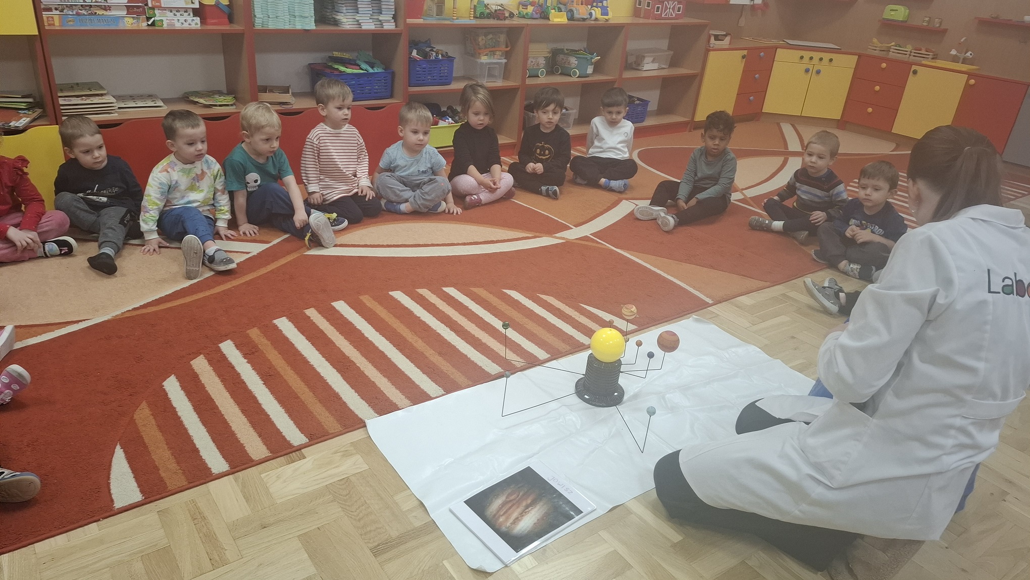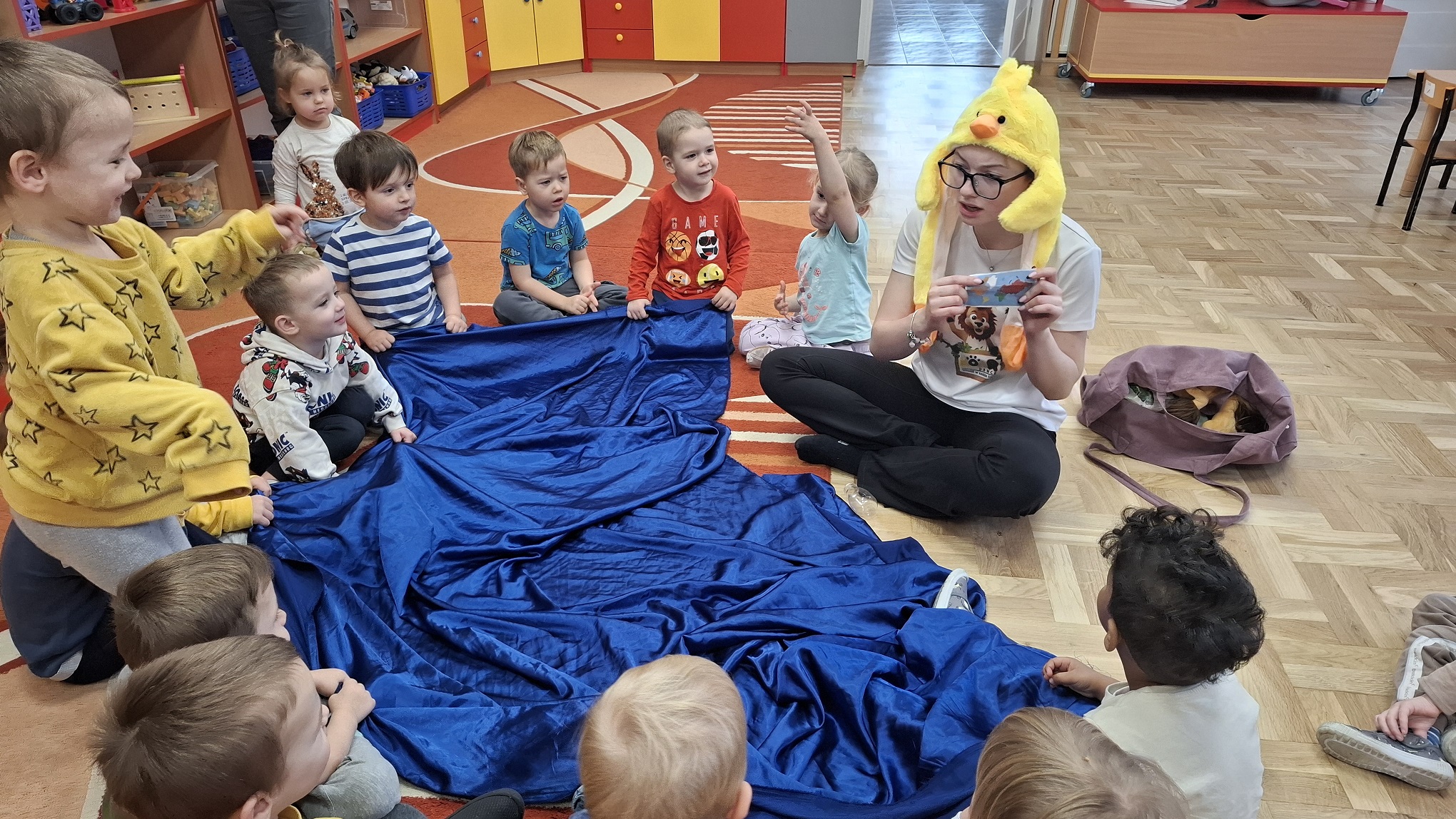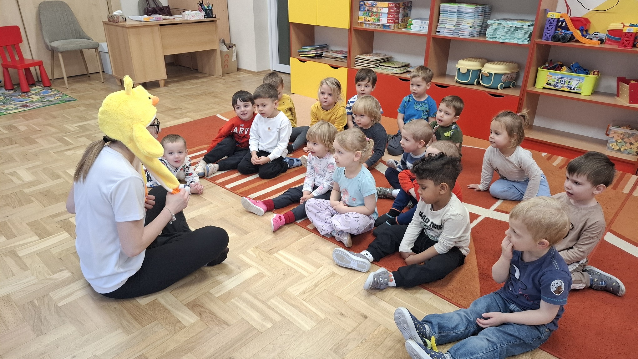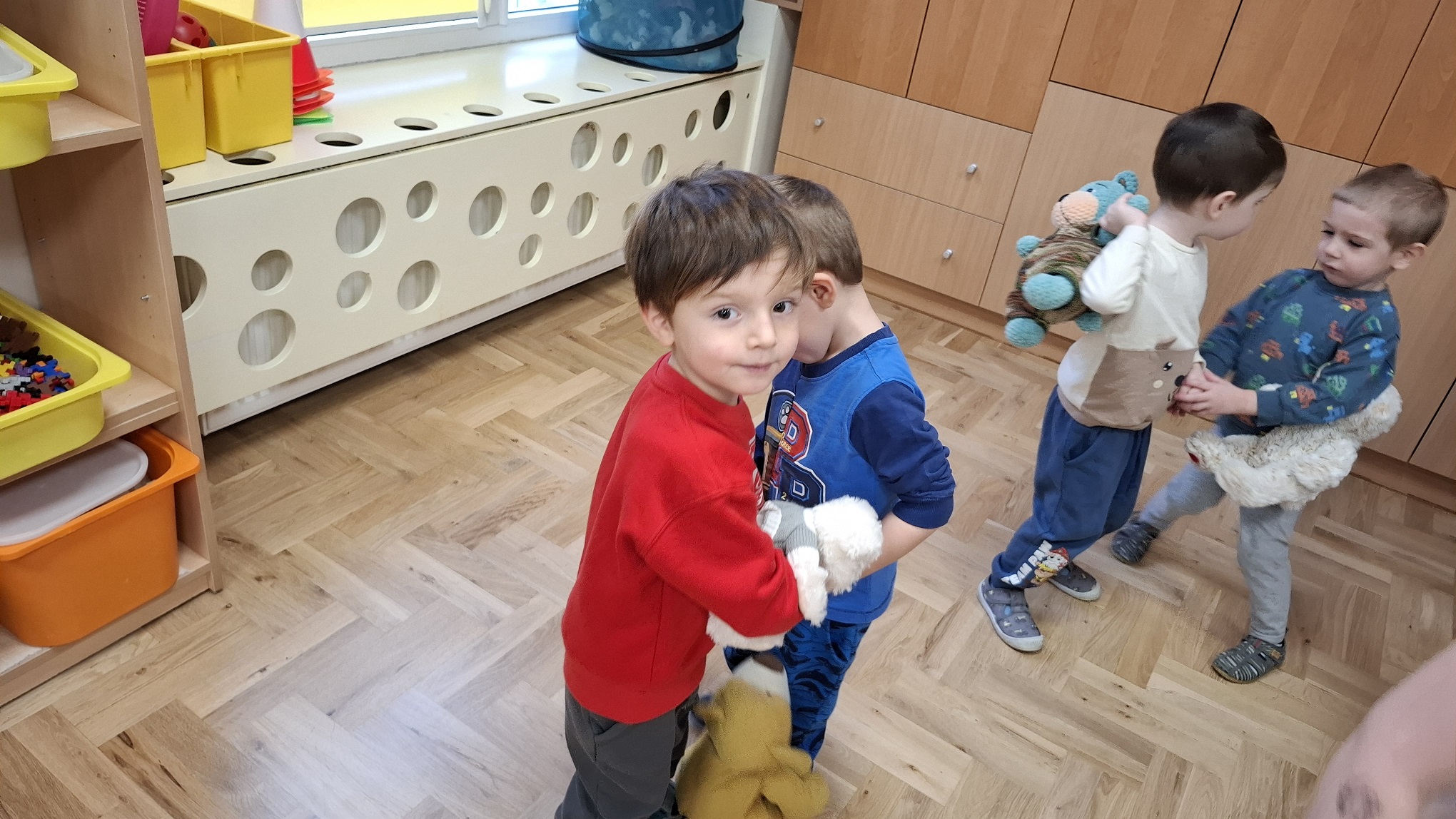 Miniony miesiąc był dla naszej grupy pełen emocji, odkryć i wspólnego świętowania. Dzieci brały udział w wielu wydarzeniach, które rozwijały ich wrażliwość, ciekawość świata oraz poczucie przynależności do wspólnoty przedszkolnej. Braliśmy udział w ogólnopolskiej akcji „Szkoła do Hymnu”, podczas której cała społeczność przedszkola o wyznaczonej godzinie wspólnie odśpiewała „Mazurek Dąbrowskiego”. Dla naszych najmłodszych było to pierwsze takie doświadczenie – pełne powagi, ale też dumy z bycia częścią większej grupy. Wiele radości dostarczyły dzieciom zajęcia ruchowe Roar Dance, podczas których mogły naśladować ruchy, tańczyć i wyrażać emocje poprzez aktywność fizyczną. To zawsze moment pełen energii, uśmiechów i spontanicznej zabawy. W tym miesiącu odbyło się również ważne wydarzenie – Pasowanie na Przedszkolaka. Była to pierwsza uroczystość przedszkolna. Przedszkolaki odważnie zaprezentowały swoje umiejętności, a następnie zostały symbolicznym aktem włączone do grona społeczności przedszkola. Wzruszenie i duma widoczne były zarówno na twarzach dzieci, jak i ich bliskich. Dużym przeżyciem było spotkanie z teatrem. Teatr Falco zaprezentował dzieciom przedstawienie „Cyrk Sznurkowy” – pełne humoru, muzyki i ciekawych bohaterów. Dzieci z zaciekawieniem śledziły perypetie postaci, rozwijając przy tym swoją uwagę, wyobraźnię i wrażliwość estetyczną. W listopadzie świętowaliśmy też radosny Dzień Pluszowego Misia. Dzieci przyniosły do przedszkola swoje ukochane misie. Wspólne zabawy, taniec z pluszakami oraz misiowe zadania sprawiły, że ten dzień był wyjątkowo ciepły i pełen uśmiechu. Na koniec miesiąca odbyły się zajęcia Labolo – „Układ Słoneczny”. Podczas warsztatów dzieci dowiedziały się wielu ciekawych informacji o planetach . Eksperymenty i zabawy sensoryczne pozwoliły im odkryć, jak fascynujący może być świat grawitacji. To była świetna okazja do rozwijania ciekawości poznawczej oraz uważnego słuchania.