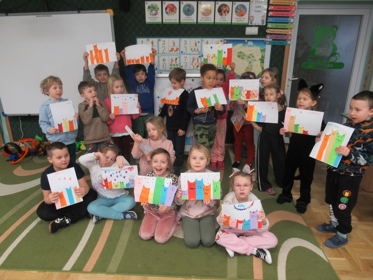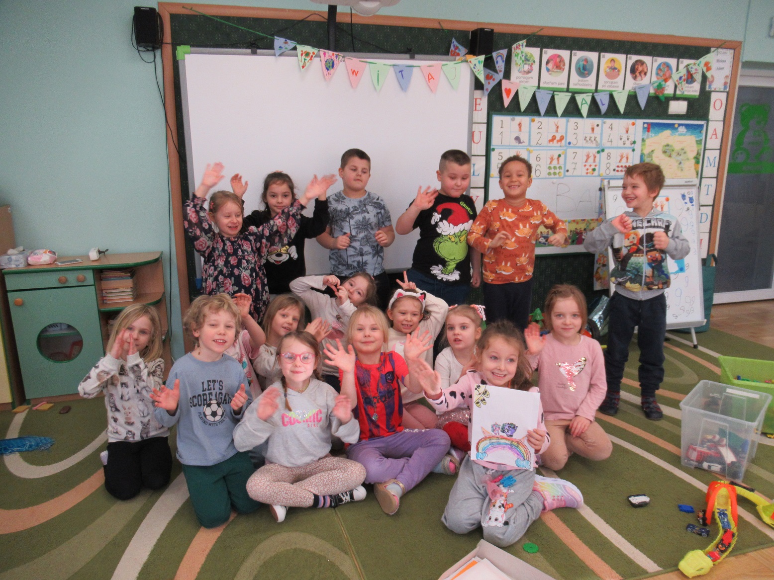 Poznaliśmy kolejne litery i cyfry. Odczytywaliśmy proste wyrazy i zdania. Ćwiczyliśmy liczenie, dodawaliśmy i odejmowaliśmy, kodowaliśmy, graliśmy w gry, budowaliśmy z klocków, słuchaliśmy ciekawych opowiadań i wierszy, śpiewaliśmy i dobrze się bawiliśmy.