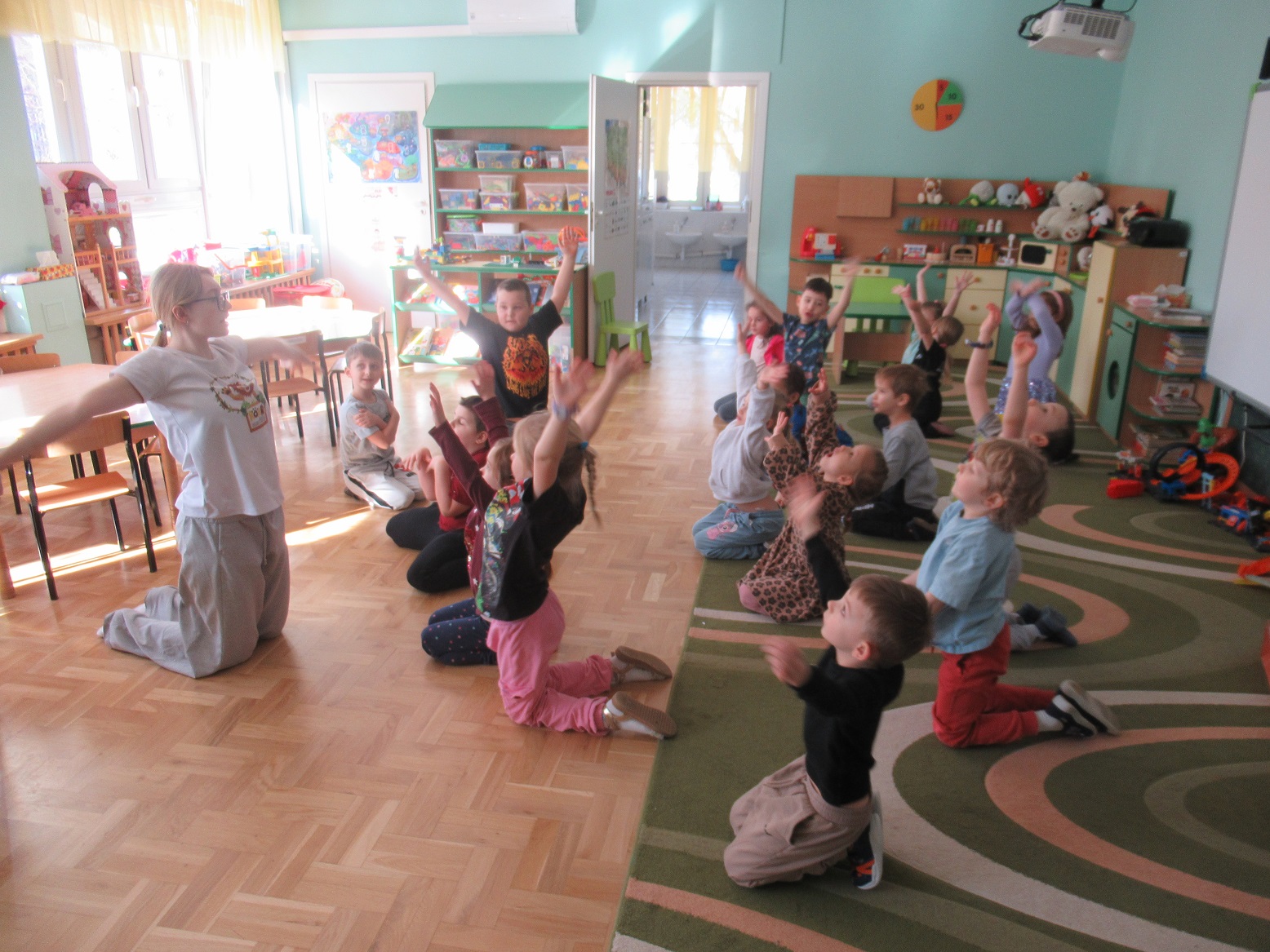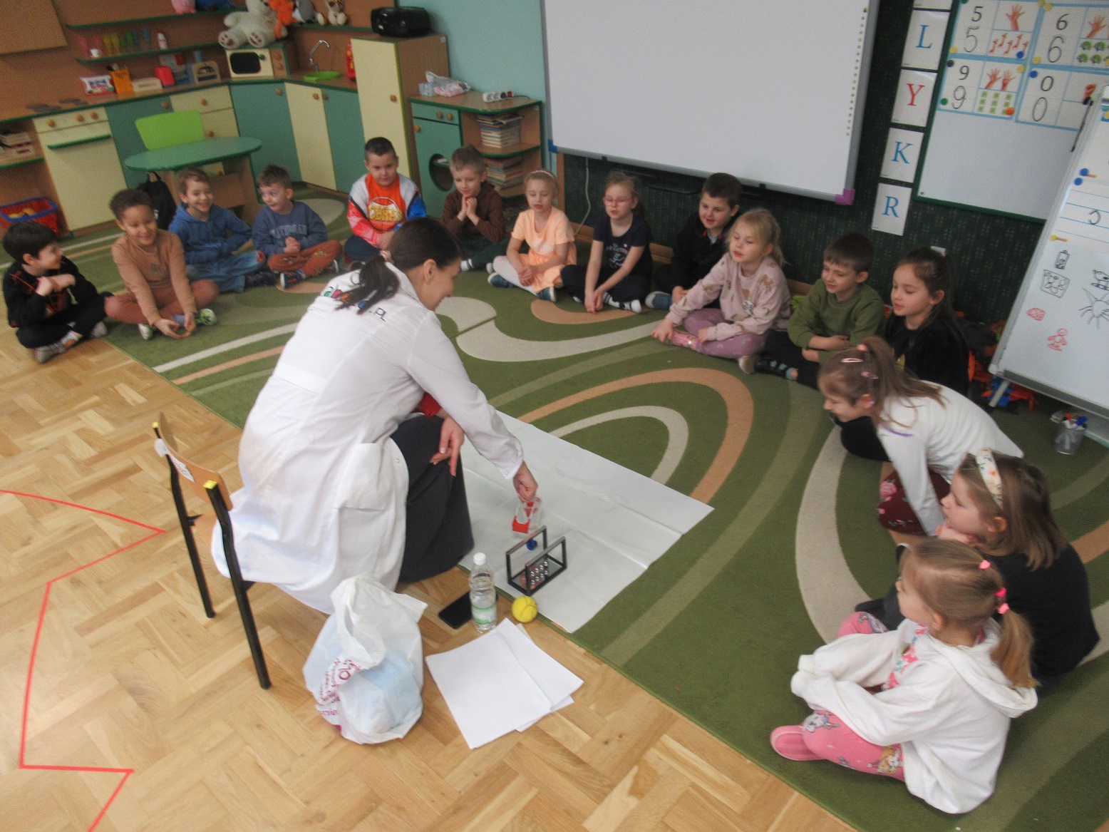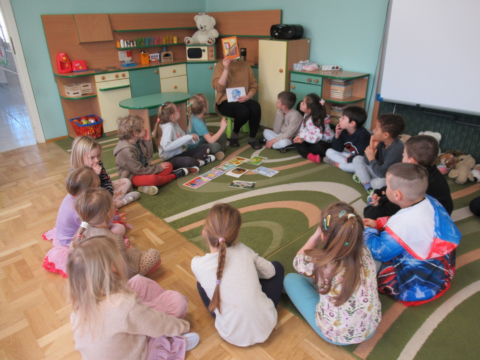 Uczestniczyliśmy w warsztatach z pierwszej pomocy „Akademia Małego Ratownika”. Odwiedził nas ratownik, który opowiadał dzieciom o różnych zagrożeniach oraz pokazywał, jak udzielać pierwszej pomocy. Dzieci ćwiczyły na swoich przytulankach. To były bardzo ciekawe i pouczające zajęcia.