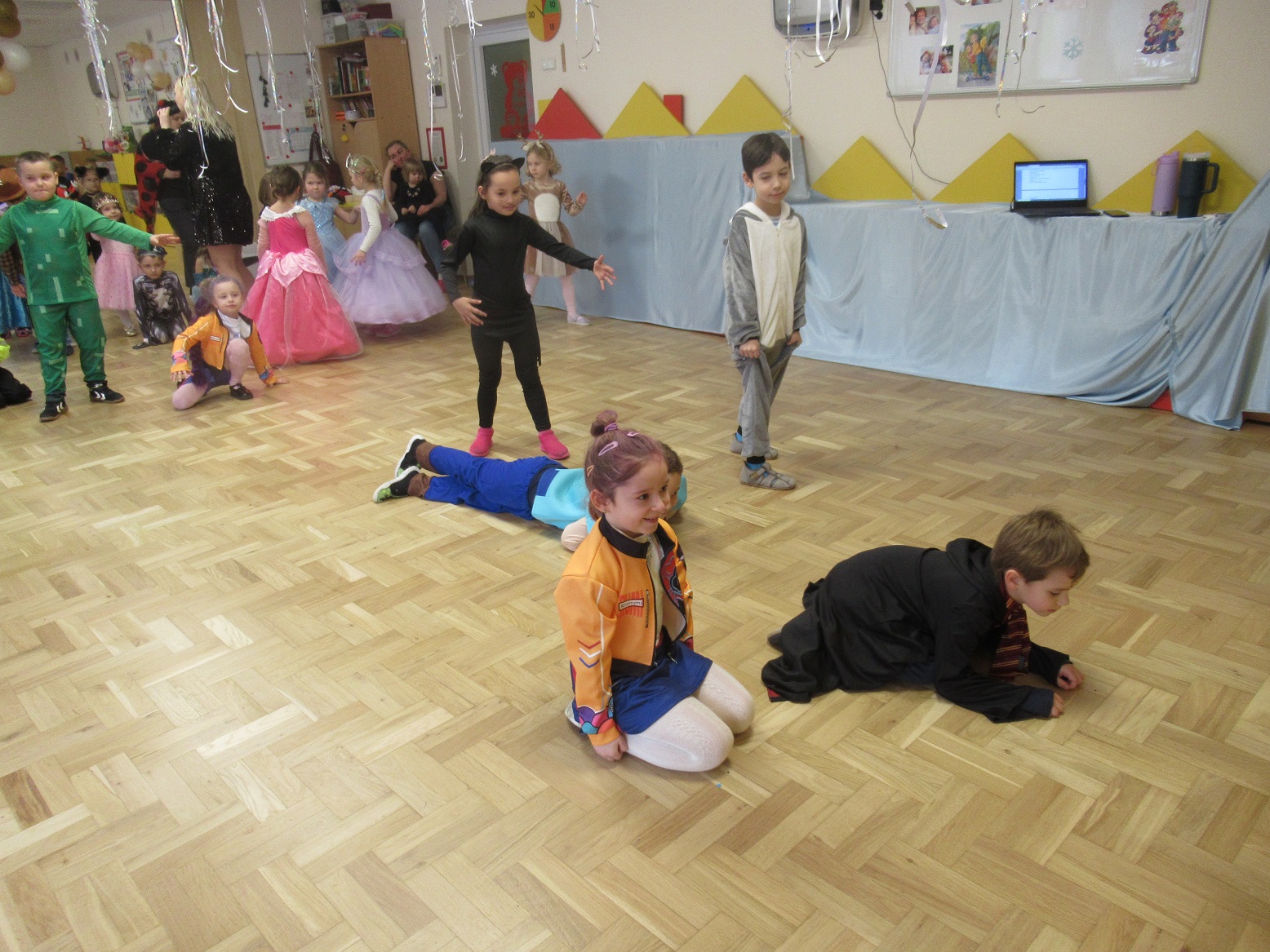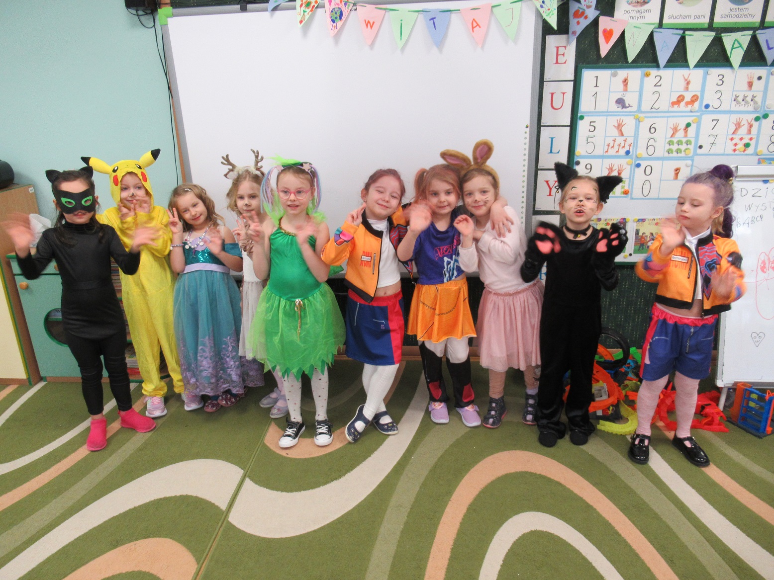Kończy się luty. Czas karnawału i wesołej zabawy. W przedszkolu odbył się bal karnawałowy. Dzieci przebrały się za różne postaci. Były tańce i świetna zabawa.