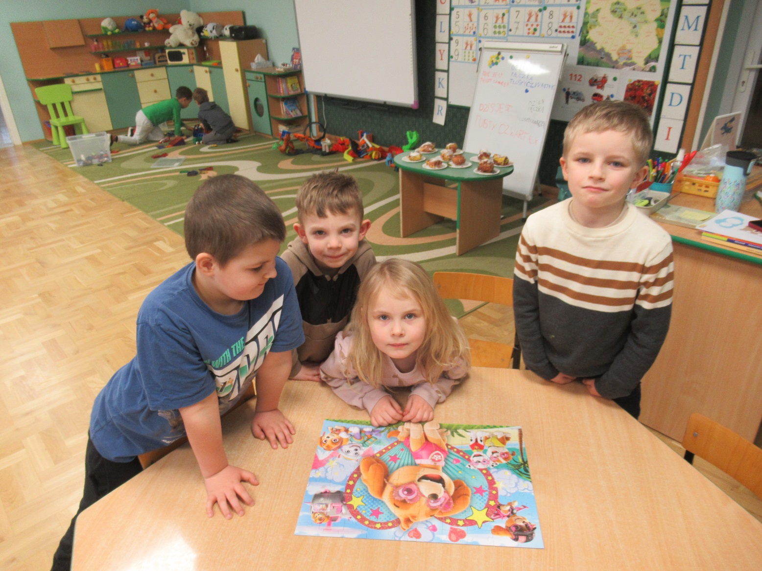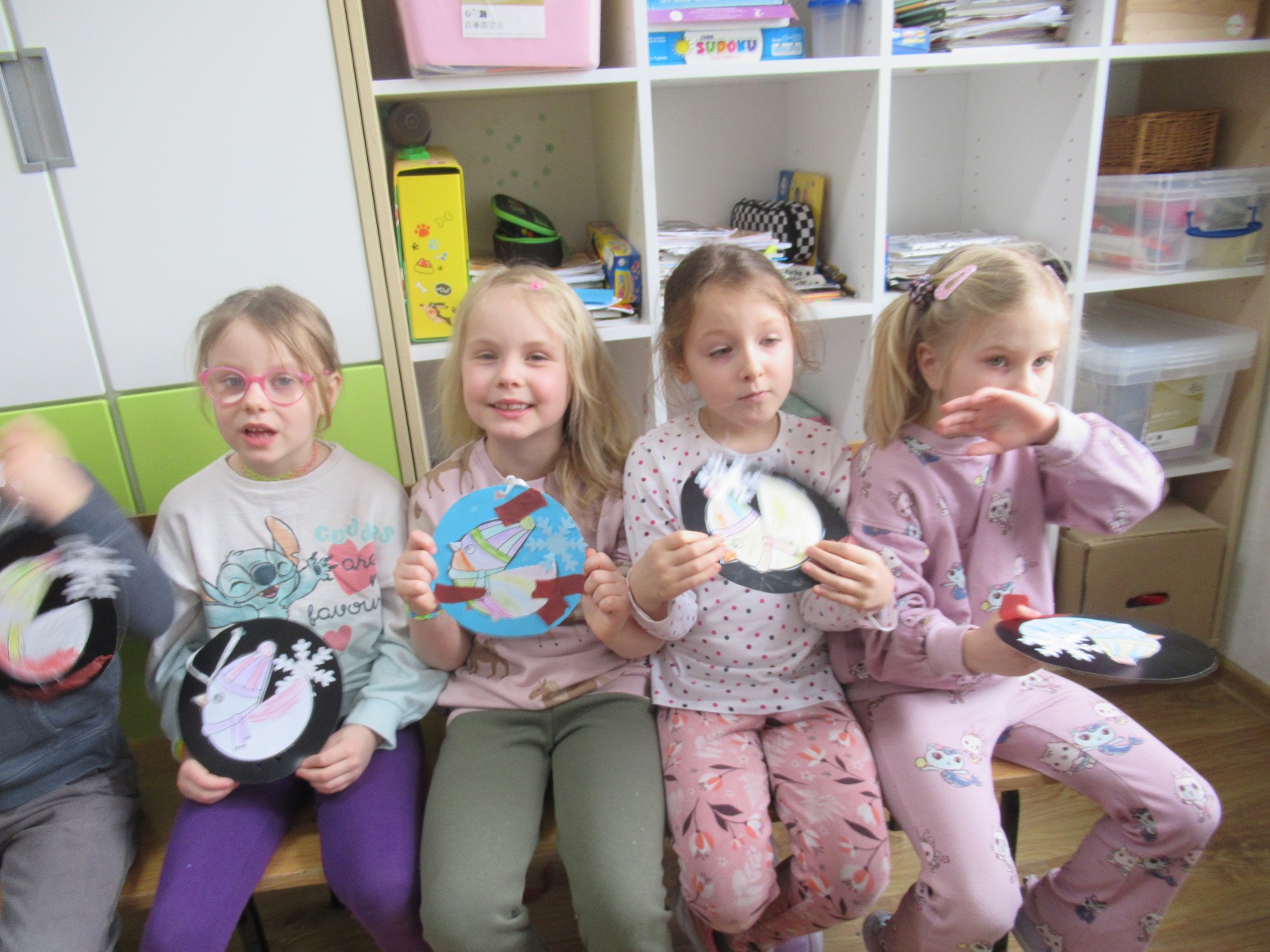 Obchodziliśmy Dzień Pizzy, Dzień Kota i Dzień Dinozaura. A z okazji tłustego czwartku dzieci zrobiły z papieru pączki. Wyglądały naprawdę smakowicie.
