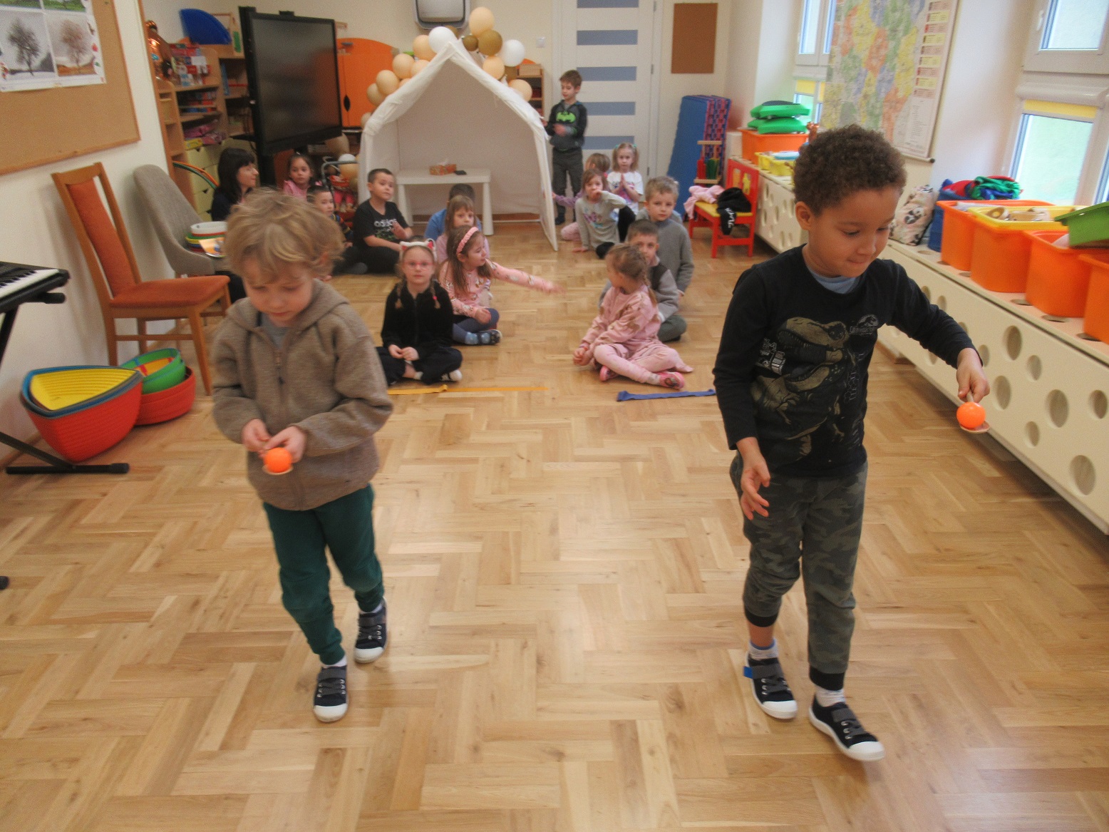 W ramach współpracy ze Szkołą Podstawową nr 369 dzieci z naszej grupy wzięły udział w zajęciach sportowych „Mały koszykarz – ruch, zabawa, zdrowie.”
