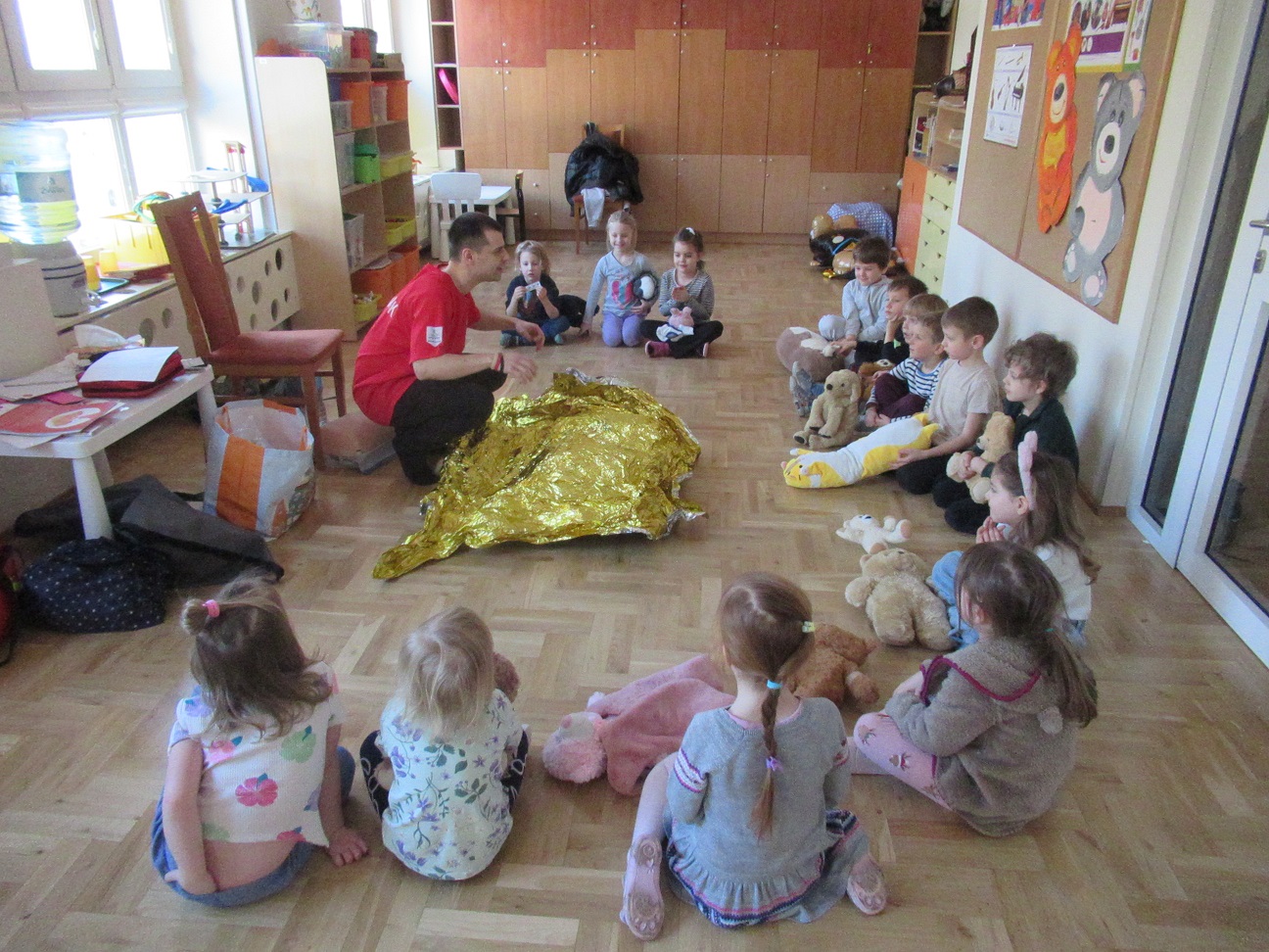 03.02. odbyły się warsztaty:” Akademia Małego Ratownika”. Gościliśmy wówczas w naszym przedszkolu ratownika wodnego, który opowiadał nam o różnych zagrożeniach i demonstrował jak udzielać pierwszej pomocy. Następnie samodzielnie próbowaliśmy udzielić pomocy swojej przytulance.