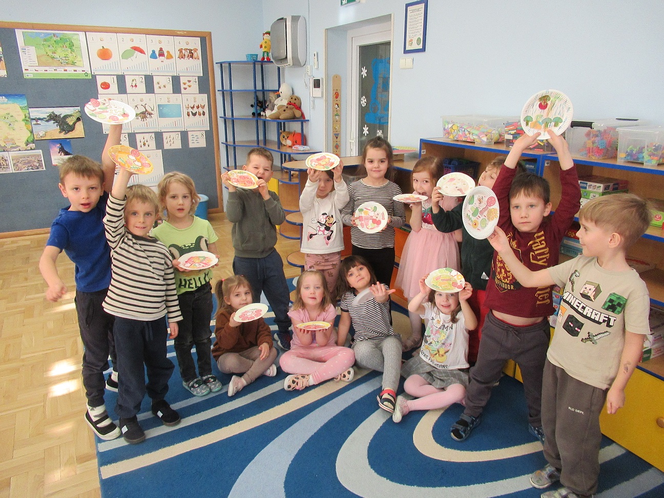 09.02. obchodziliśmy Dzień Pizzy. Poznaliśmy krótką historię powstania pizzy i jej pochodzenie. Rozmawialiśmy również o różnych rodzajach pizzy i jej składnikach. Następnie samodzielnie wykonaliśmy pracę plastyczno- techniczną pt. „ Moja pizza”