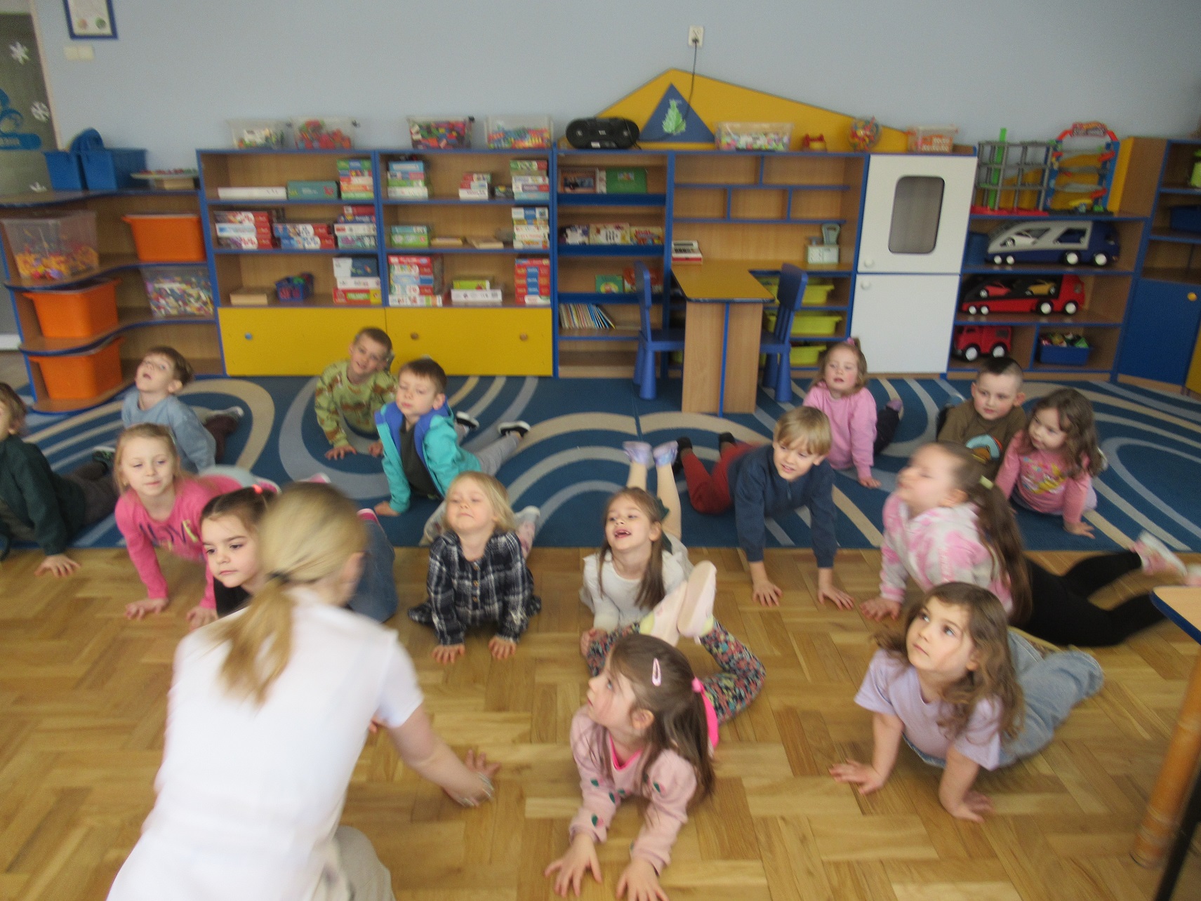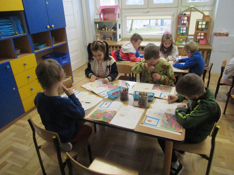 26.02. obchodziliśmy Dzień Dinozaura. Wysłuchaliśmy opowieści o dinozaurach, poznaliśmy różne gatunki dinozaurów: mięsożerne i roślinożerne, śpiewaliśmy piosenkę o dinozaurach oraz wykonaliśmy pracę plastyczną pt. Mały dinuś.