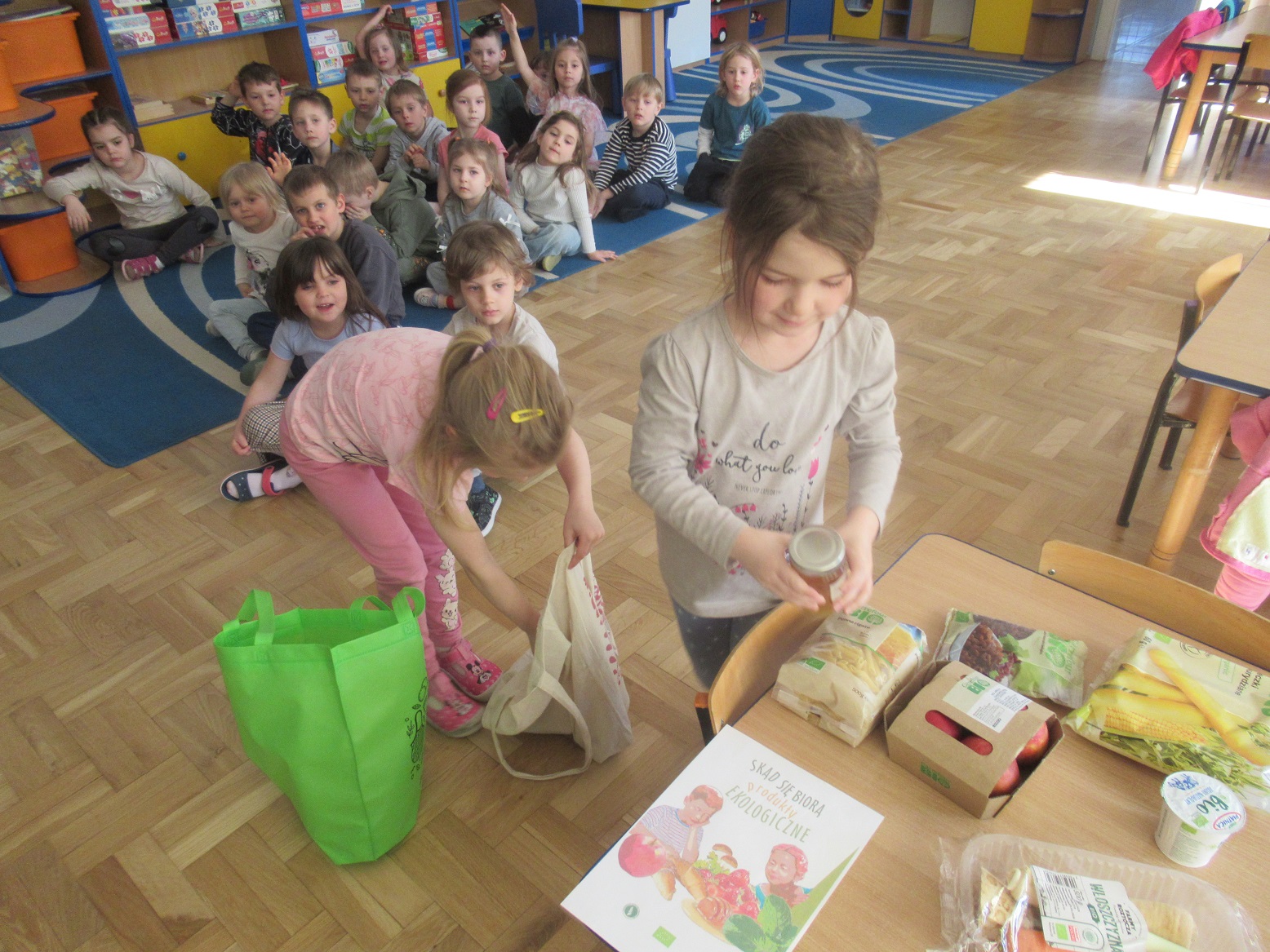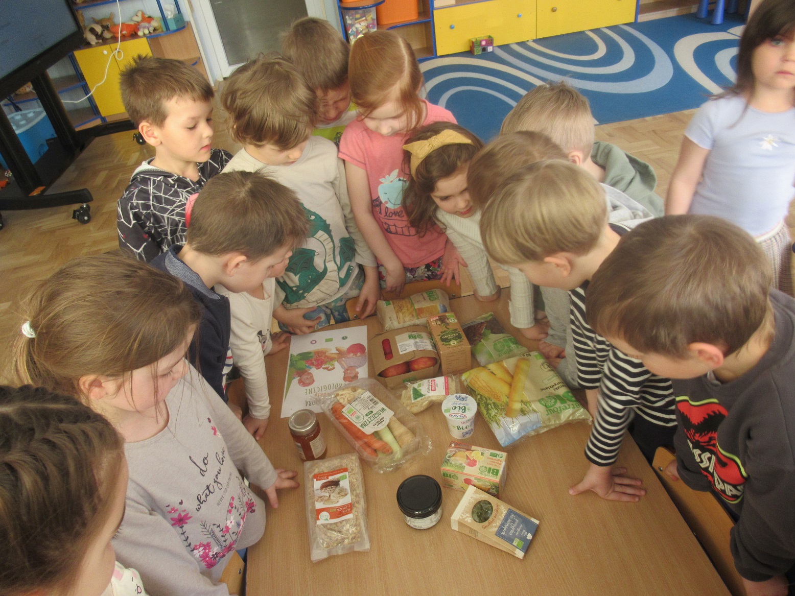 Braliśmy również udział w realizacji projektu „Skąd się biorą produkty ekologiczne?”. Poznawaliśmy produkty ekologiczne, dowiedzieliśmy się skąd się one biorą i jak bardzo ważne są dla naszego zdrowia. Wykonywaliśmy również pracę plastyczną pt.” Talerz zdrowia”.