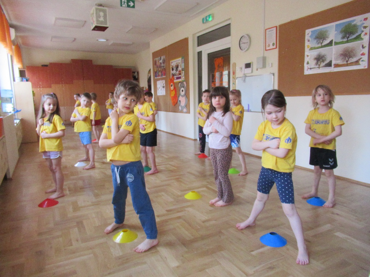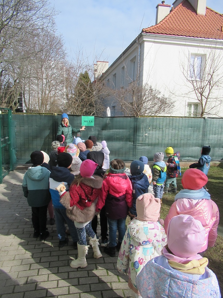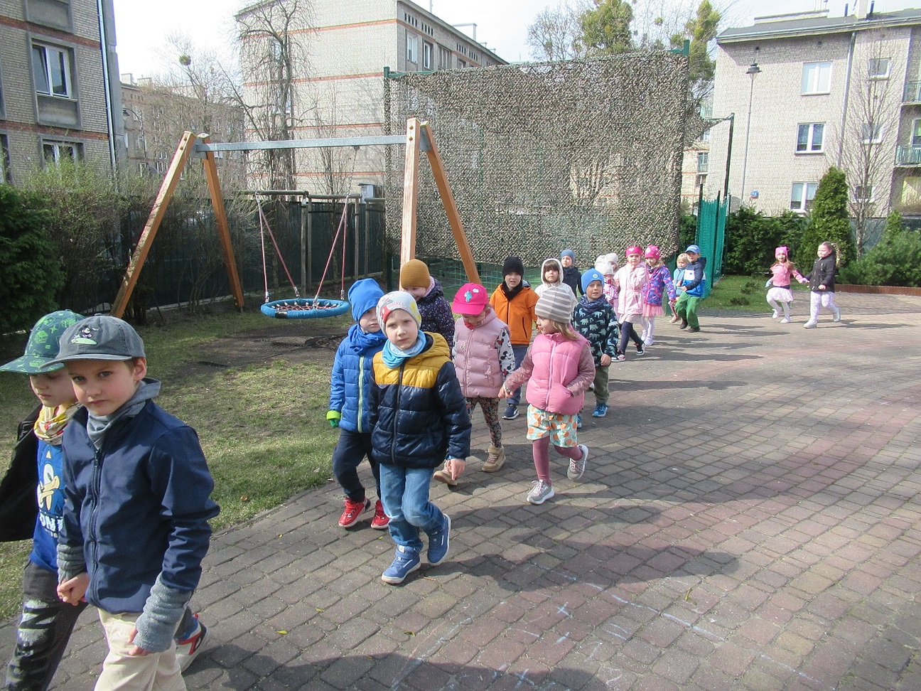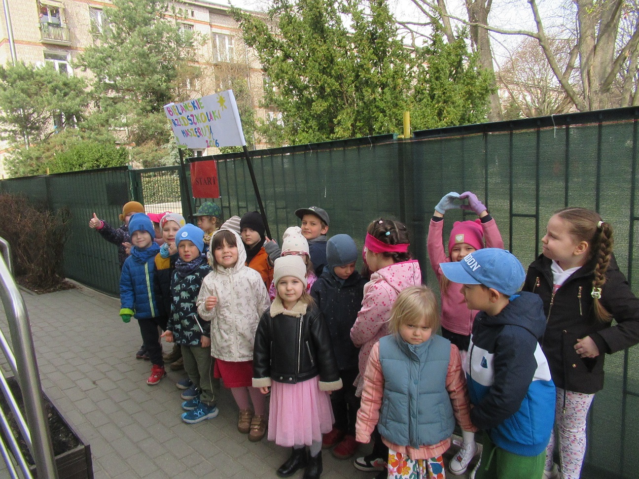 Codziennie maszerowaliśmy po ogródku biorąc udział w konkursie sportowym, pt.” Bielańskie Przedszkolaki maszerują”.