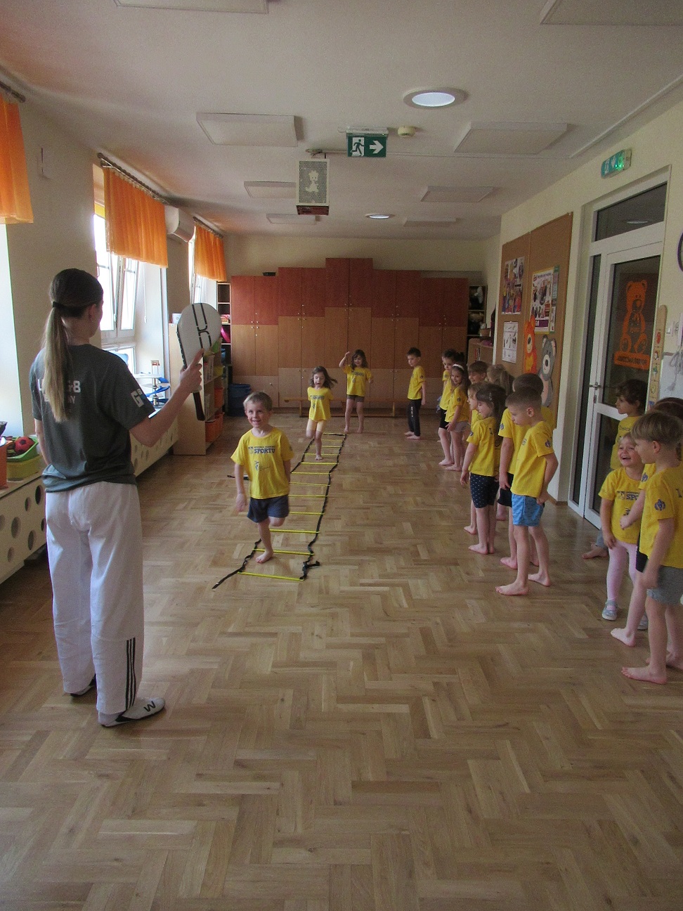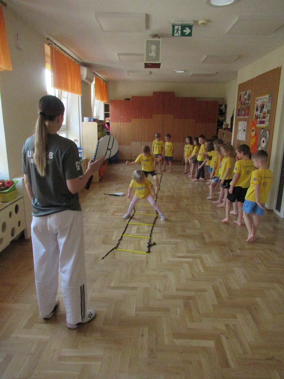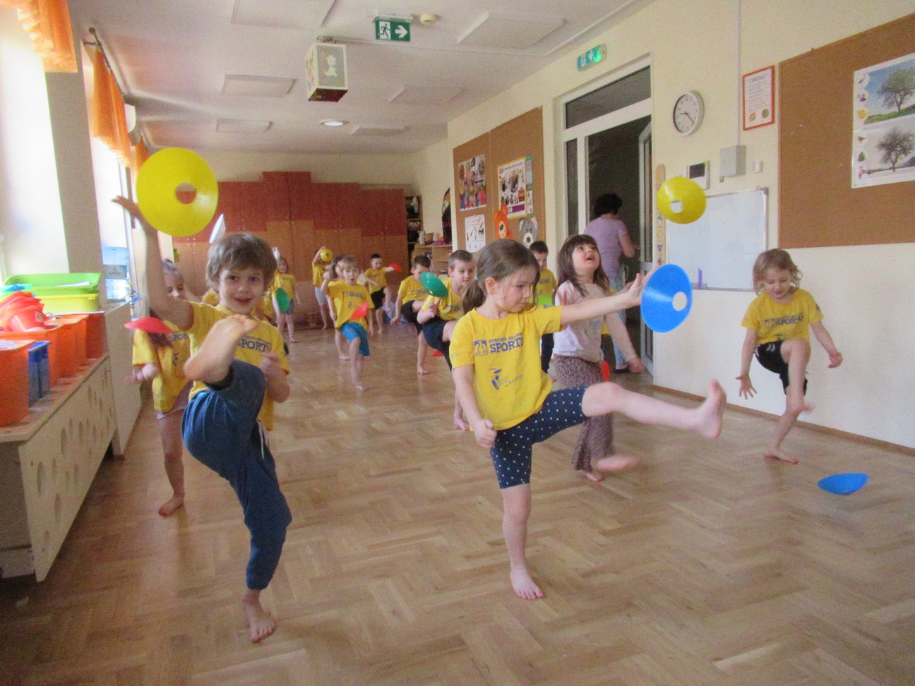 Codziennie maszerowaliśmy po ogródku biorąc udział w konkursie sportowym, pt.” Bielańskie Przedszkolaki maszerują”.