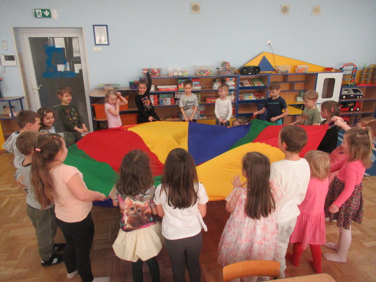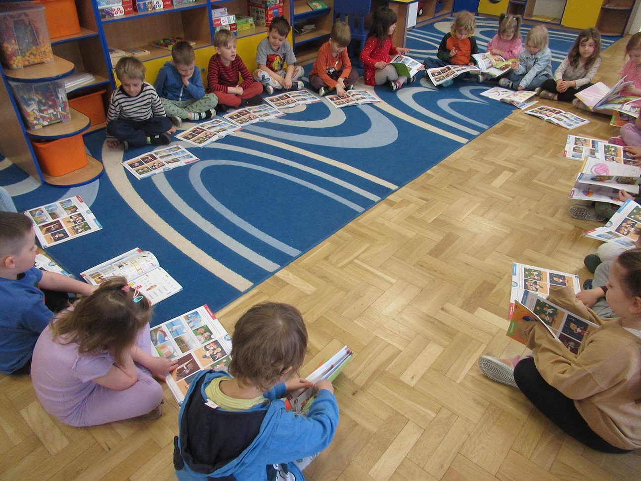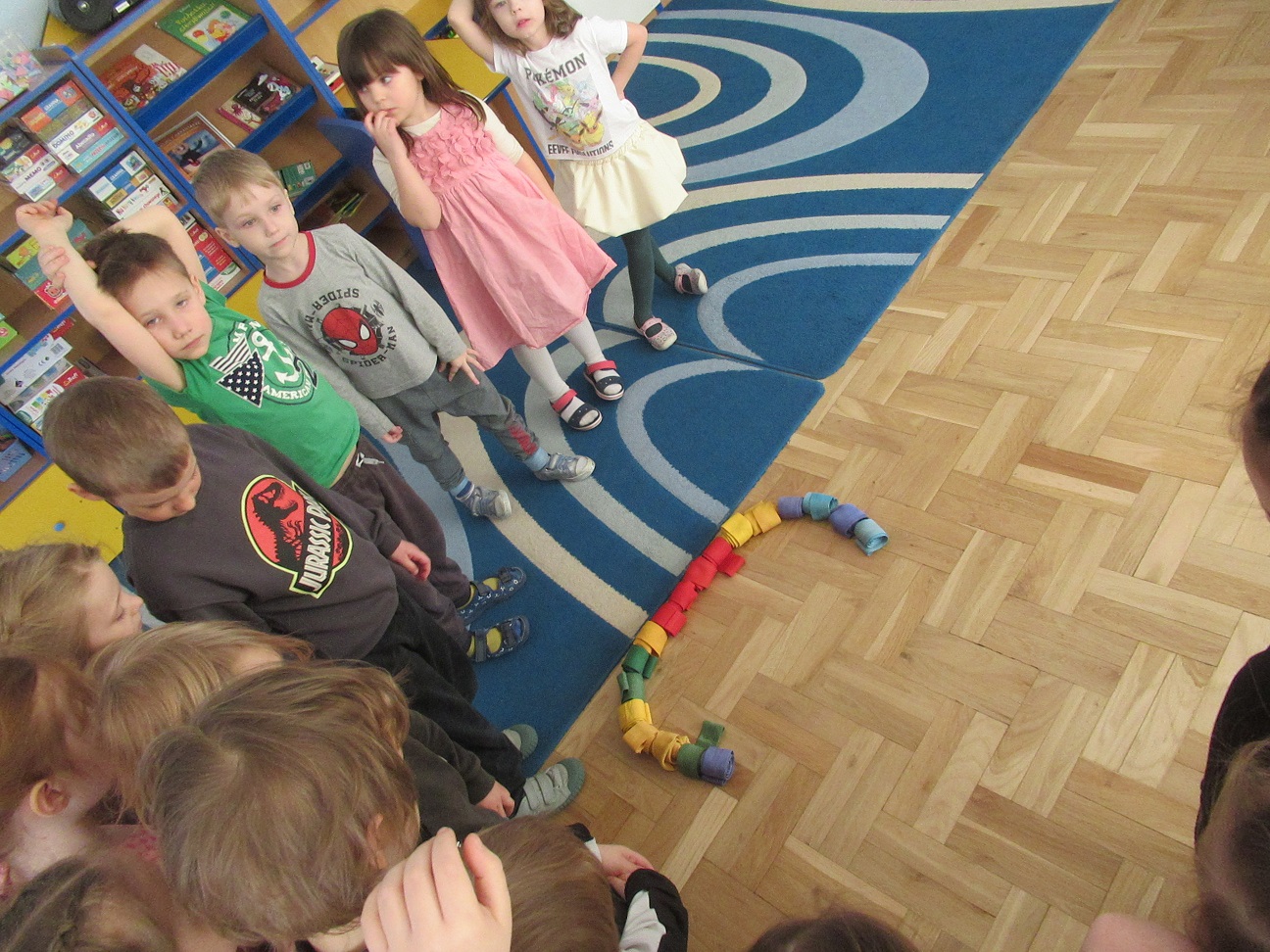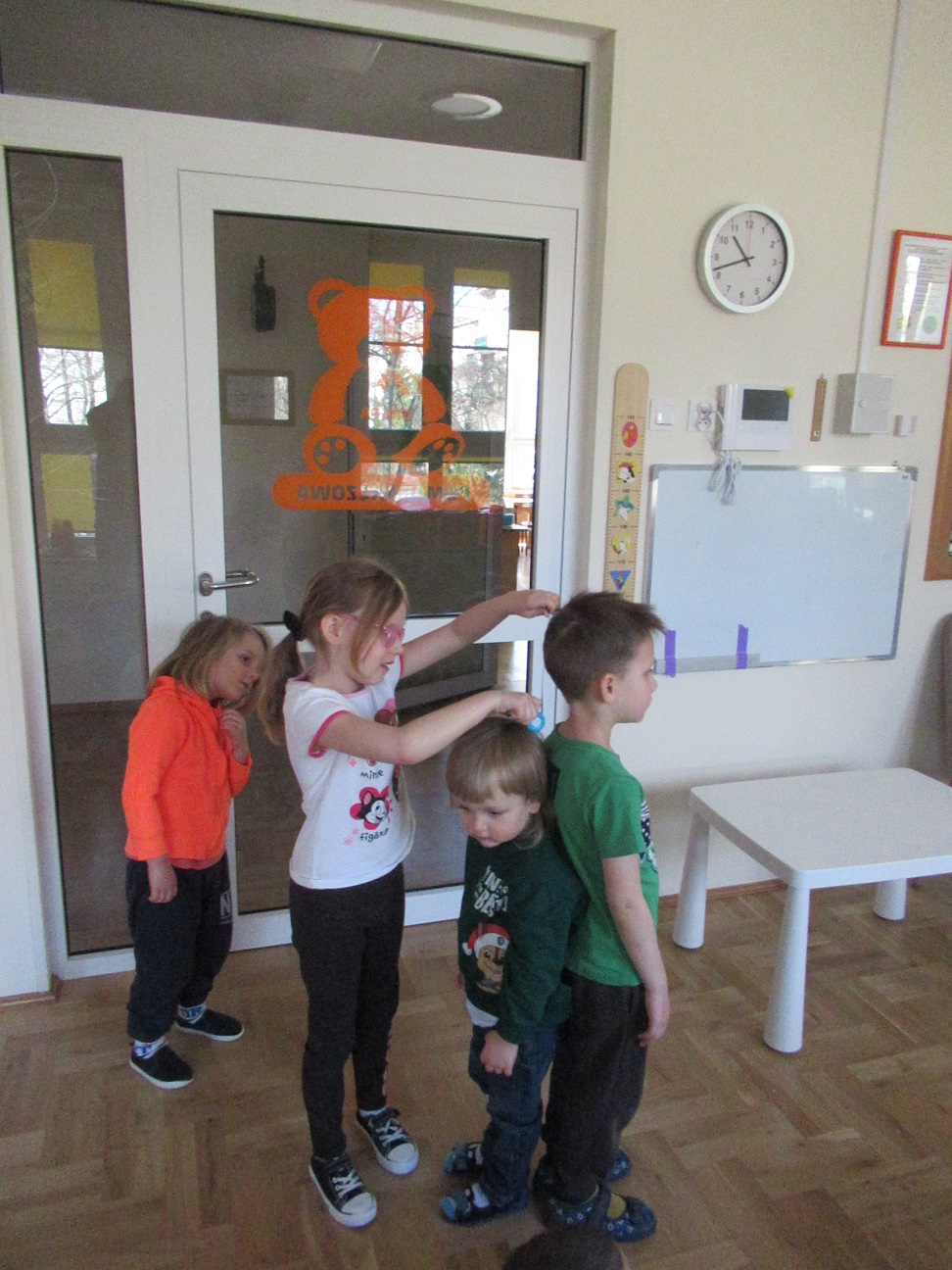 Nie zapomnieliśmy również o realizacji kolejnych tematów wynikających z planu rocznego. W ramach tematu:” Matematyka w czterech porach roku” rozwijaliśmy umiejętności mierzenia długości nowymi i dawnymi metodami: stopa za stopą miarką, linijką… Natomiast podróżując z Pluszowym Misiem po Polsce udaliśmy się do województwa wielkopolskiego i śląskiego. Odwiedziliśmy takie miasta, jak: Poznań, Gniezno, Konin, Katowice, Bielsko- Białą i Wisłę. Poznaliśmy ich herby, legendy z nimi związane, najciekawsze zabytki i miejsca. Było bardzo ciekawie i emocjonująco.