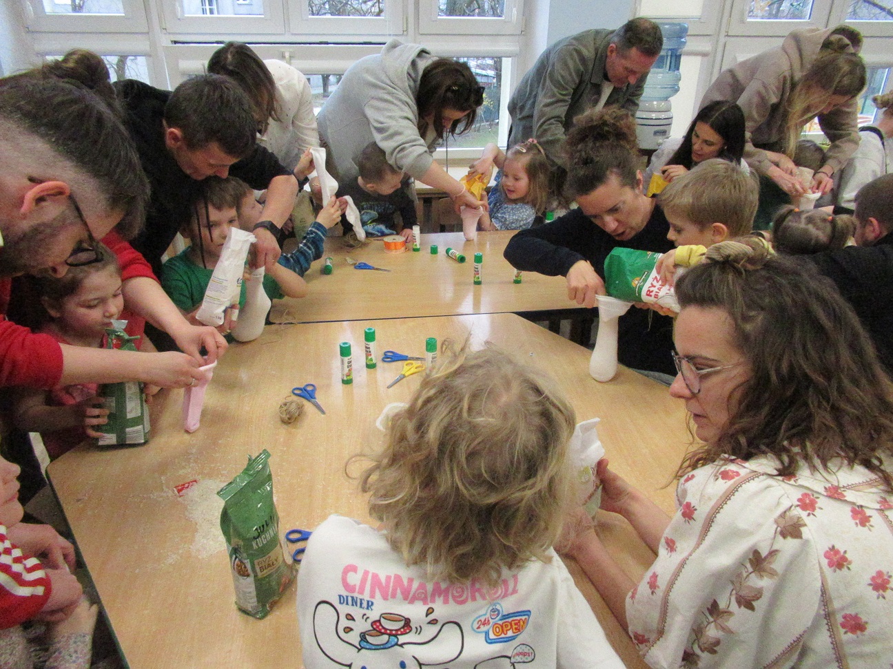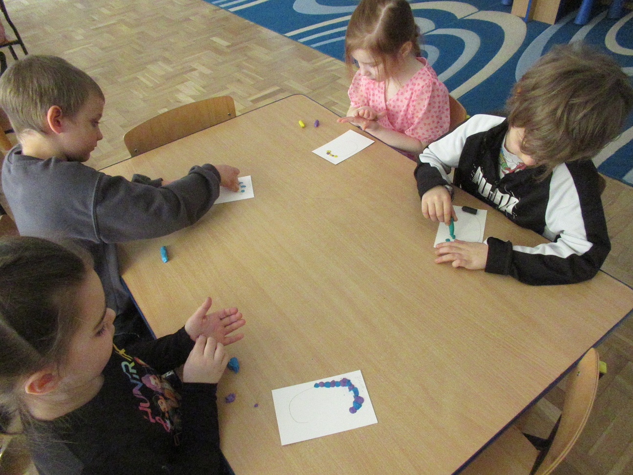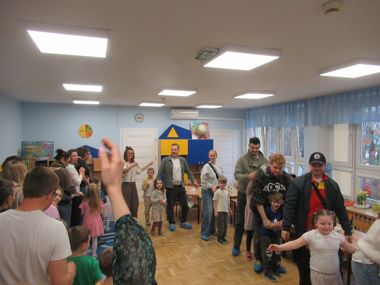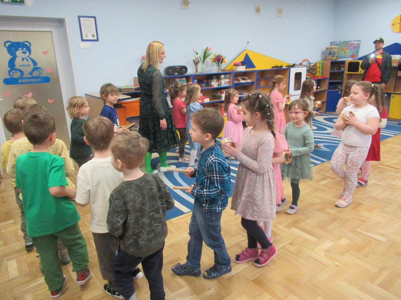 25.03. w naszej grupie niebieskiej odbyły się Warsztaty wiosenno - wielkanocne z rodzicami. Wszystkich gości przywitaliśmy piosenką, tańcem i grą na instrumentach. Następnie zaprosiliśmy Rodziców do wspólnej zabawy muzyczno - naśladowczej. Wreszcie przystąpiliśmy wspólnie z rodzicami do zrobienia zajączka wielkanocnego ze skarpetki i bociana z płatków kosmetycznych. Było bardzo miło i radośnie.