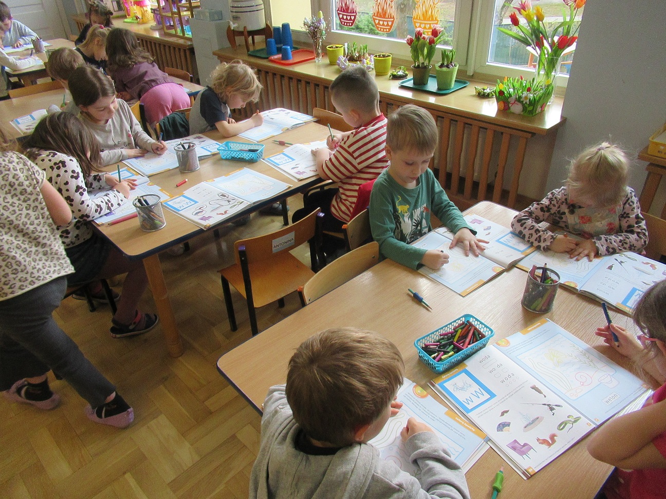 W ostatnim tygodniu miesiąca dużo rozmawialiśmy o tradycjach i zwyczajach wielkanocnych. Wykonywaliśmy wiele prac plastycznych o tematyce świątecznej. Było tak wesoło i ciekawie, że miesiąc minął nam niepostrzeżenie.