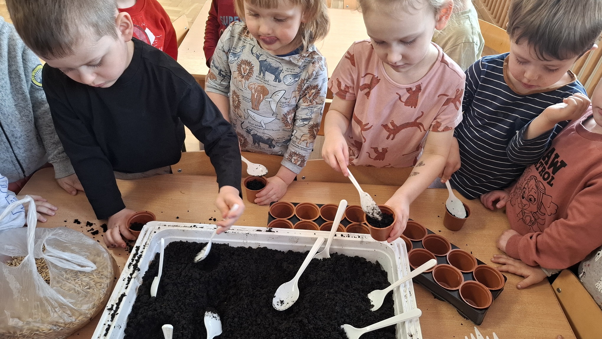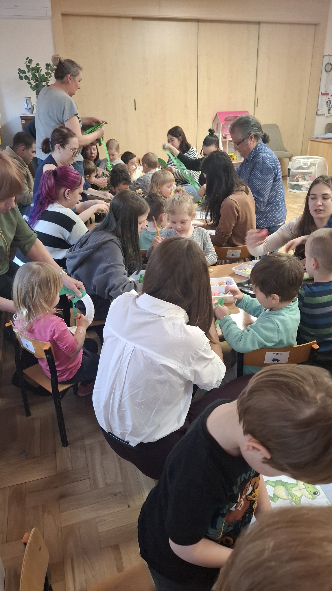 W minionym miesiącu w naszej grupie 3-latków wiele się działo! Był to czas pełen radości, odkrywania i wspólnych aktywności, które sprzyjały wszechstronnemu rozwojowi dzieci. Szczególną radość przyniosły dzieciom zajęcia Road Dance, czyli muzyczno-ruchowe spotkania, podczas których przedszkolaki rozwijały swoją sprawność fizyczną, poczucie rytmu oraz koordynację ruchową. Dzieci chętnie uczestniczyły w zabawach przy muzyce, naśladując ruchy i wyrażając emocje poprzez taniec. Wraz z nadejściem cieplejszych dni świętowaliśmy powitanie wiosny. Dzieci poznawały oznaki nowej pory roku, uczestniczyły w wiosennych zabawach oraz aktywnie włączały się w radosne obchody, które wprowadziły wszystkich w pogodny, wiosenny nastrój. Wyjątkowym wydarzeniem były również wiosenne warsztaty z rodzicami. Był to czas wspólnej pracy, integracji oraz twórczego działania. Dzieci z ogromnym zaangażowaniem tworzyły prace plastyczne razem z rodzicami, co przyniosło wiele radości i wzmocniło więzi rodzinne. W tym miesiącu przedszkolaki miały także okazję poznać świat teatru podczas zajęć o teatrze. Dzieci dowiedziały się, czym jest scena, aktor i przedstawienie. Chętnie wcielały się w różne role, rozwijając wyobraźnię oraz umiejętności społeczne. Nie zabrakło również zajęć poświęconych tematyce wiosennej. Podczas zajęć o wiośnie dzieci poznawały zmiany zachodzące w przyrodzie oraz utrwalały wiedzę poprzez zabawy, piosenki i prace plastyczne. Szczególną atrakcją było sadzenie i sianie roślin. Przedszkolaki z dużym zaangażowaniem uczestniczyły w pracach ogrodniczych, ucząc się troski o przyrodę i obserwując wzrost roślin. To był miesiąc pełen inspirujących doświadczeń, który dostarczył dzieciom wielu nowych wrażeń i radości ze wspólnego odkrywania świata.