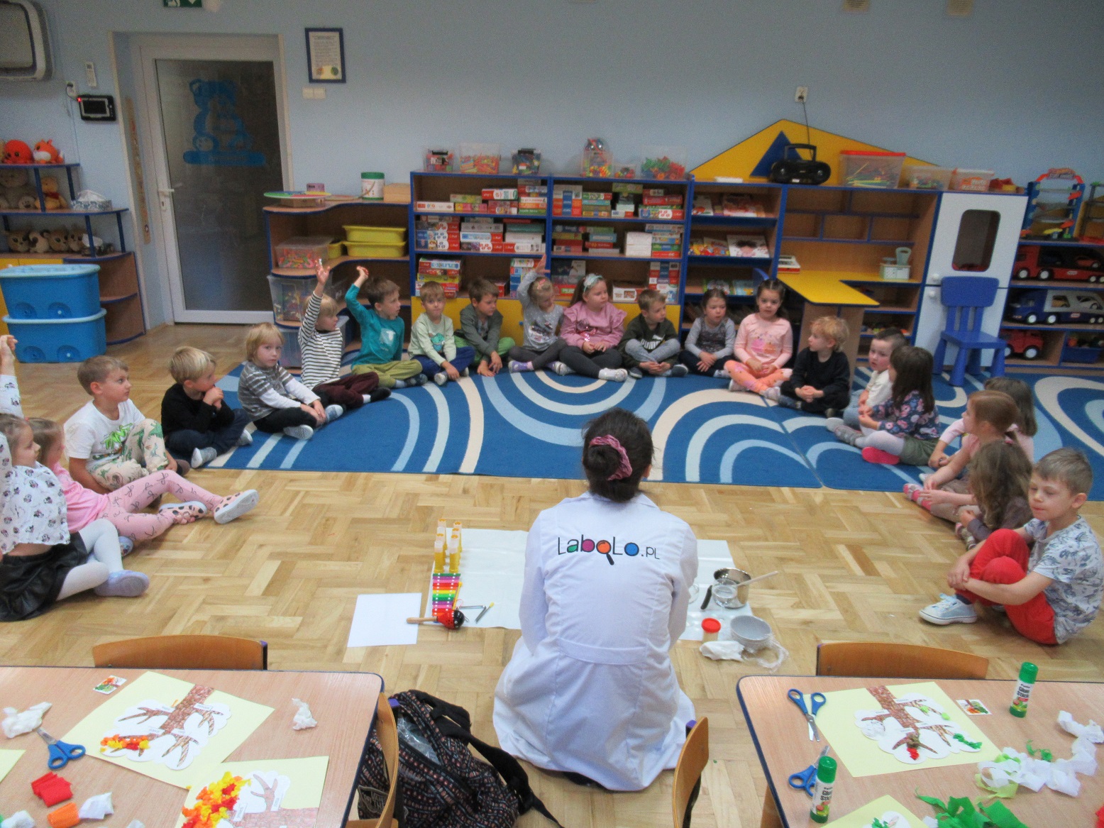 W tym miesiącu odbyły się również warsztaty Labo Odkrywcy oraz zajęcia taneczne Roar Dance i zajęcia z elementami taekwondo. Nie zabrakło także teatrzyku. Obejrzeliśmy spektakl o lisku i gąsce. Było bardzo miło i wesoło.