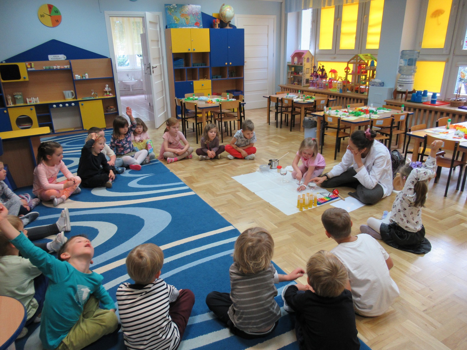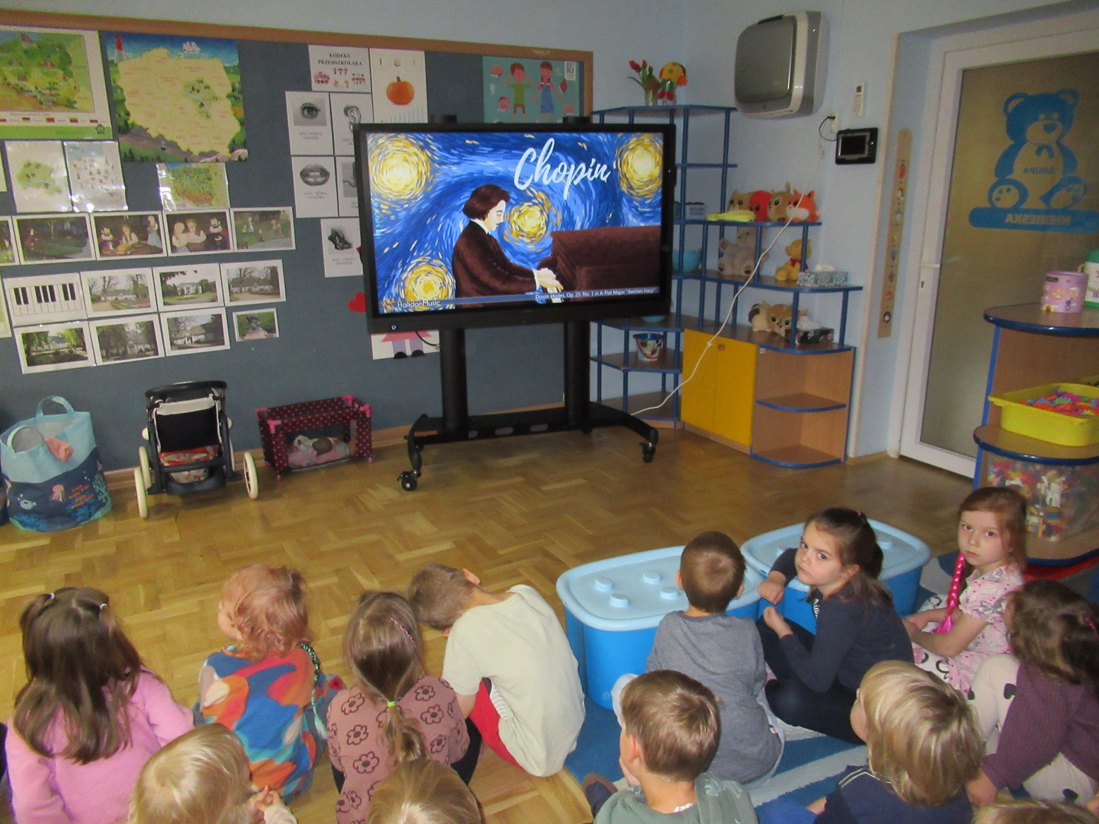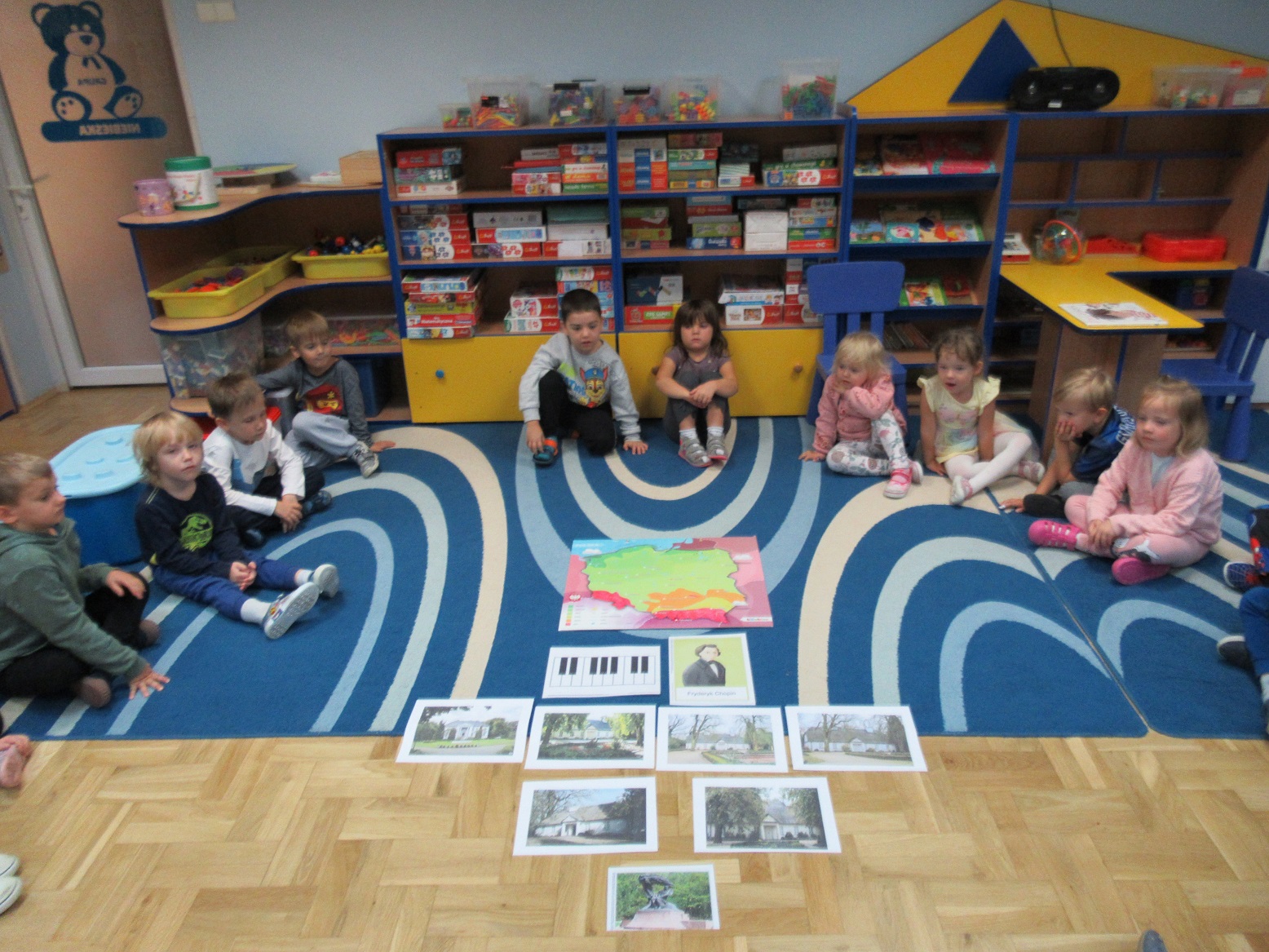W ramach realizacji tematów planu rocznego: „ Podróż z Pluszowym Misiem po Polsce” i „ Matematyka w czterech porach roku” wzbogacaliśmy naszą wiedzę na temat własnej Ojczyzny. Naszą podróż po mapie Polski rozpoczęliśmy od województwa mazowieckiego. Słuchaliśmy legendy o powstaniu Warszawy, utrwaliliśmy wiadomości na temat symboli narodowych, wzbogaciliśmy swoją wiedzę o Wielkich Polakach. Poznaliśmy postać Fryderyka Chopina, jego życie i twórczość. Relaksowaliśmy się przy utworach wielkiego kompozytora. Rozwijaliśmy również nasze kompetencje matematyczne. Kształtowaliśmy swoje umiejętności w orientacji przestrzennej i w schemacie własnego ciała.
