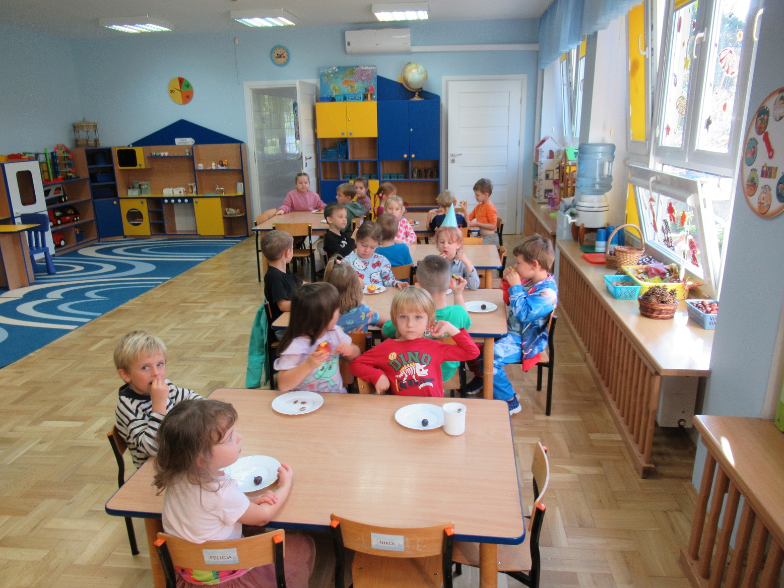 Wiele się działo. Było mnóstwo atrakcji. Na zajęciach rozmawialiśmy o jesiennej pogodzie, zwierzętach żyjących w lesie i parku, bajkostworkach i potworkach, zdrowym sposobie życia i emocjach, głównie strachu, bo jak wiadomo:” Strach ma wielkie oczy”. Braliśmy udział w zabawach muzyczno- ruchowych, naśladowczych i logopedycznych. Poznawaliśmy nowe piosenki o jesieni. Wykonaliśmy kilka prac plastycznych, kodowaliśmy, liczyliśmy, gimnastykowaliśmy się, uczyliśmy się angielskiego oraz śpiewaliśmy na rytmice. Jednym słowem ciekawie i aktywnie spędzaliśmy czas.