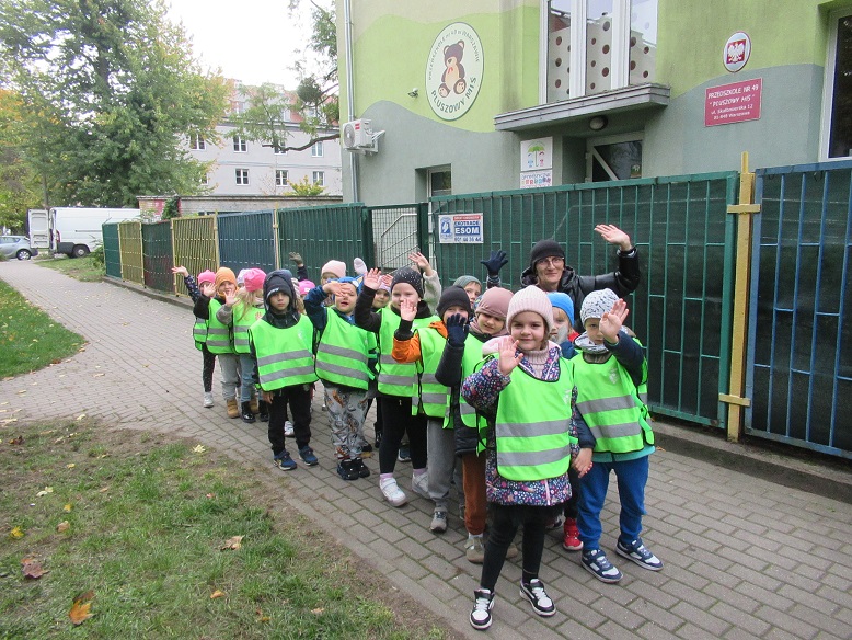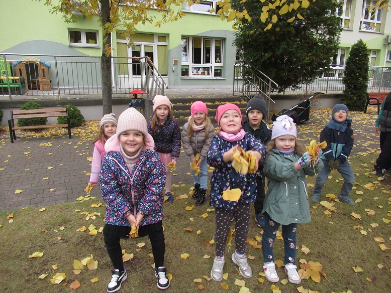 Nadszedł październik. Pogoda nam dopisała, więc dużo czasu spędzaliśmy na powietrzu. Bawiliśmy się w ogródku przedszkolnym, jak również wybraliśmy się na spacer wokół przedszkola.