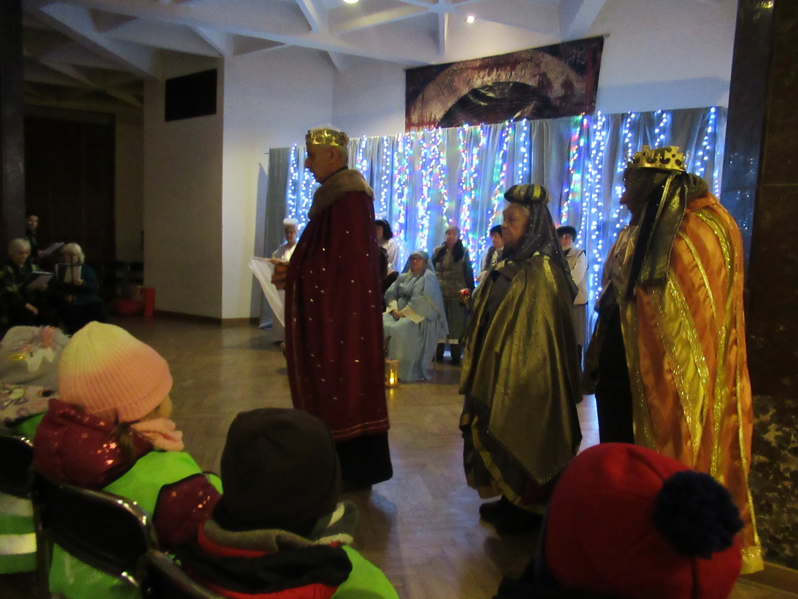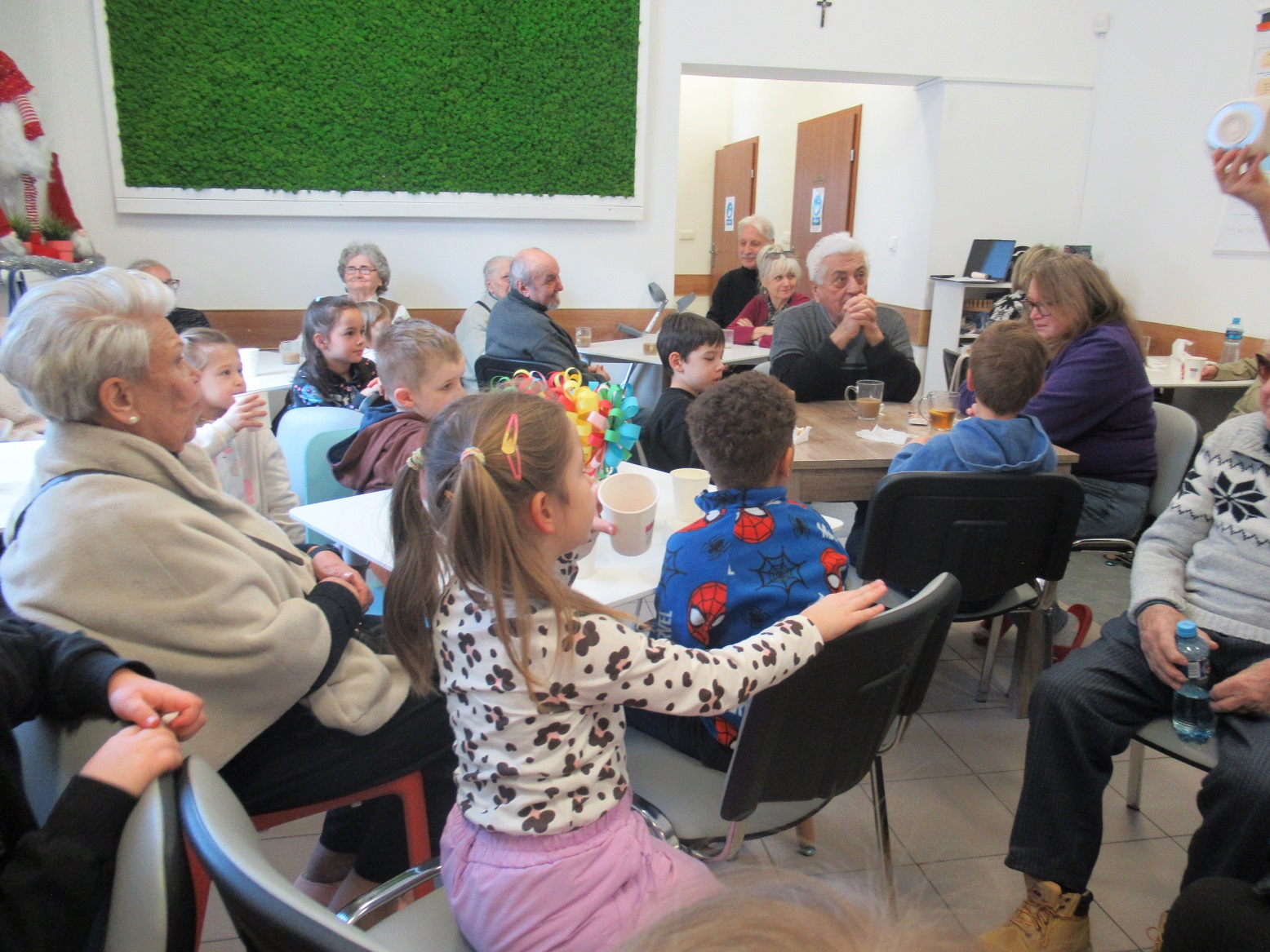 W ramach współpracy z Ośrodkiem Wsparcia dla Seniorów nr 1 uczestniczyliśmy w jasełkach bożonarodzeniowych przygotowanych przez seniorów, którzy z ogromnym zaangażowaniem wcielili się w swoje role. Piękne stroje, dekoracje, kolędy i wspaniała atmosfera zrobiły na wszystkich duże wrażenie. Z okazji Dnia Babci i Dziadka dzieci odwiedziły również seniorów, śpiewając zimowe piosenki i wręczając własnoręcznie wykonane papierowe kwiaty. Po części artystycznej odbył się quiz oraz miłe rozmowy przy herbatce. Było to radosne spotkanie pełne śmiechu i wzruszeń.