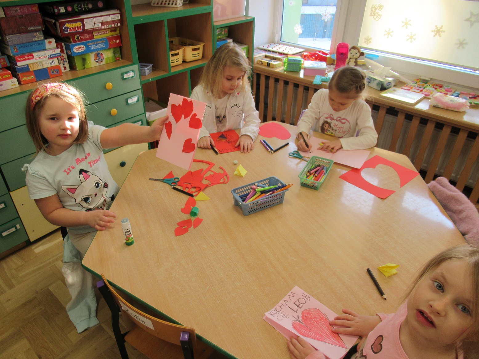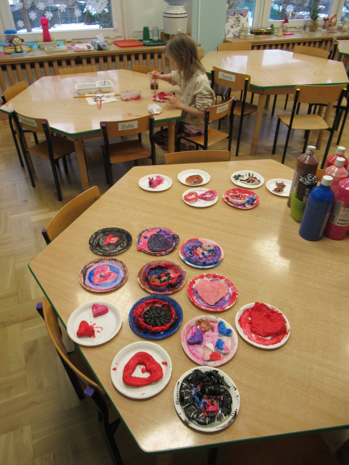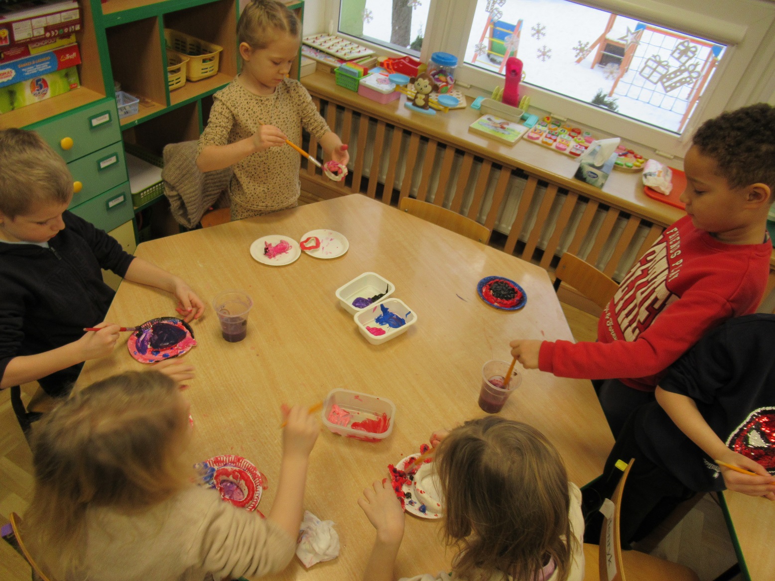 Zrealizowaliśmy również styczniowe zadanie z Ogólnopolskiego Projektu Edukacyjnego „Kreatywny Przedszkolak – Kreatywne Dziecko”, wykonując serca z masy solnej. Dzieci samodzielnie formowały serca, a następnie malowały je farbami.