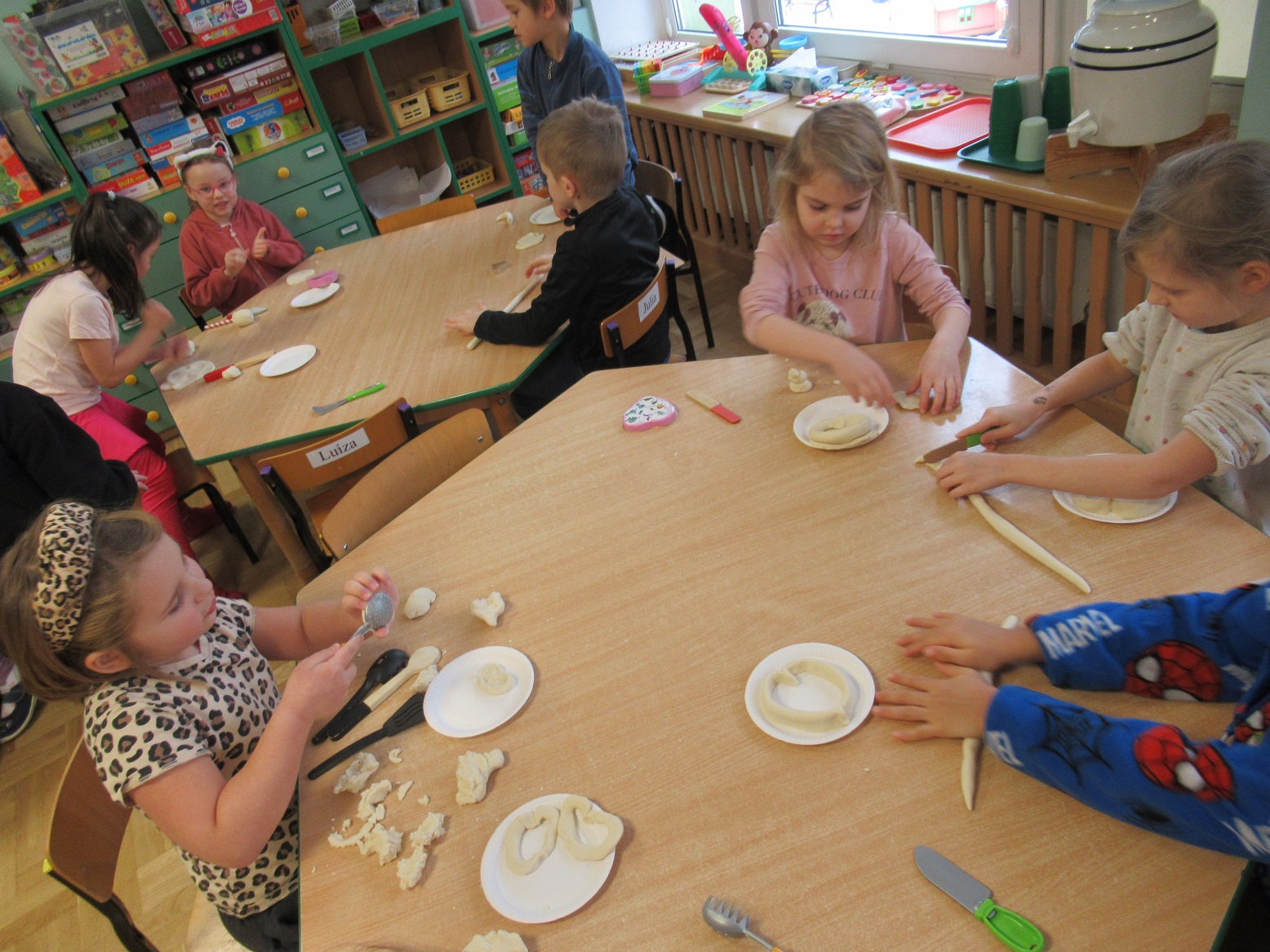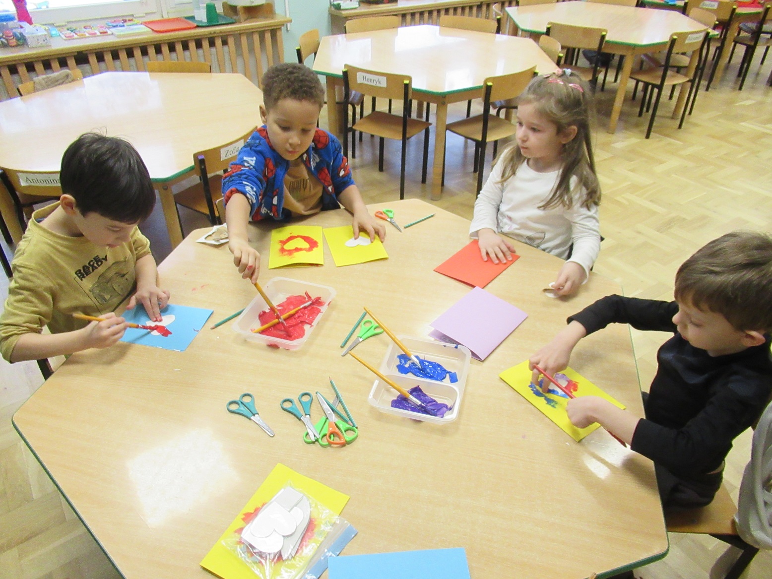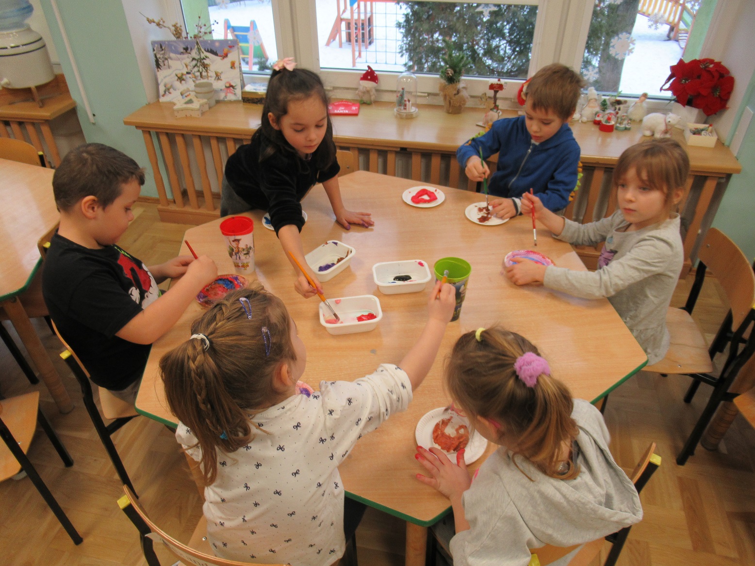 Zrealizowaliśmy również styczniowe zadanie z Ogólnopolskiego Projektu Edukacyjnego „Kreatywny Przedszkolak – Kreatywne Dziecko”, wykonując serca z masy solnej. Dzieci samodzielnie formowały serca, a następnie malowały je farbami.